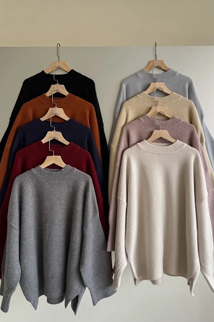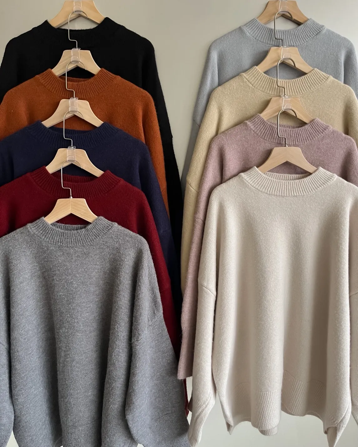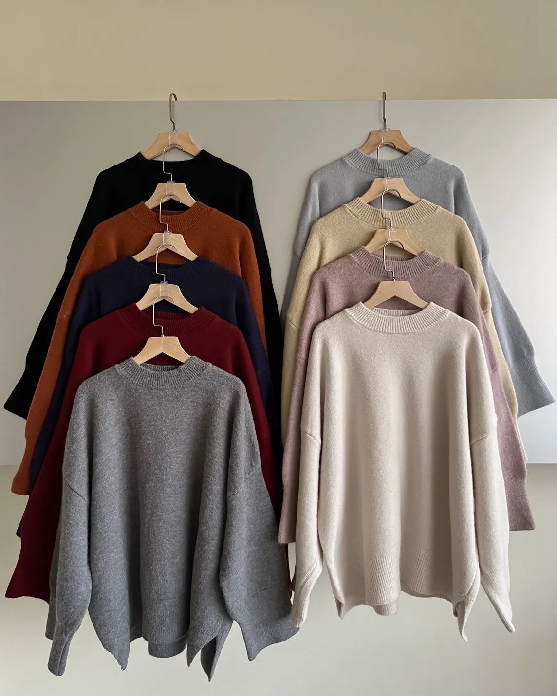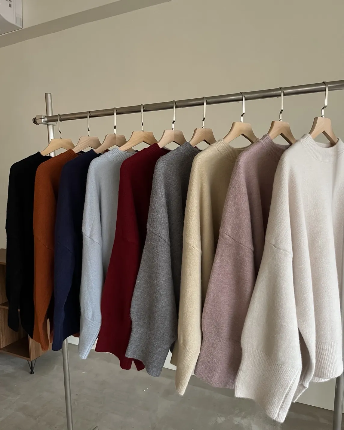 X0070(新九色)新色回歸!!叮叮噹顏色超美寬袖毛衣(米白/黃/粉紅/橘/紅/淺藍/深藍