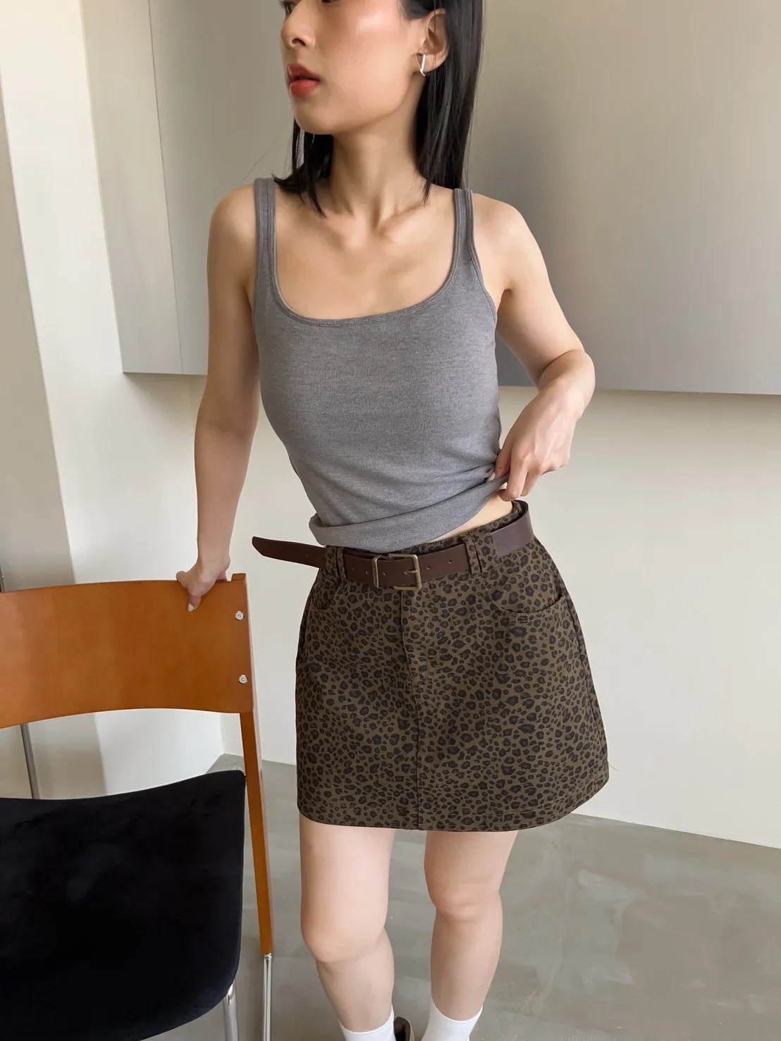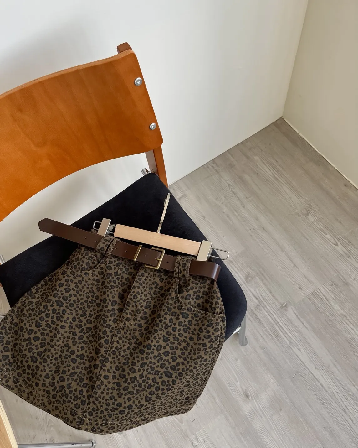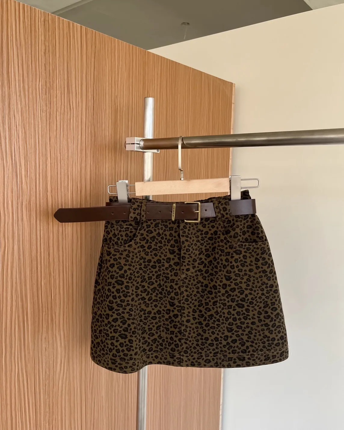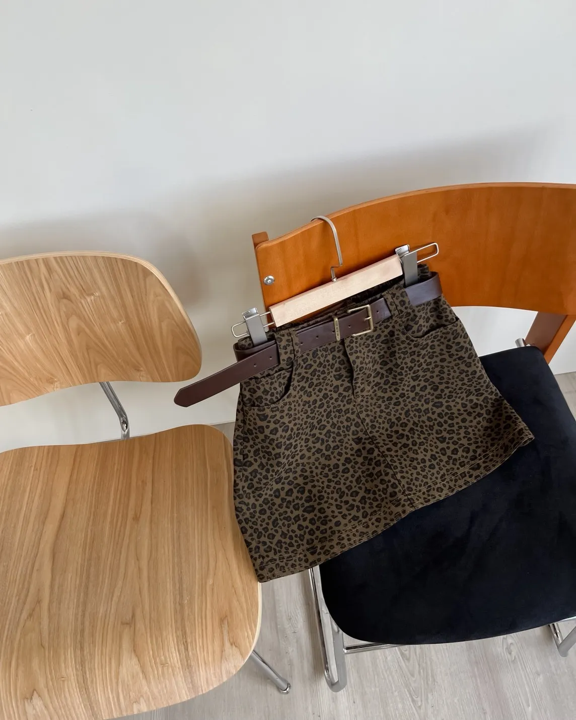 V0053(附皮帶)復古の豹紋短裙(灰/咖啡)