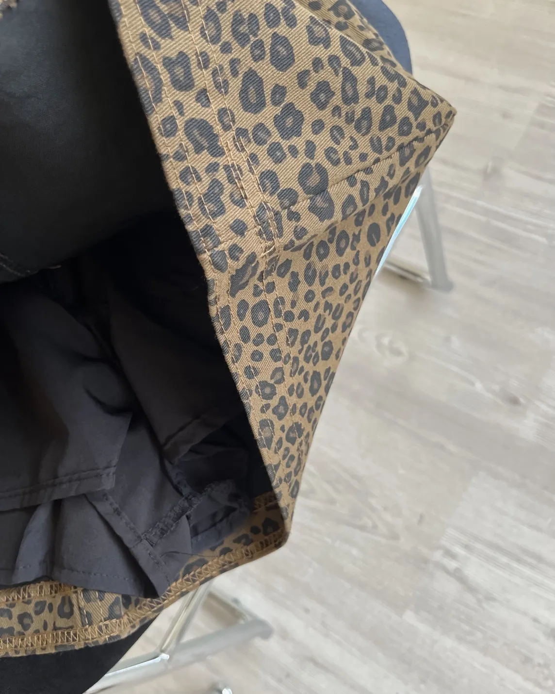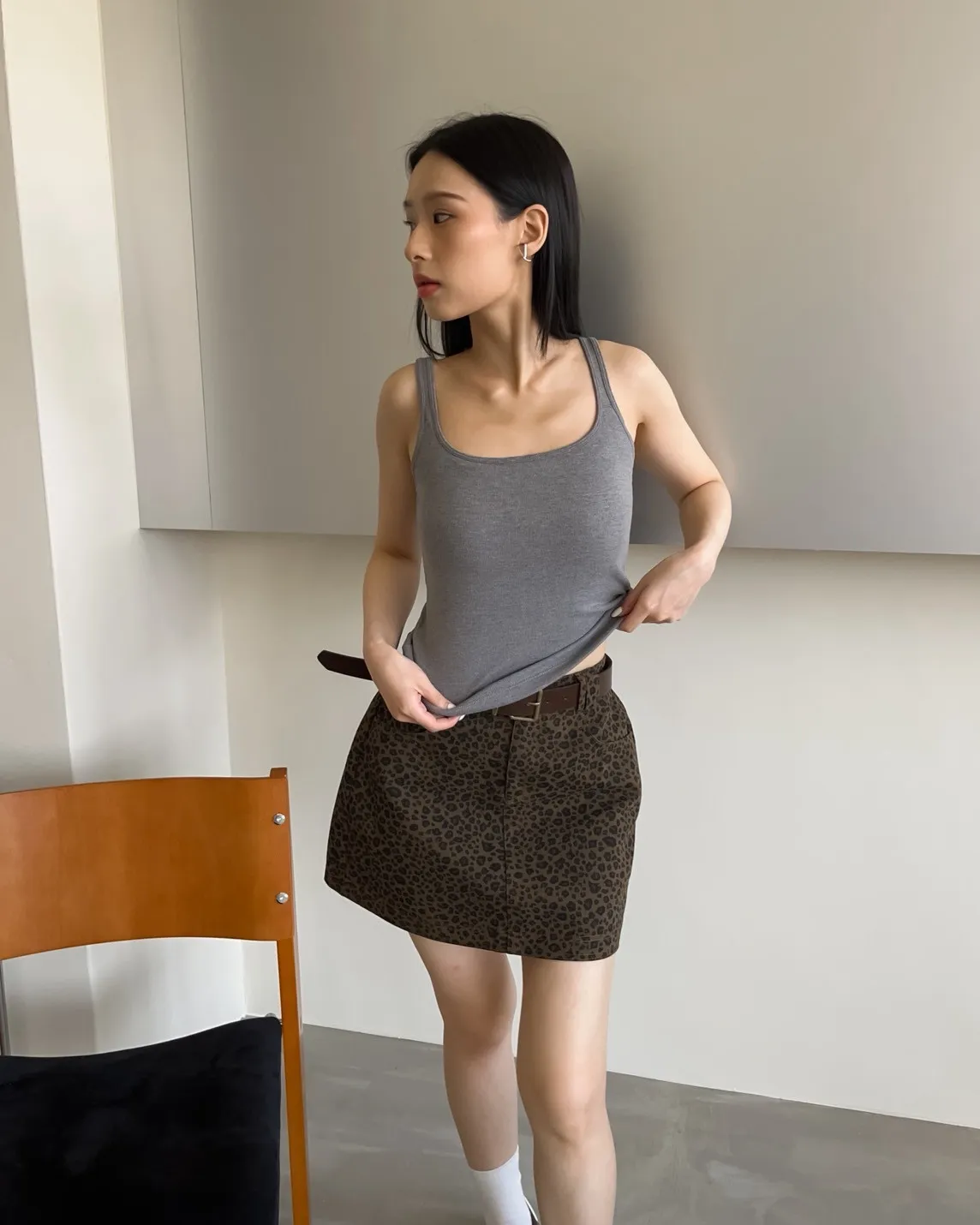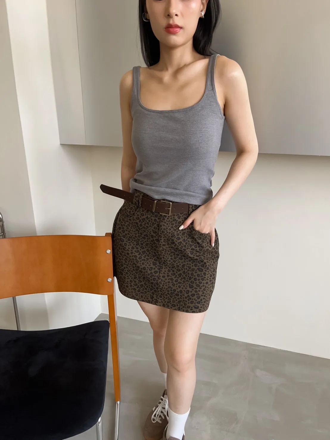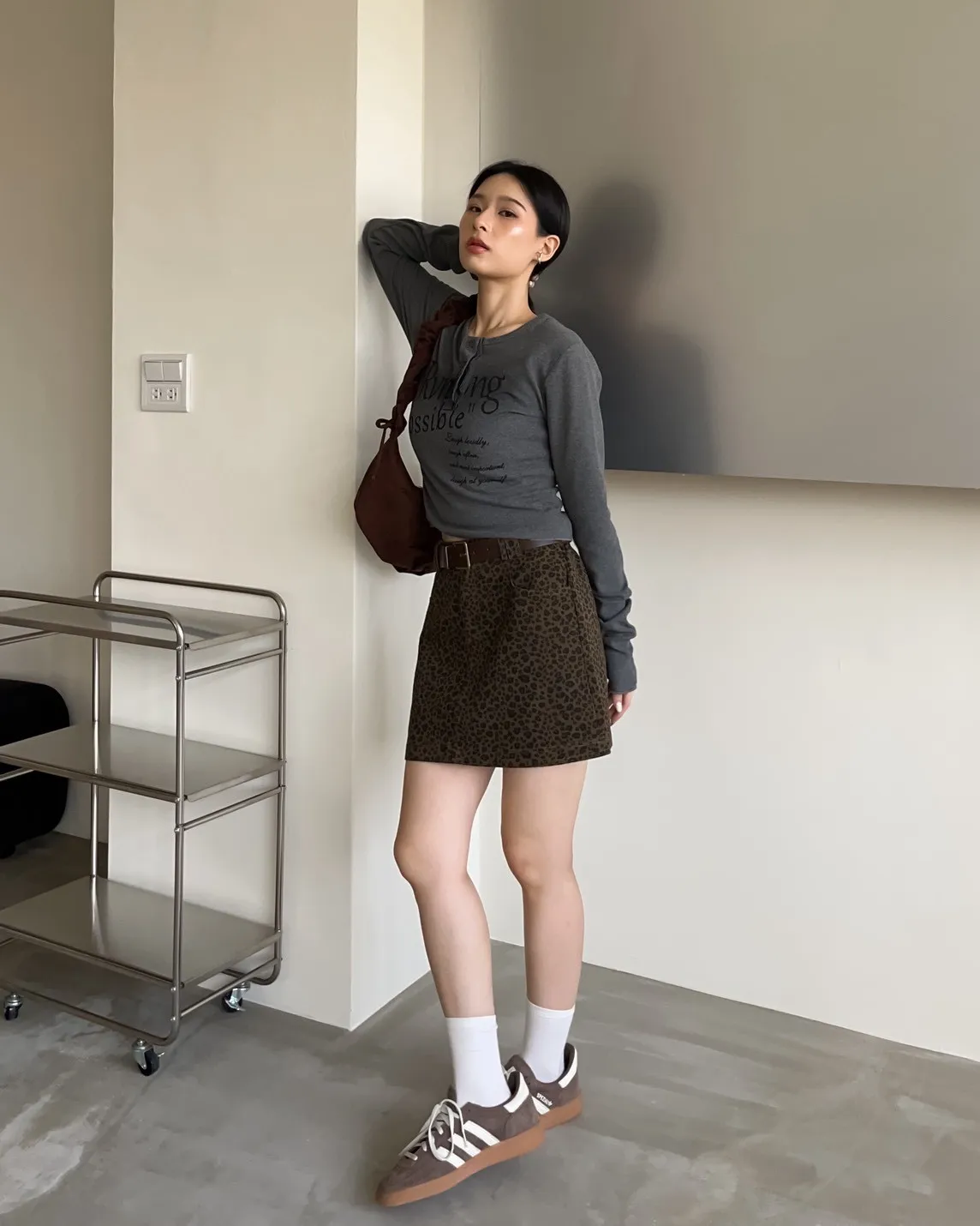 V0053(附皮帶)復古の豹紋短裙(灰/咖啡)
