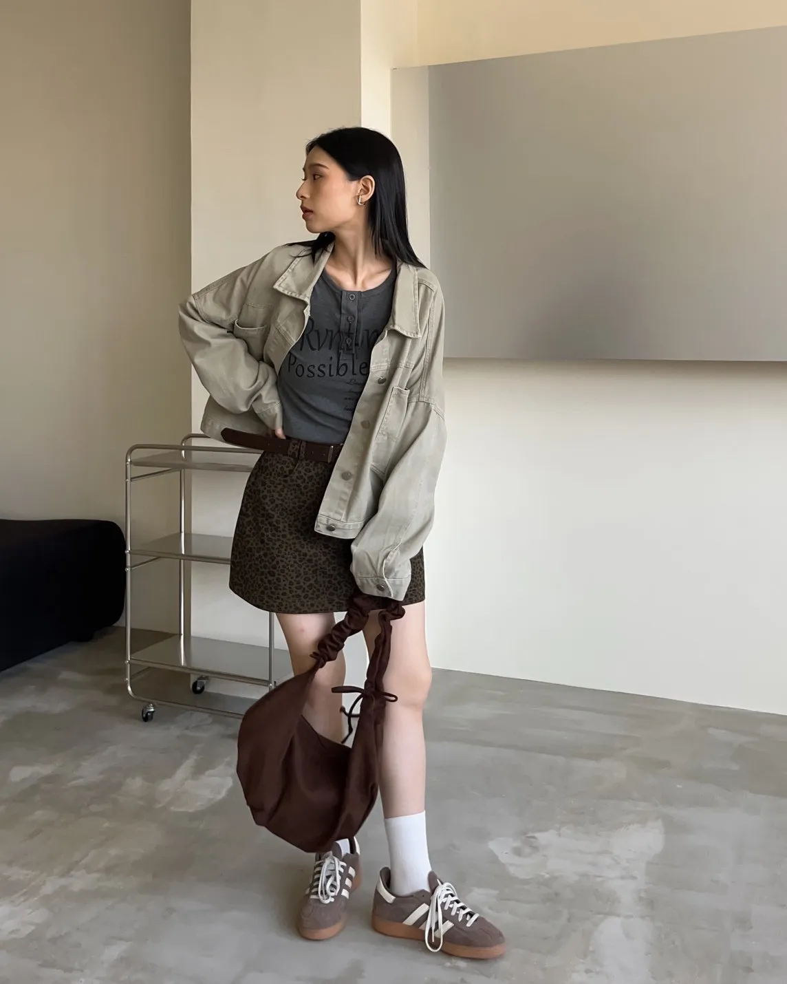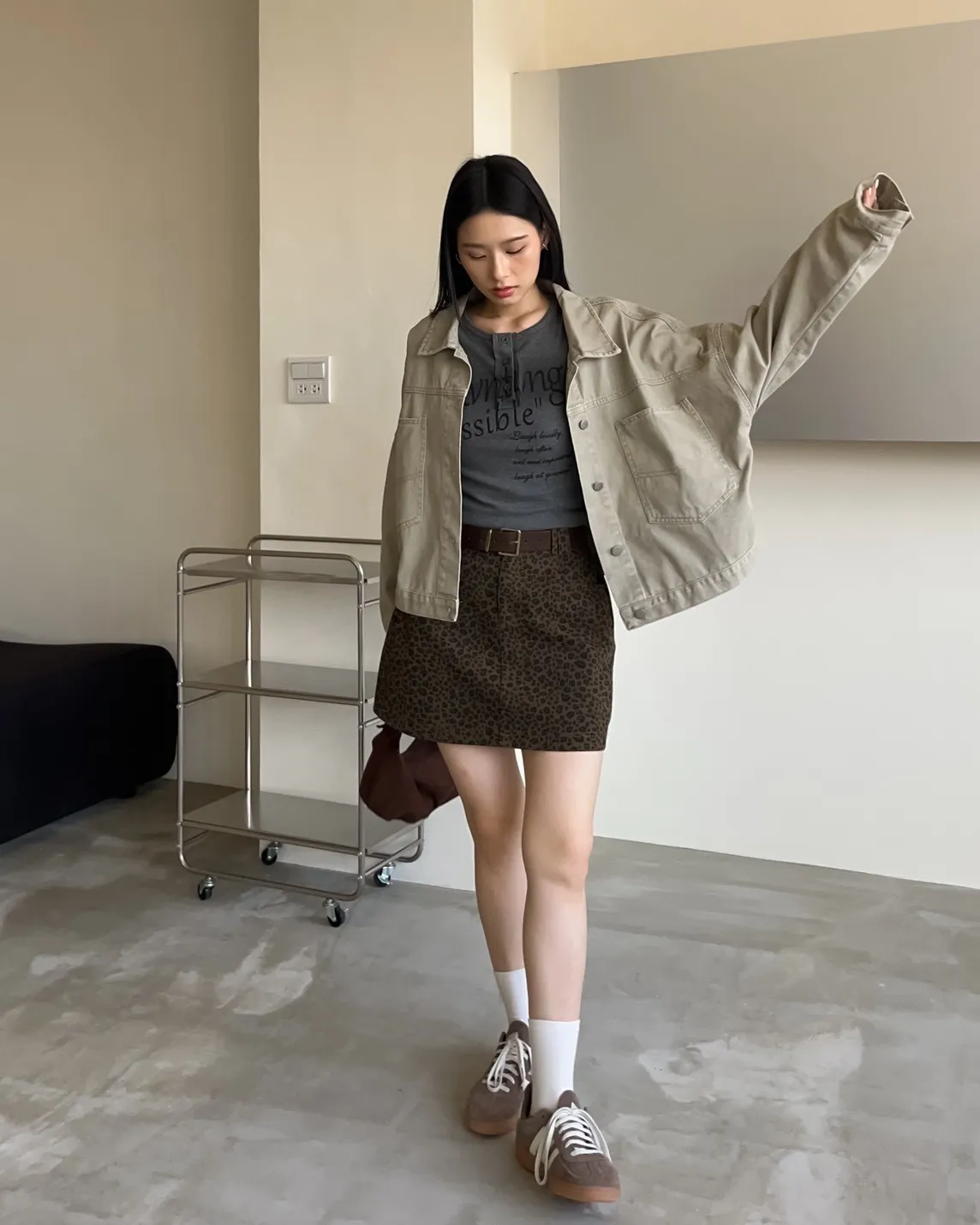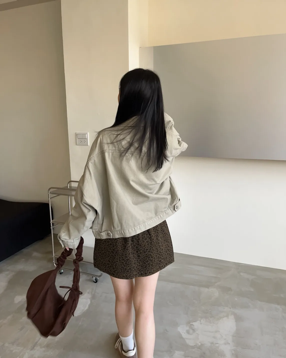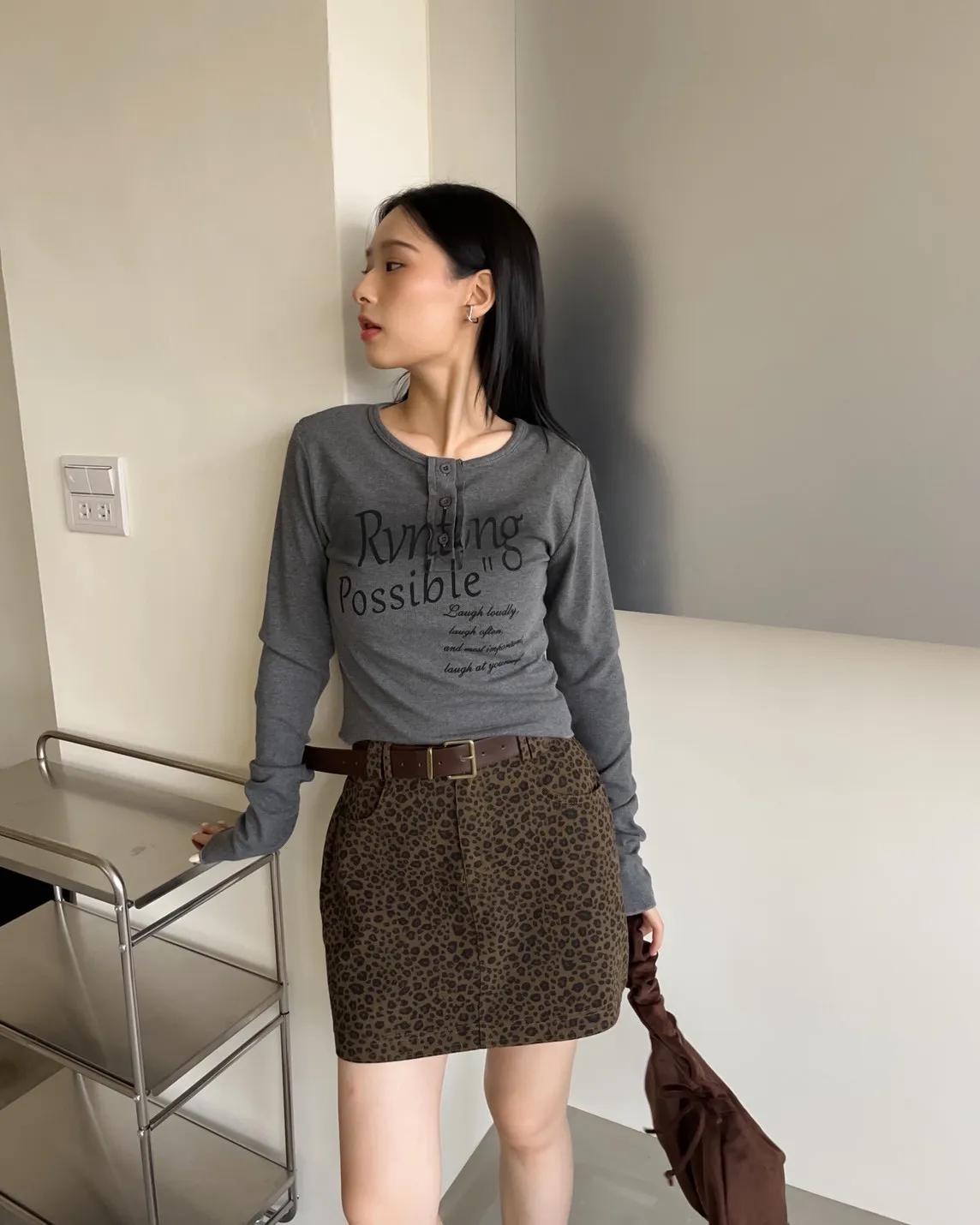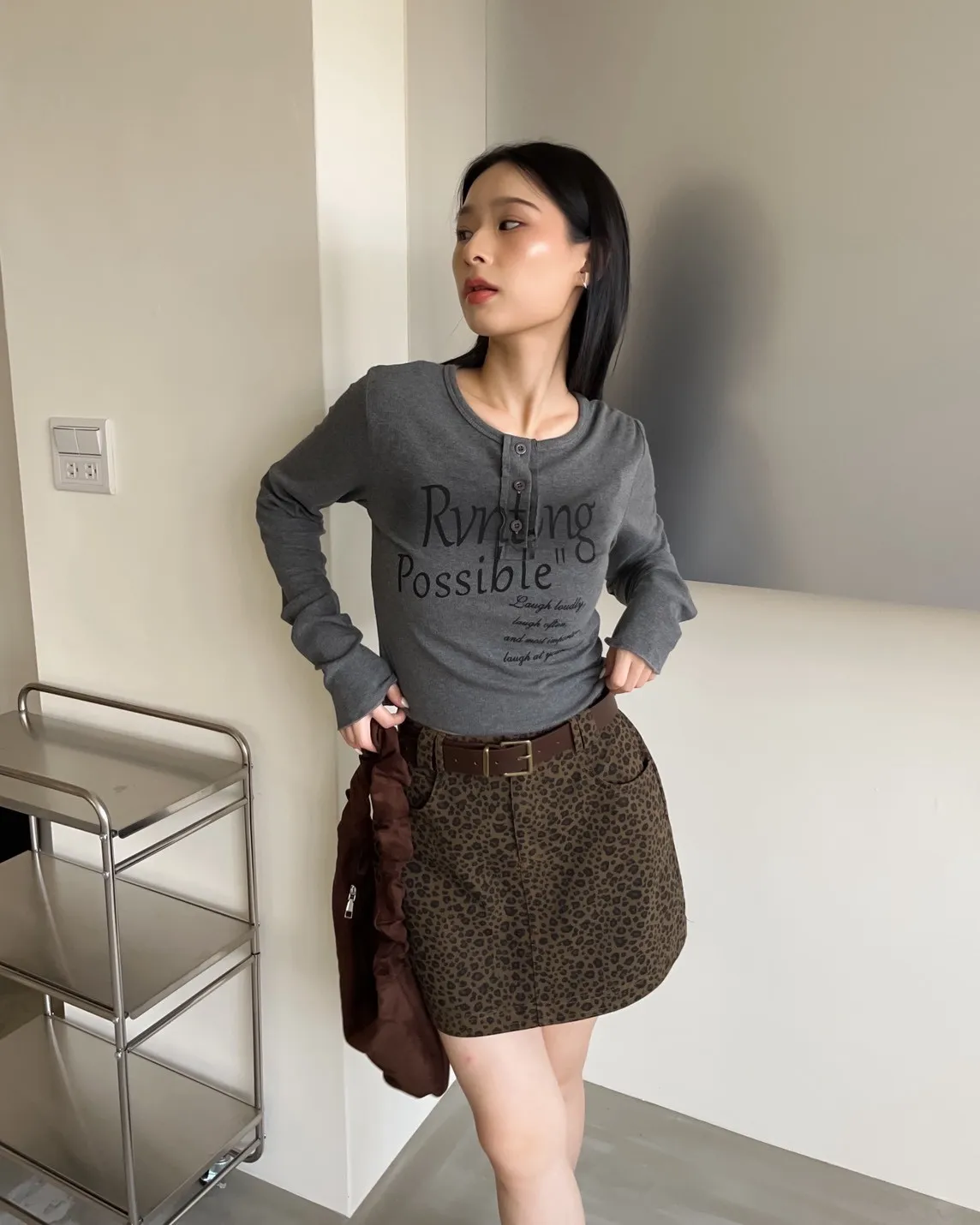 V0053(附皮帶)復古の豹紋短裙(灰/咖啡)