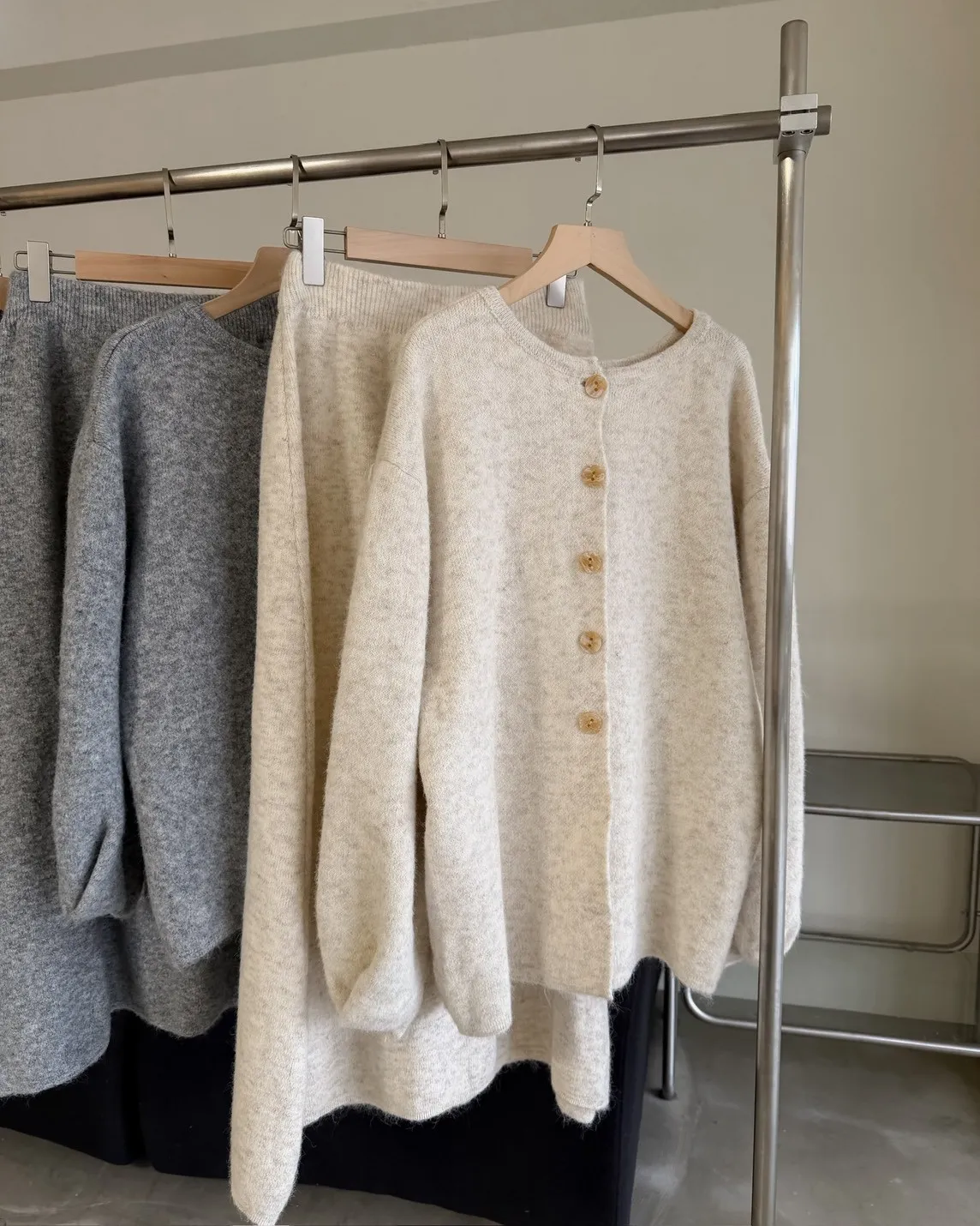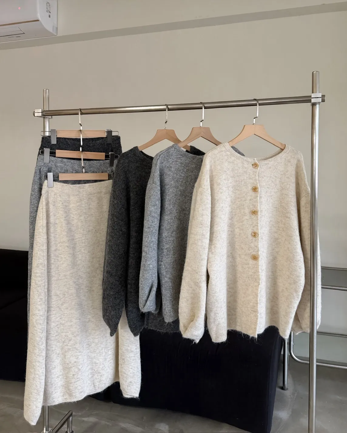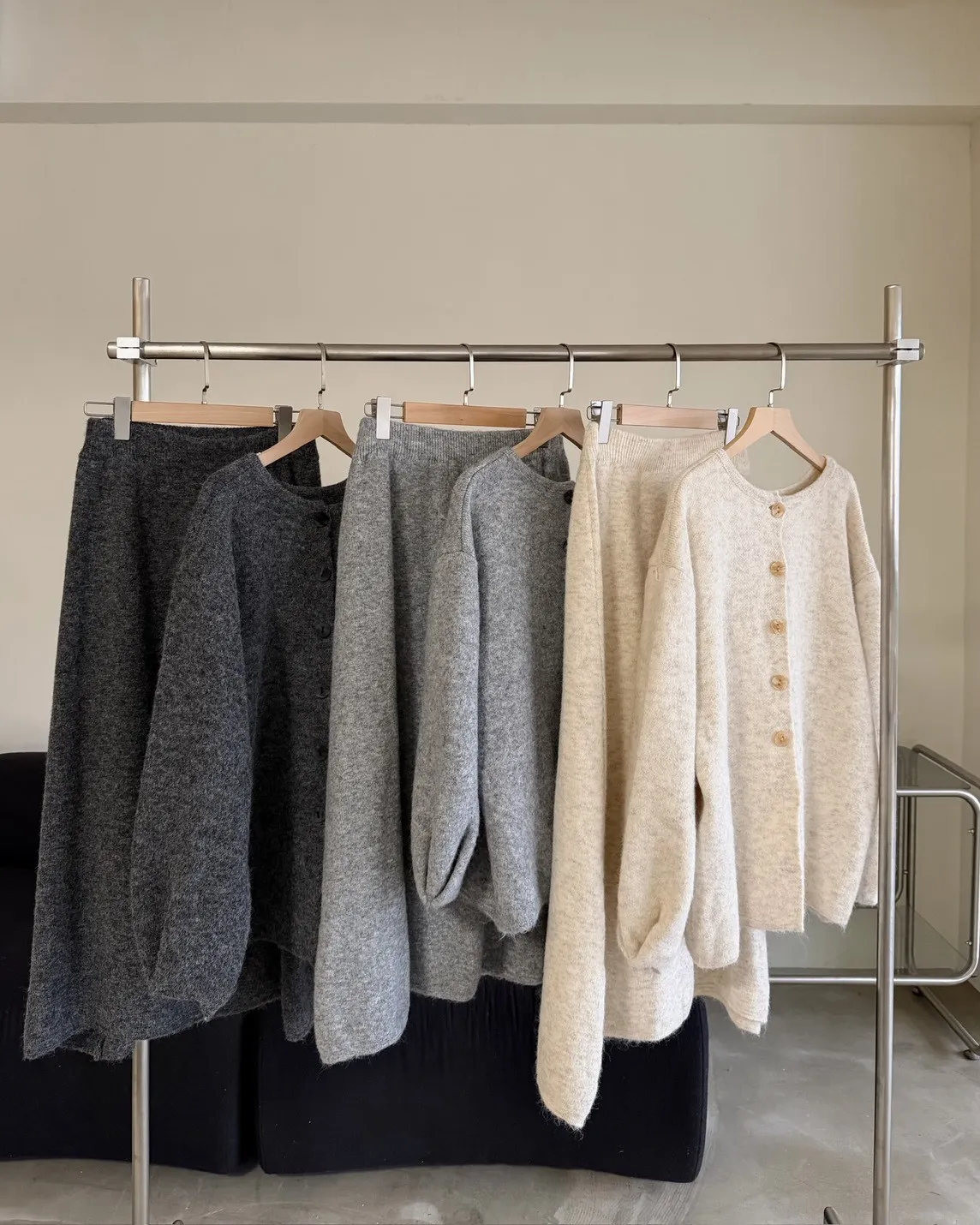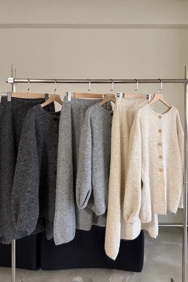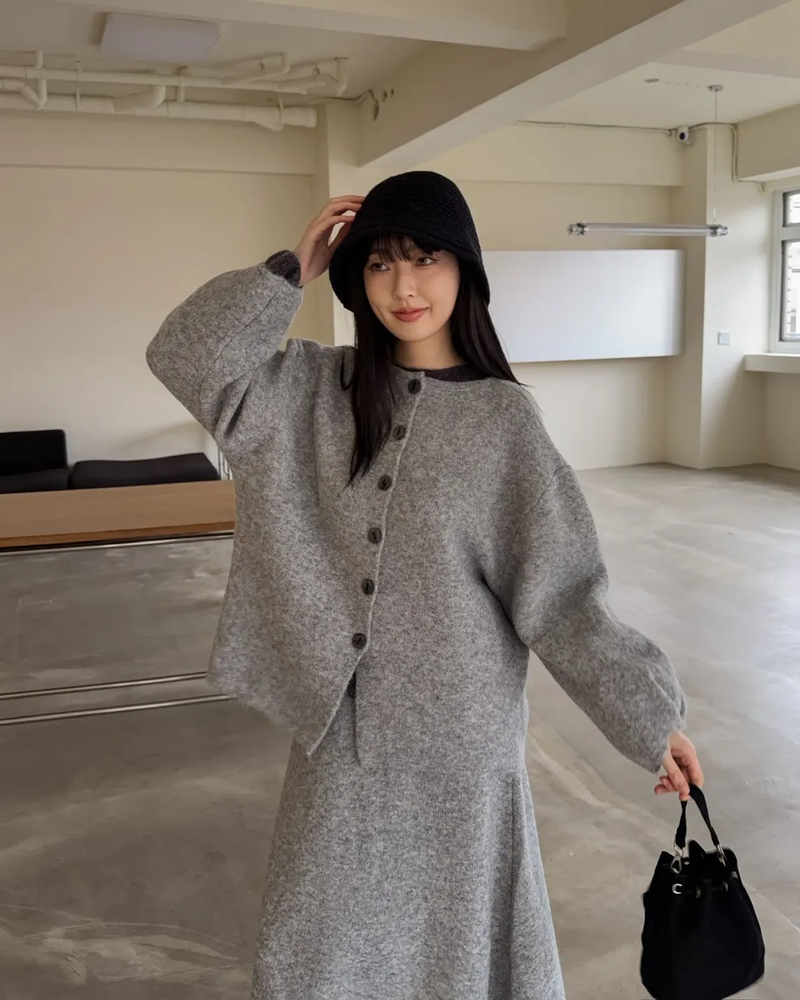 Y0017(SET)溫柔紐釦針織外套+長裙(燕麥/淺灰/深灰)