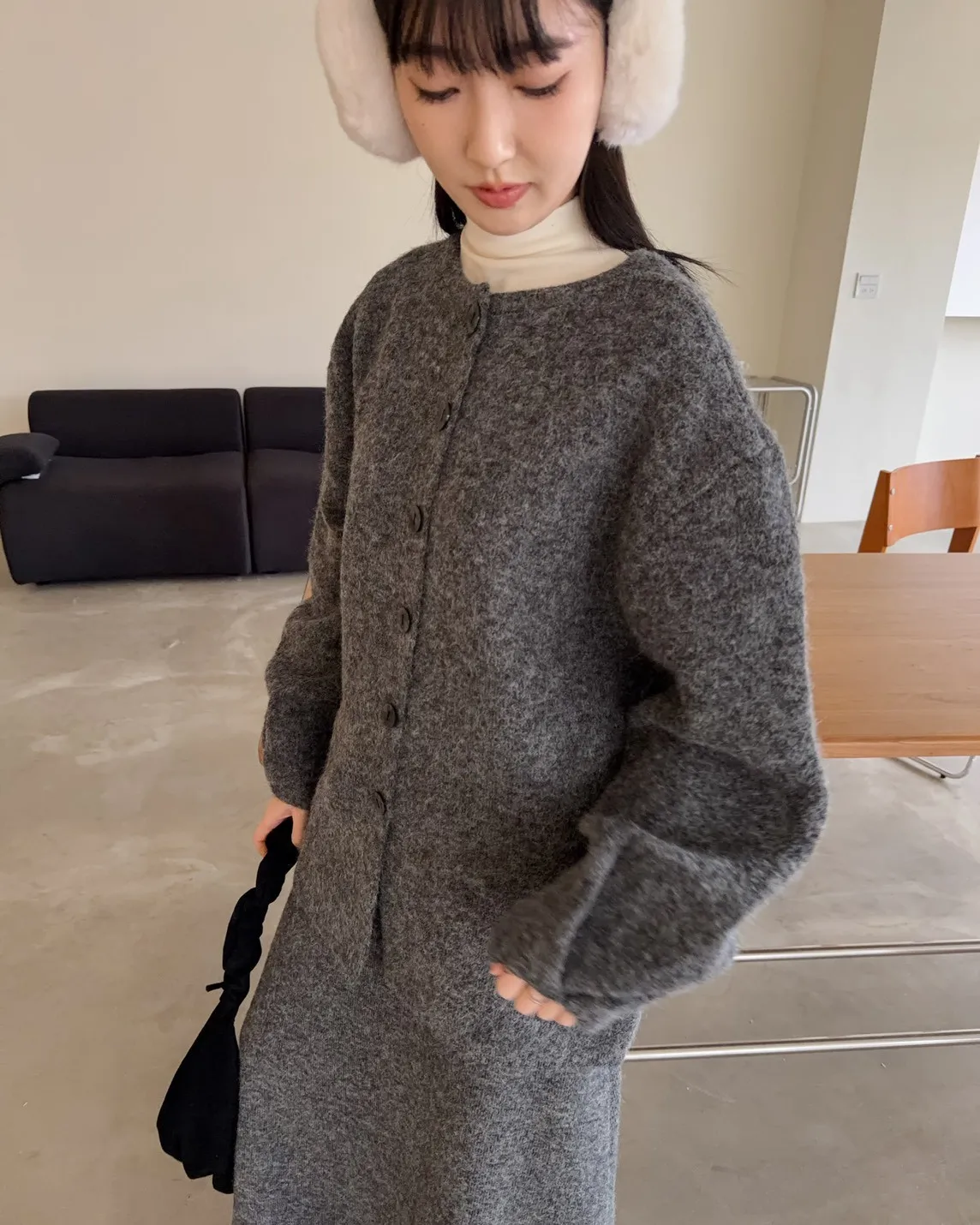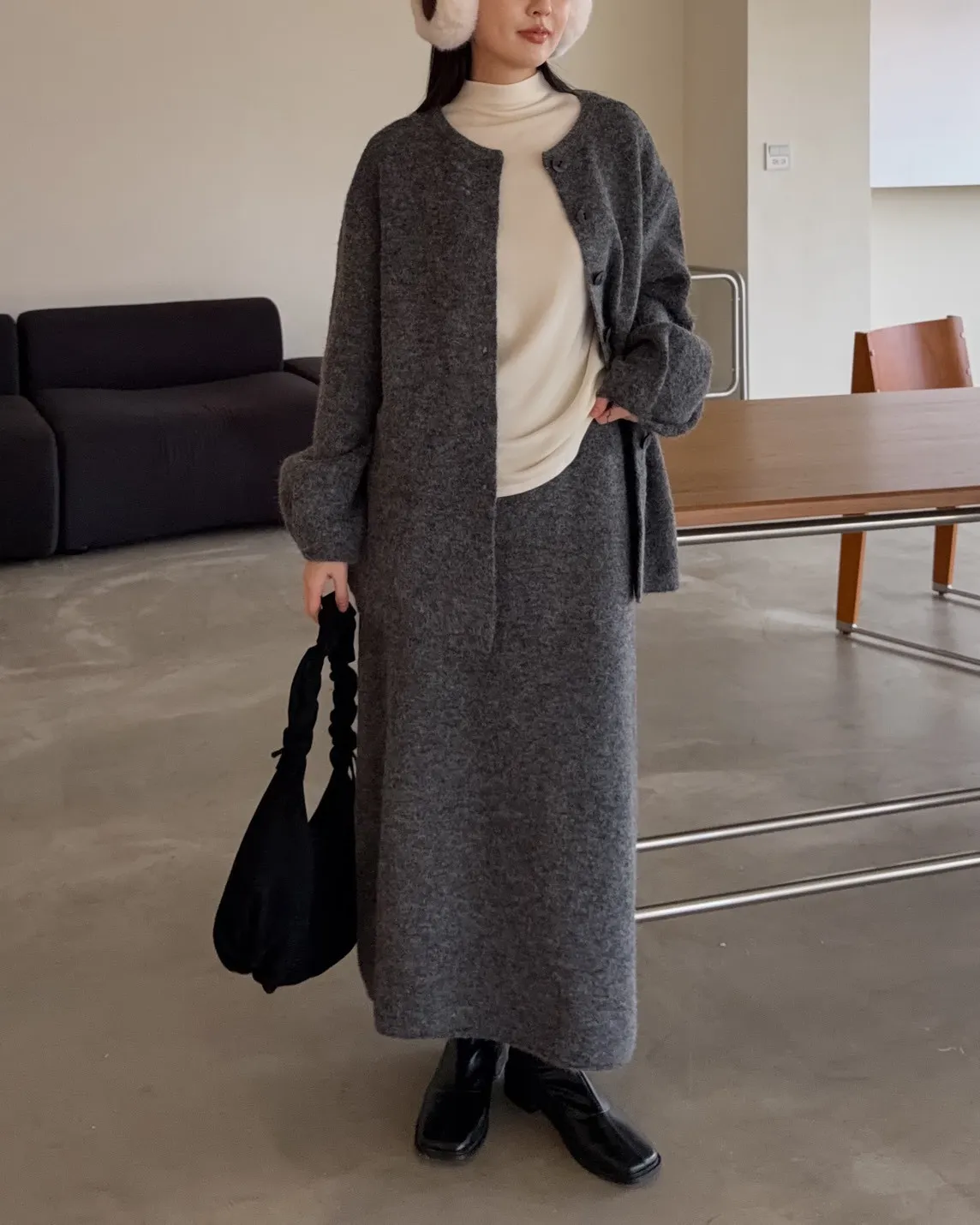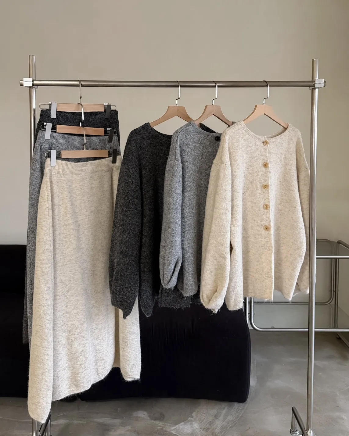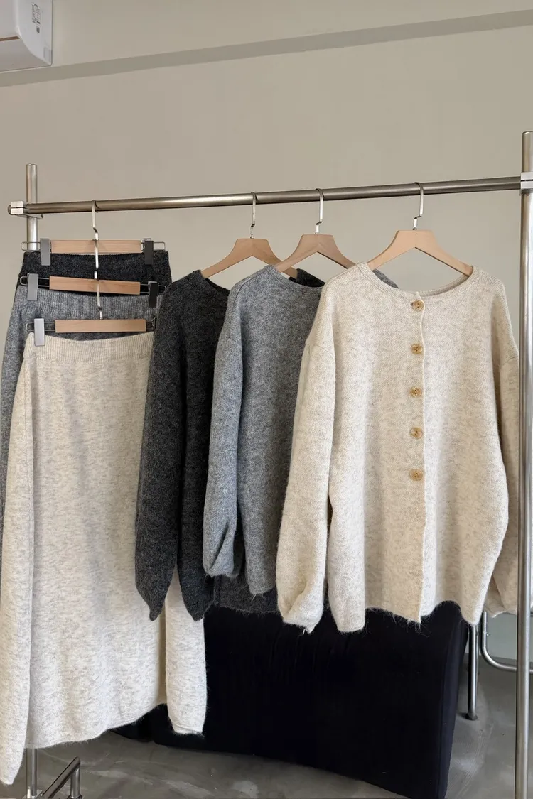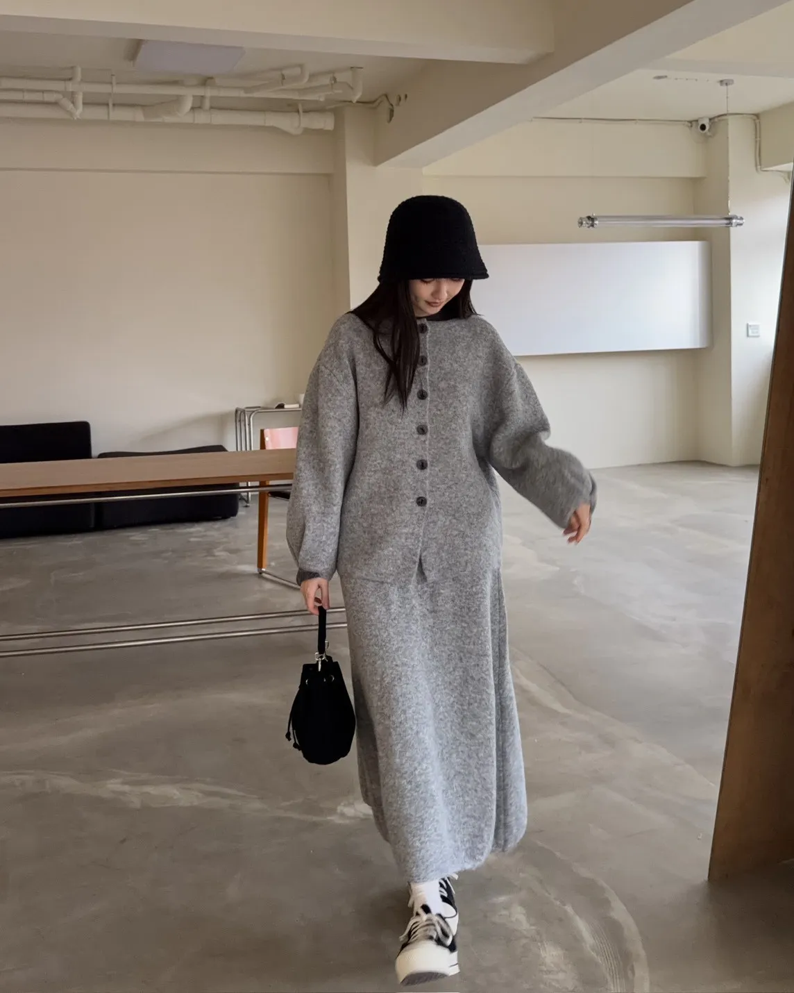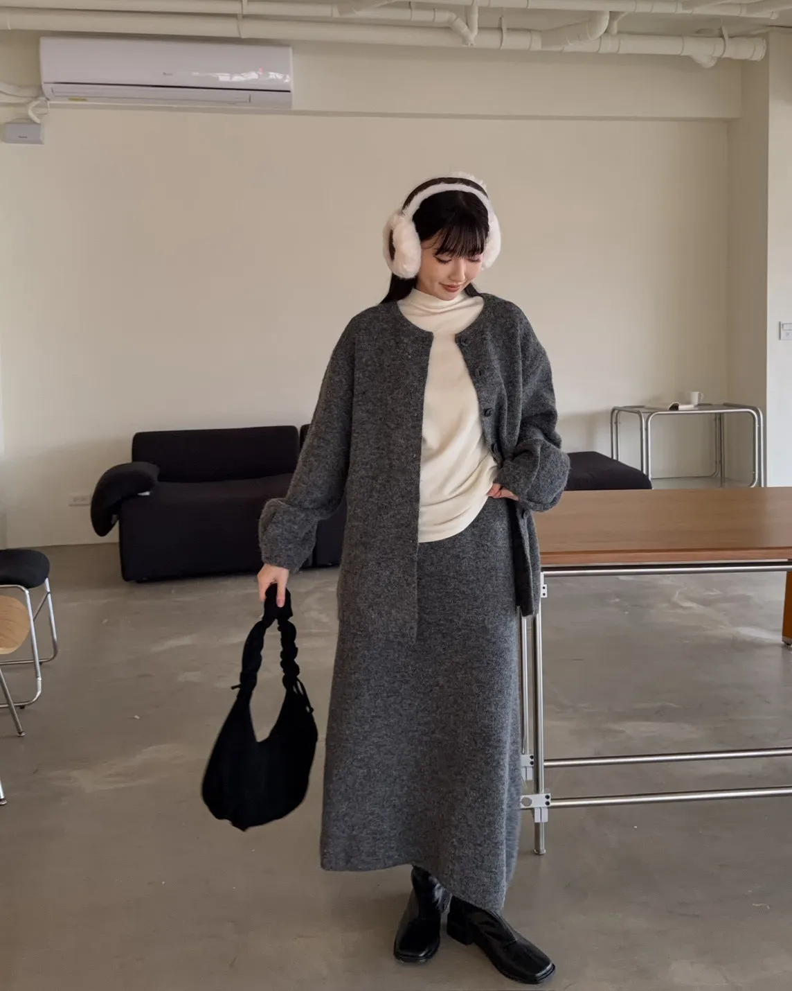 Y0017(SET)溫柔紐釦針織外套+長裙(燕麥/淺灰/深灰)