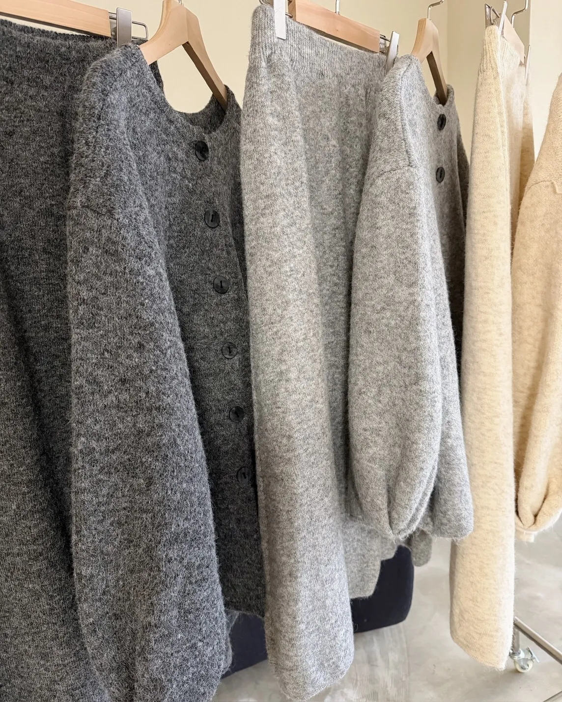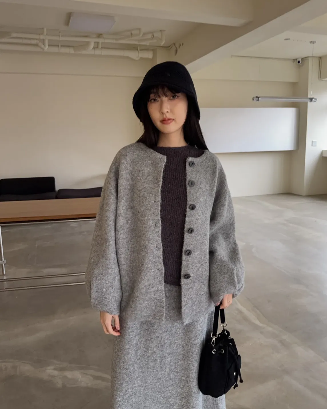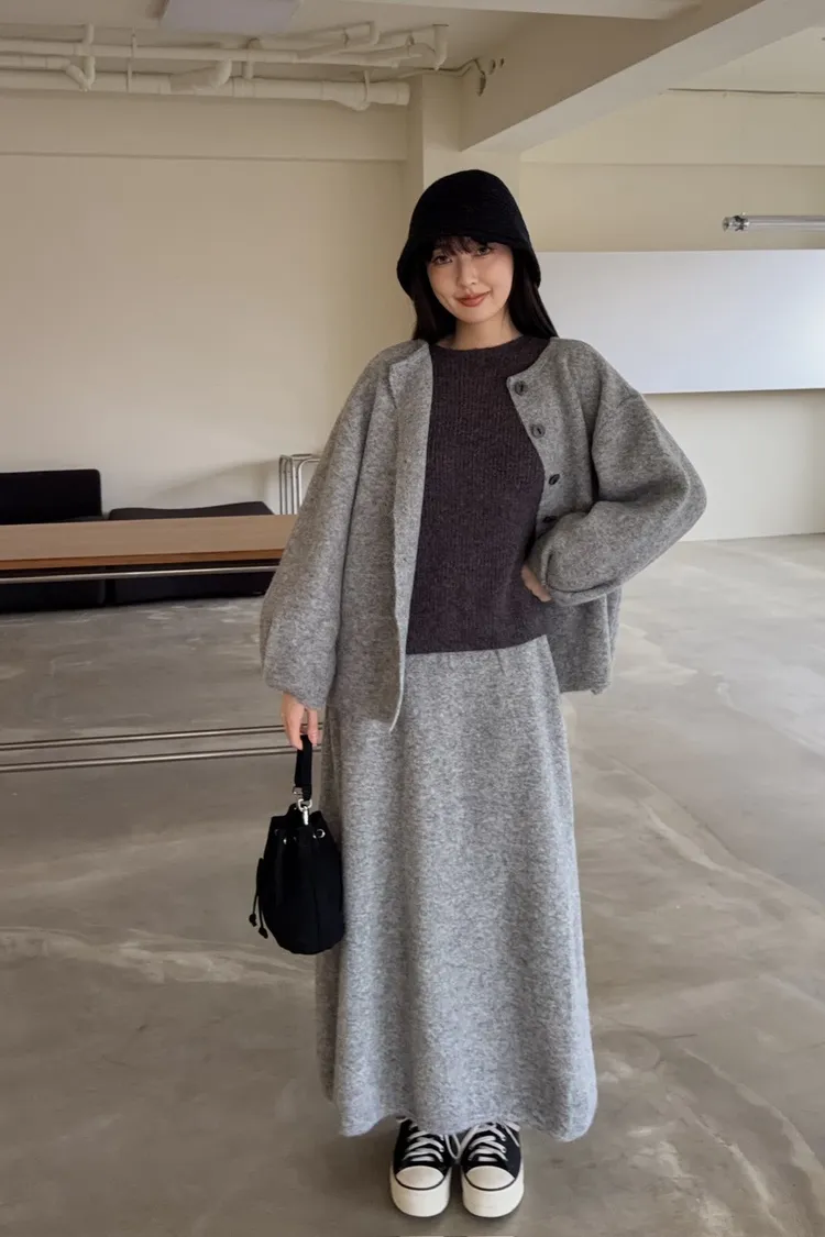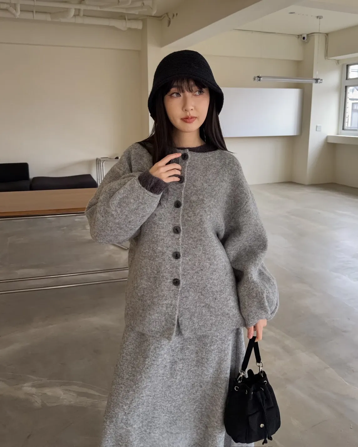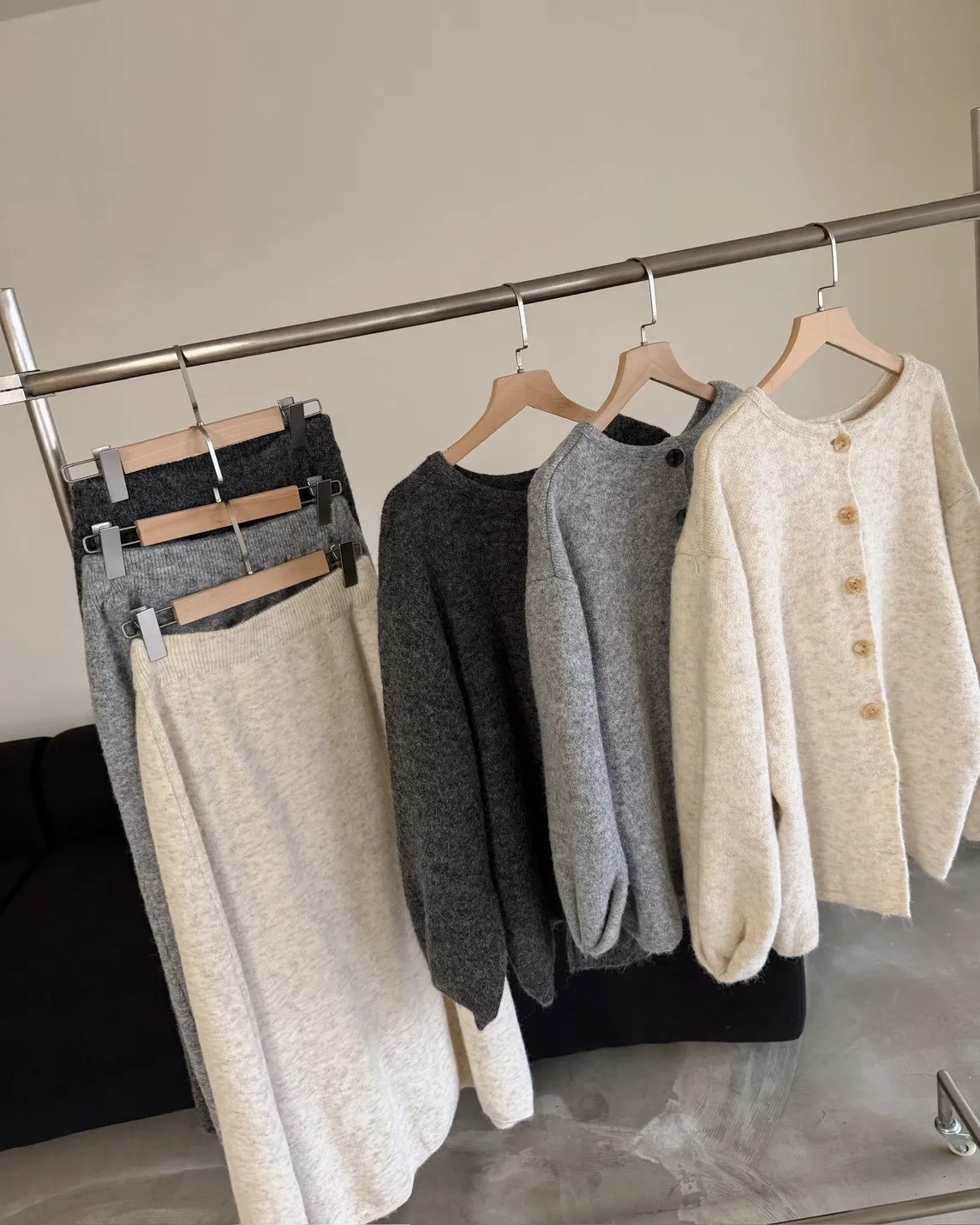 Y0017(SET)溫柔紐釦針織外套+長裙(燕麥/淺灰/深灰)
