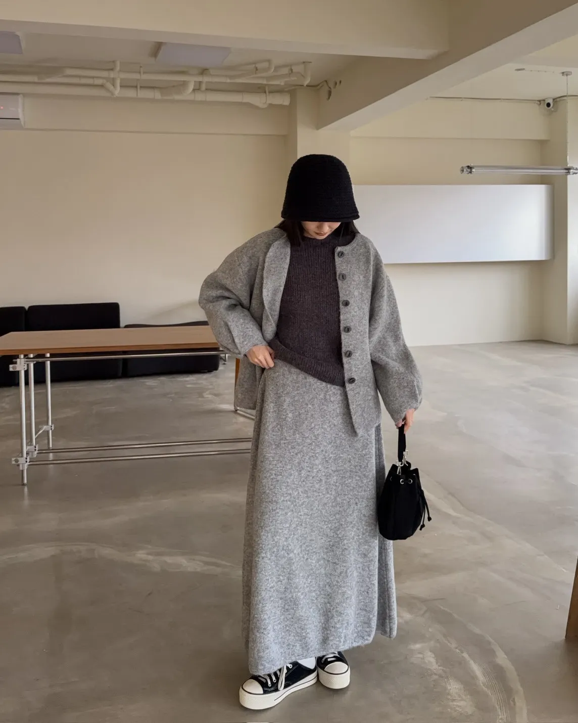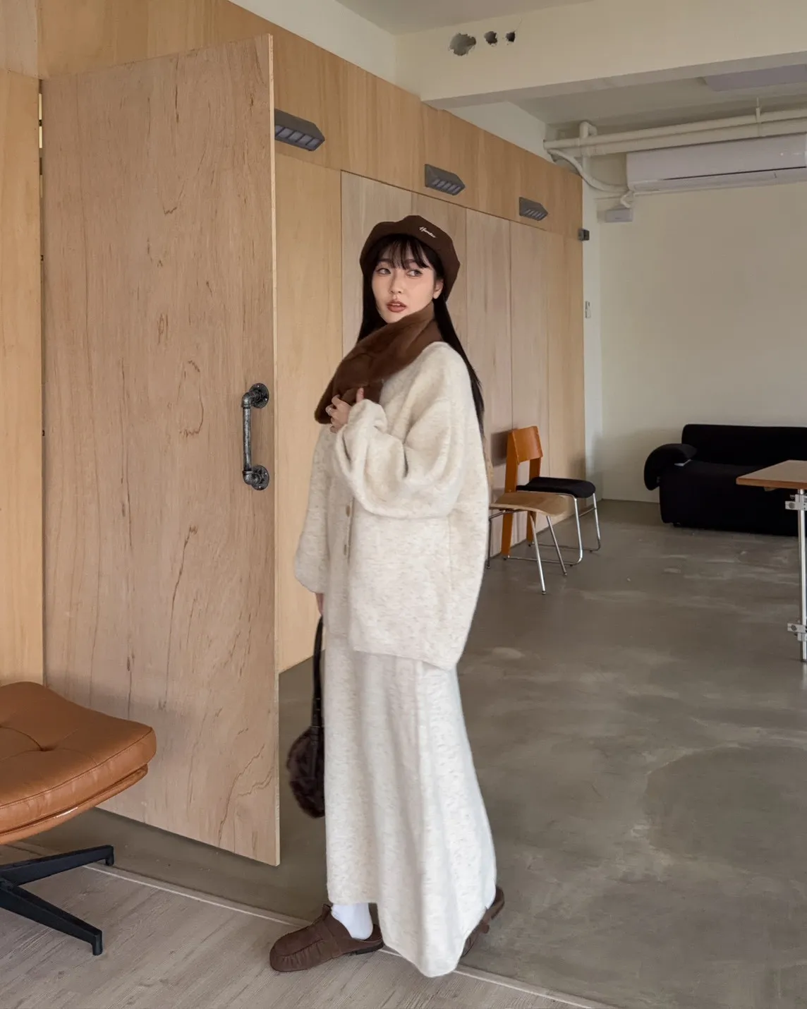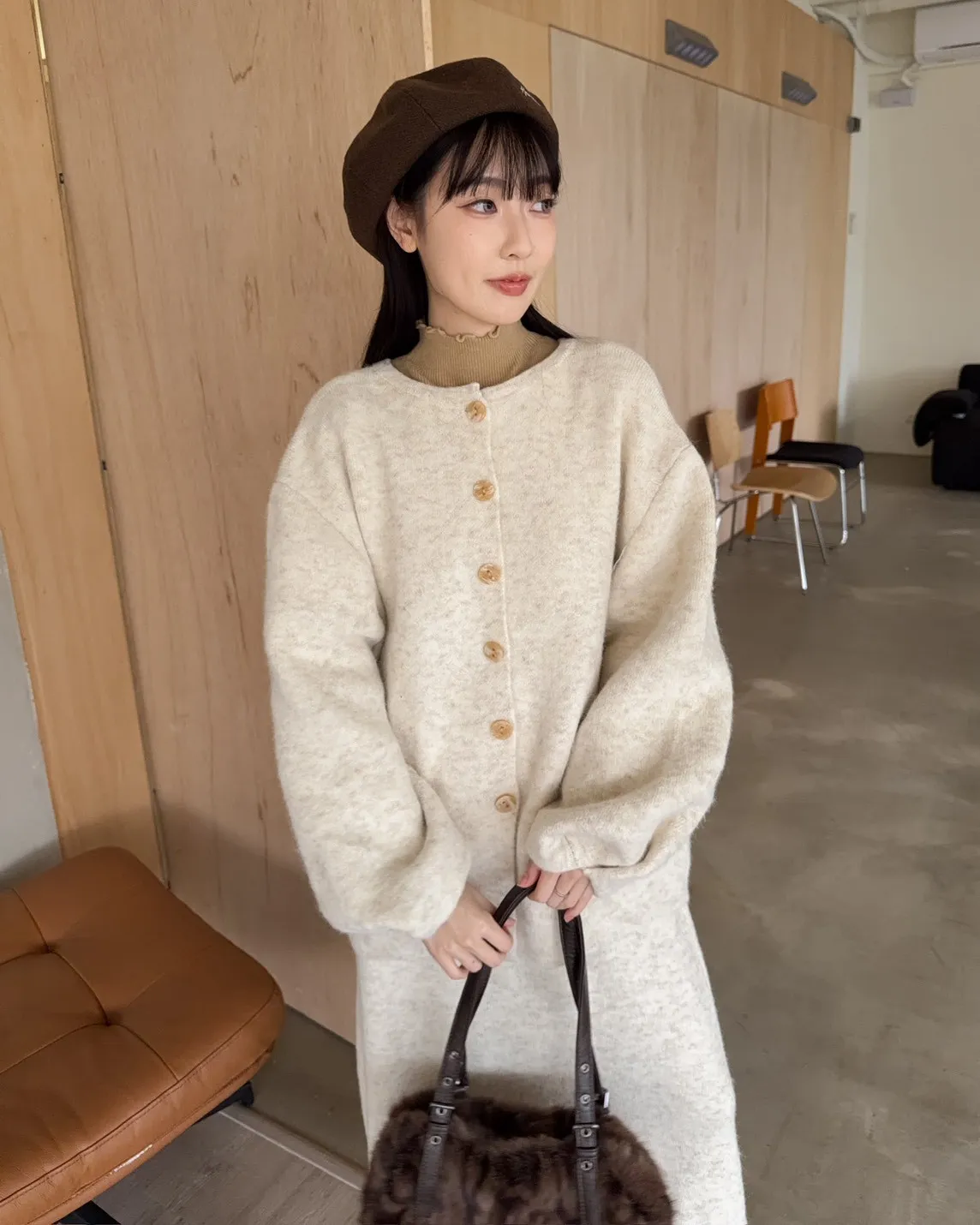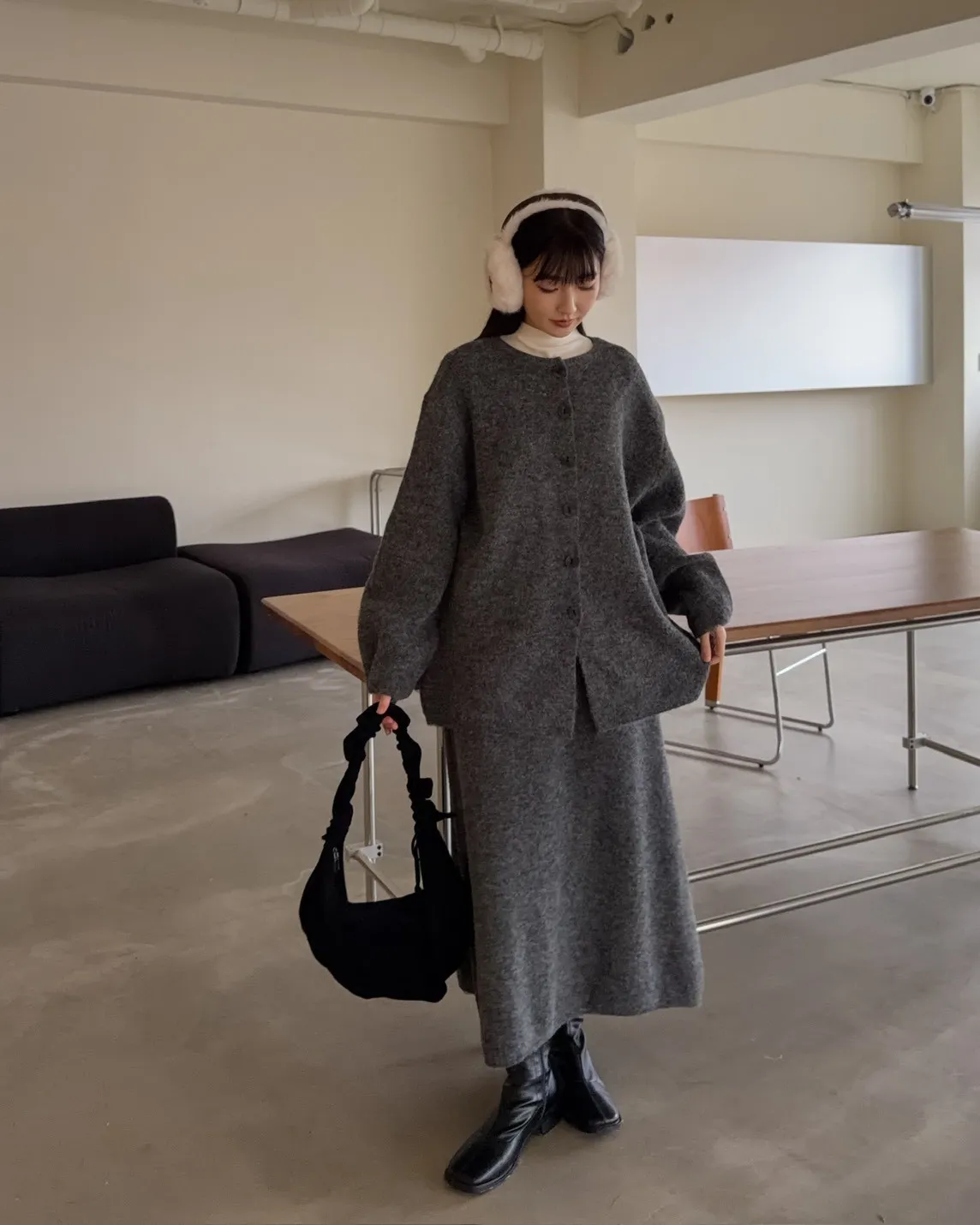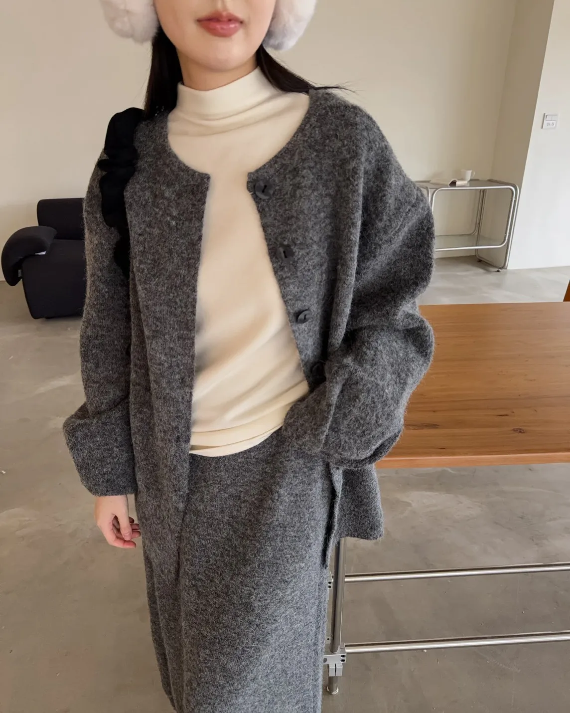 Y0017(SET)溫柔紐釦針織外套+長裙(燕麥/淺灰/深灰)