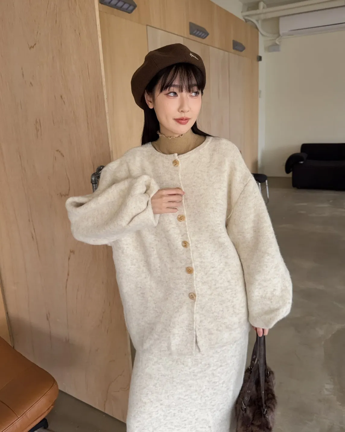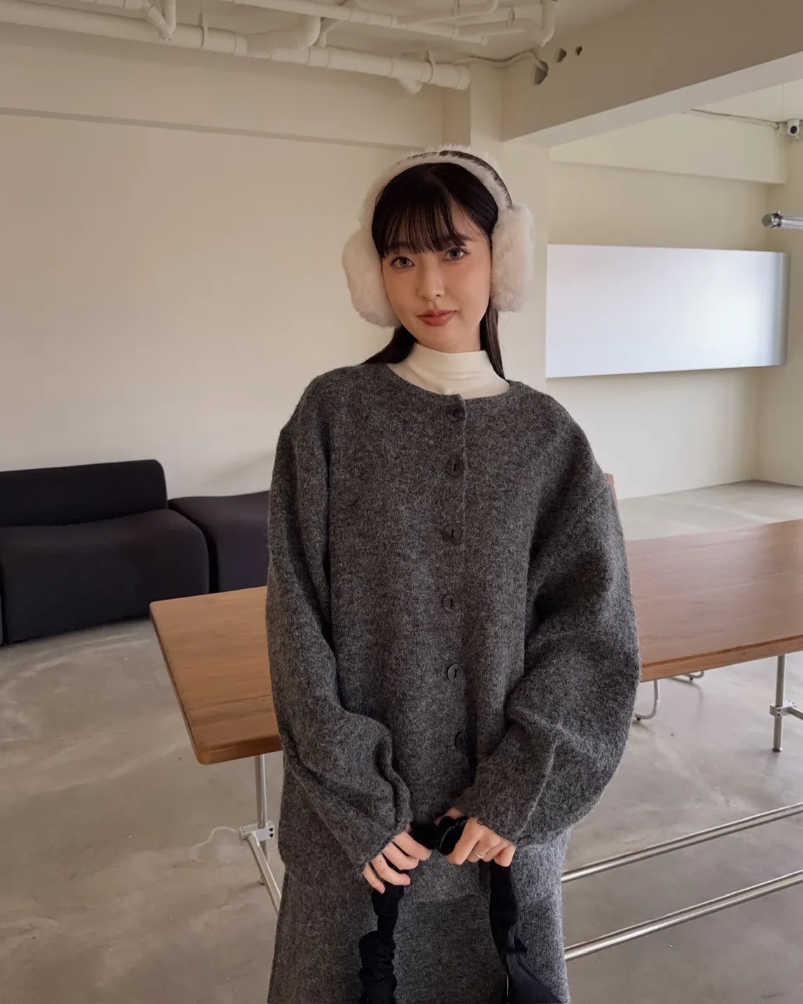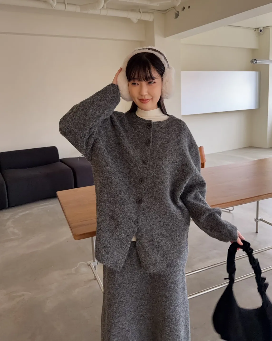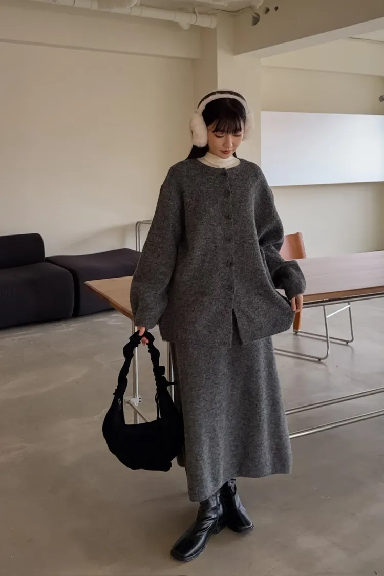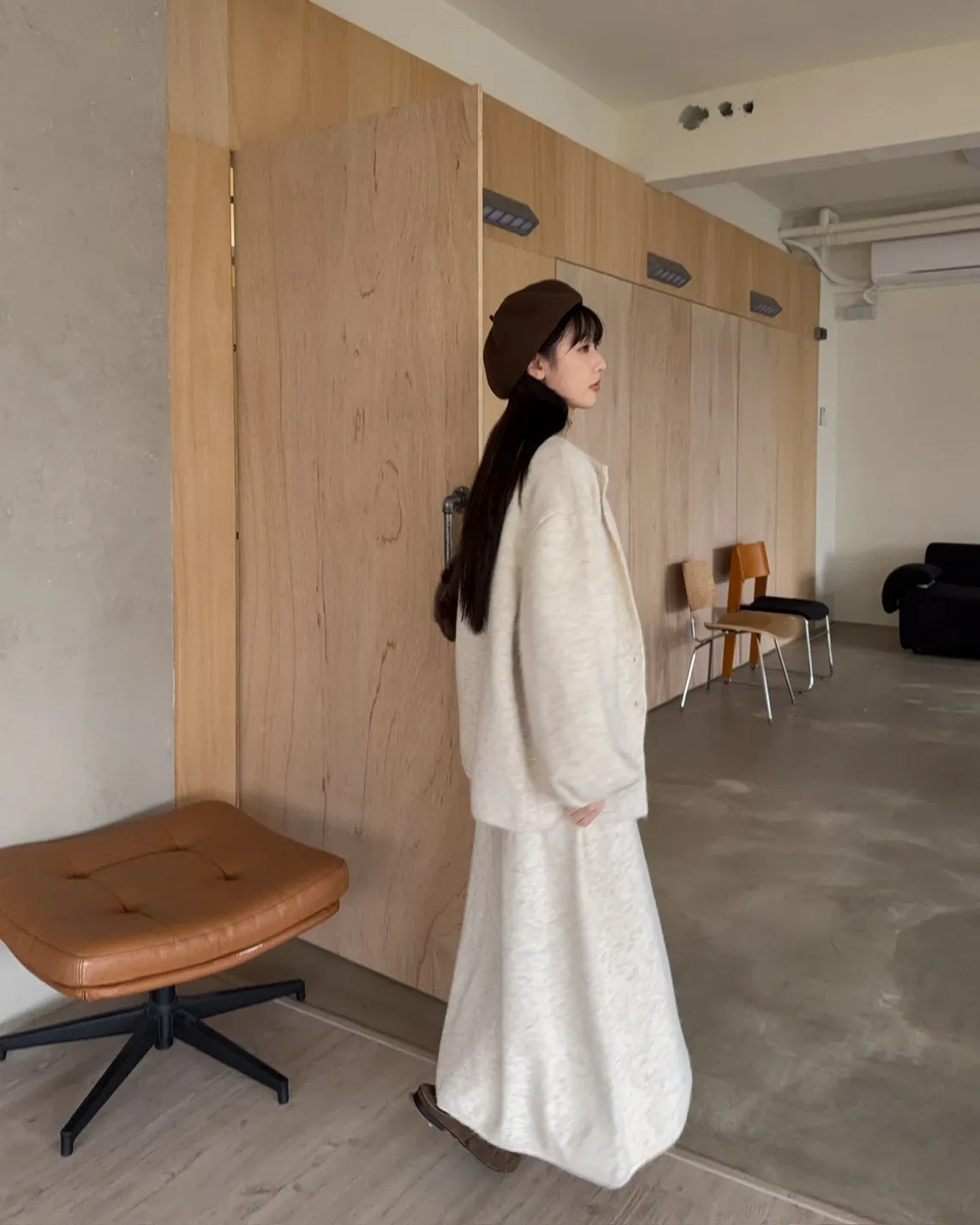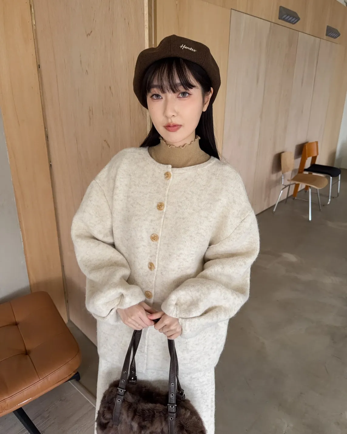 Y0017(SET)溫柔紐釦針織外套+長裙(燕麥/淺灰/深灰)