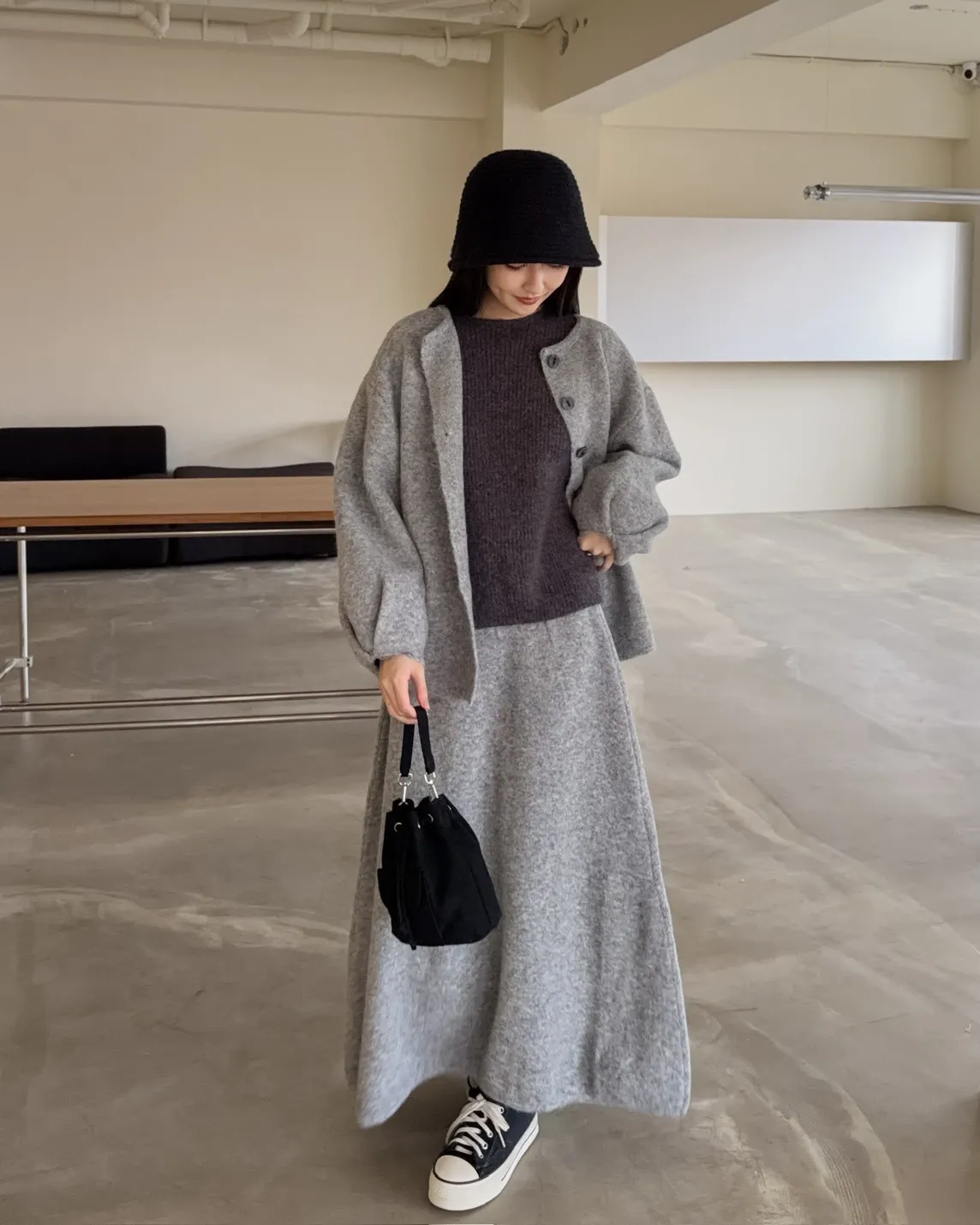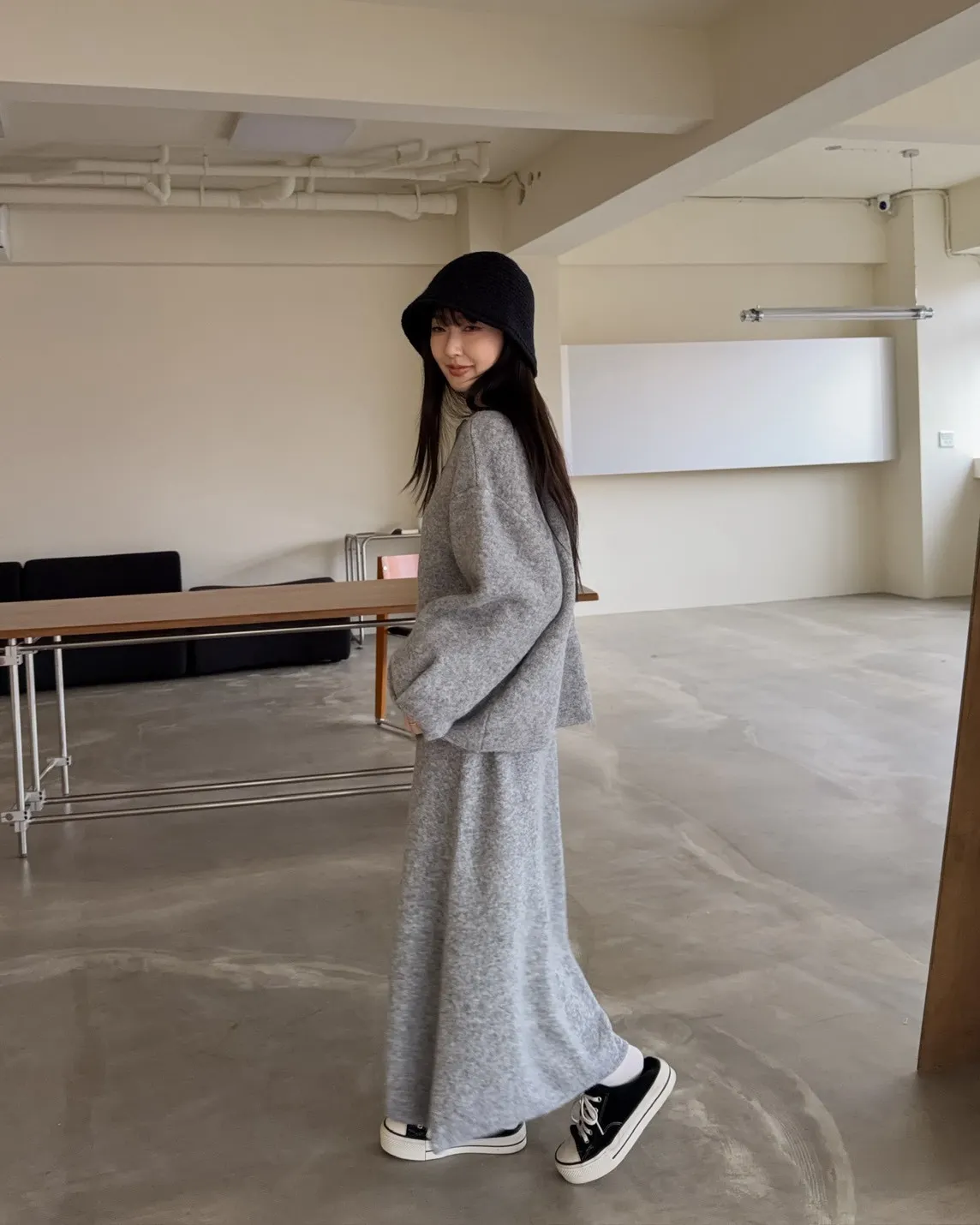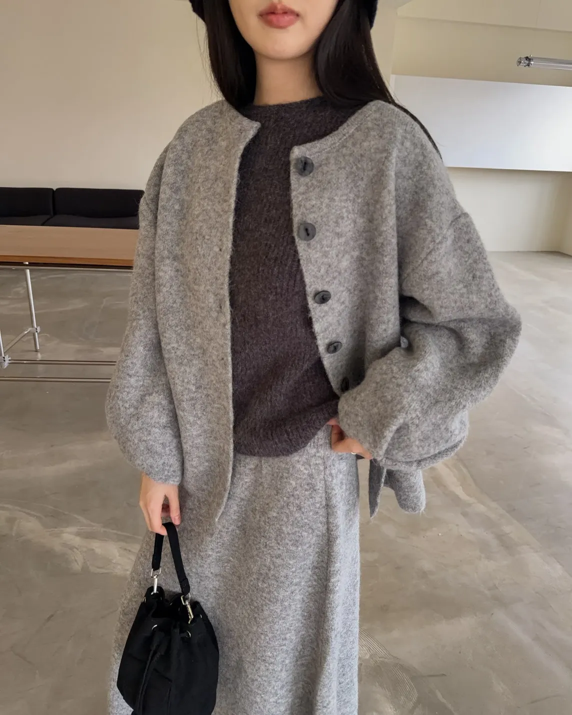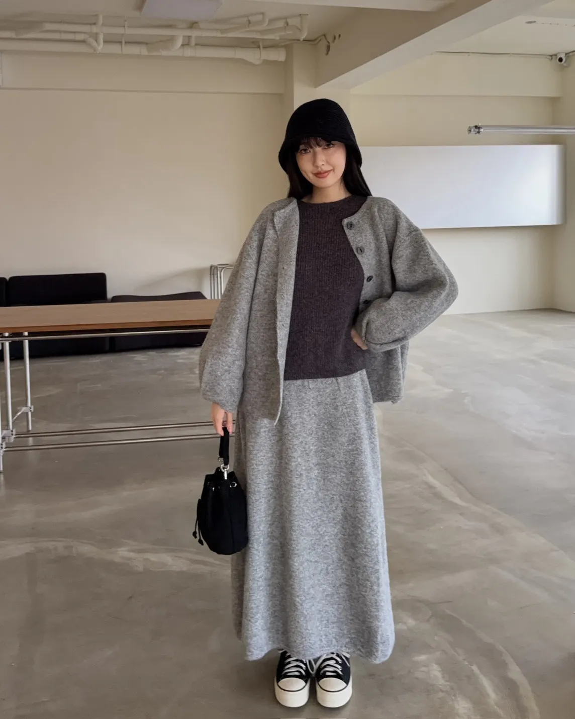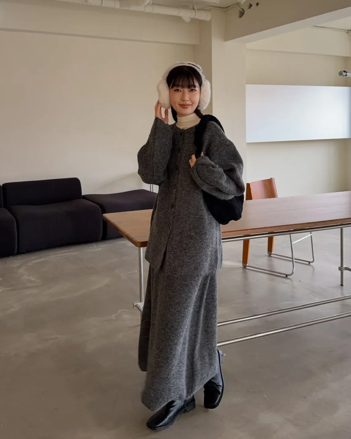 Y0017(SET)溫柔紐釦針織外套+長裙(燕麥/淺灰/深灰)
