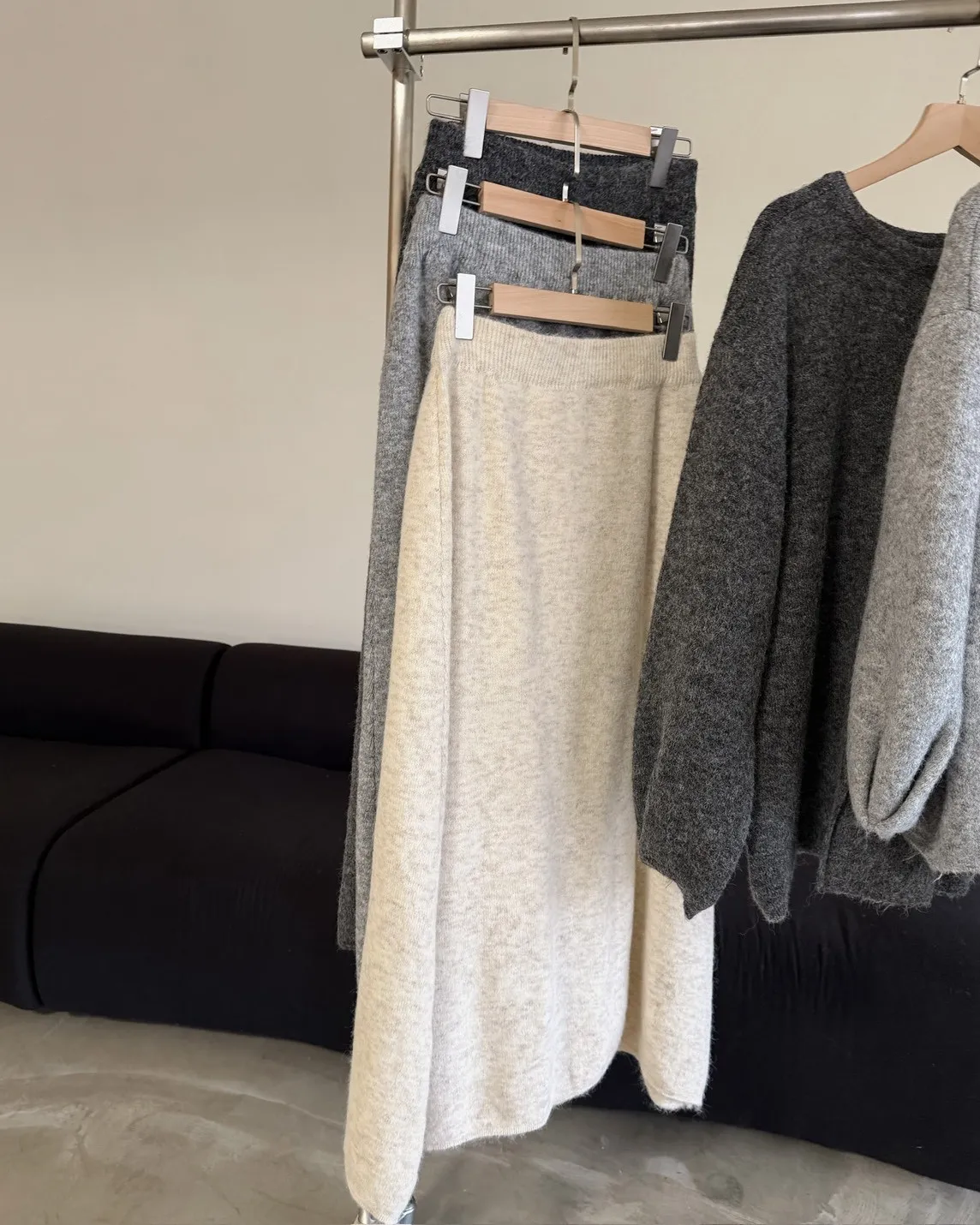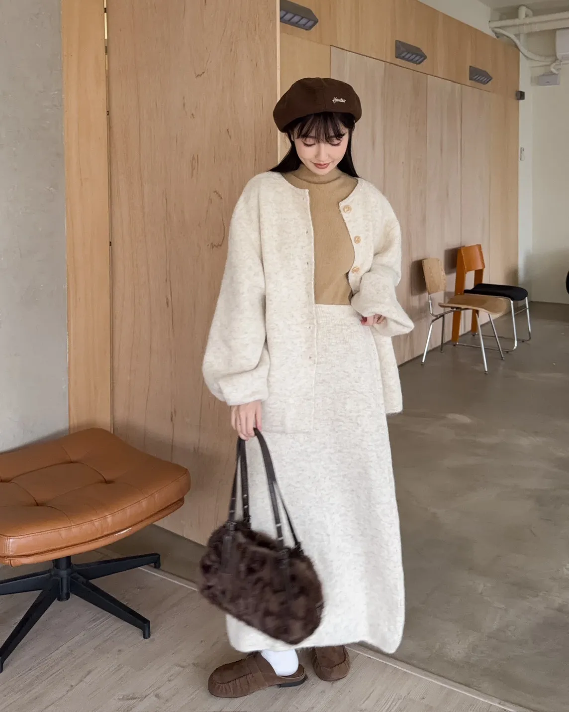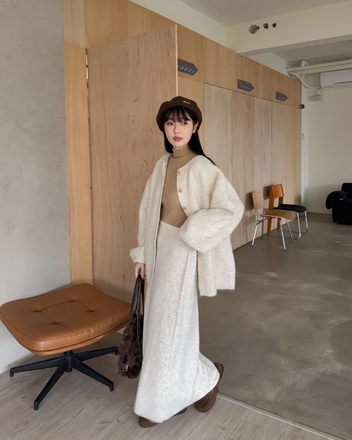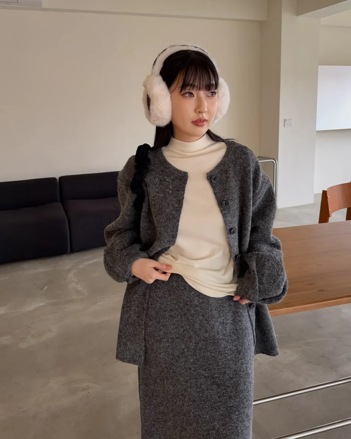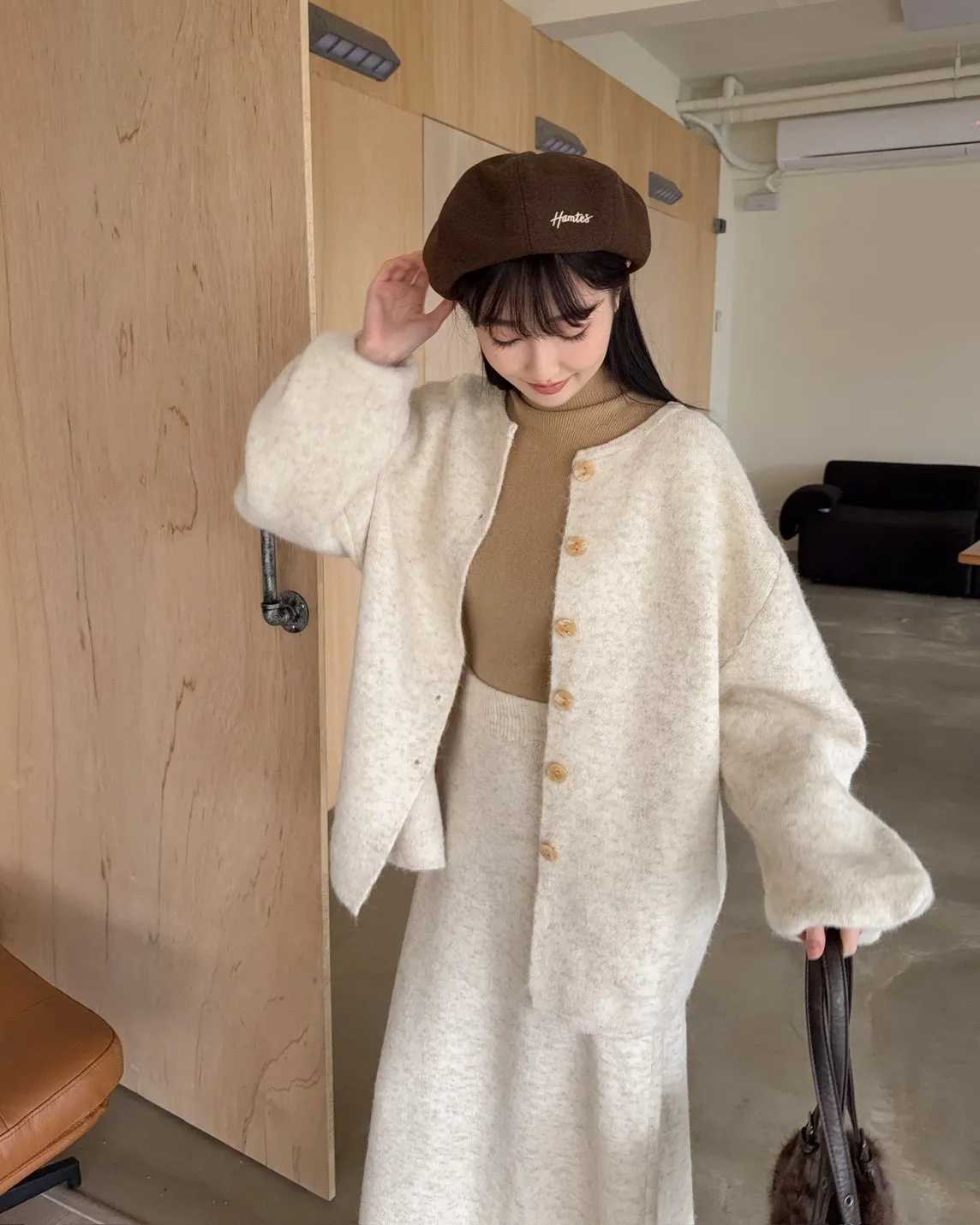 Y0017(SET)溫柔紐釦針織外套+長裙(燕麥/淺灰/深灰)