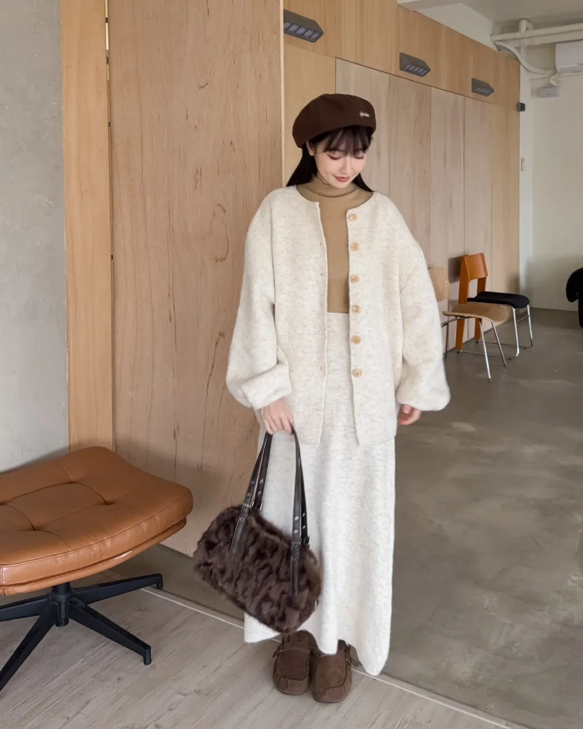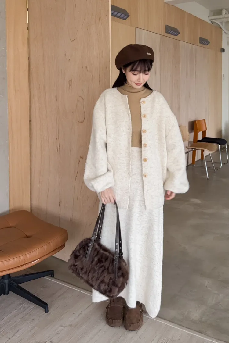 開釦針織外套可雙面穿 袖口抓皺澎澎超可愛 裙子鬆緊可至大L 長度小隻女友善 整件混毛很溫暖~~