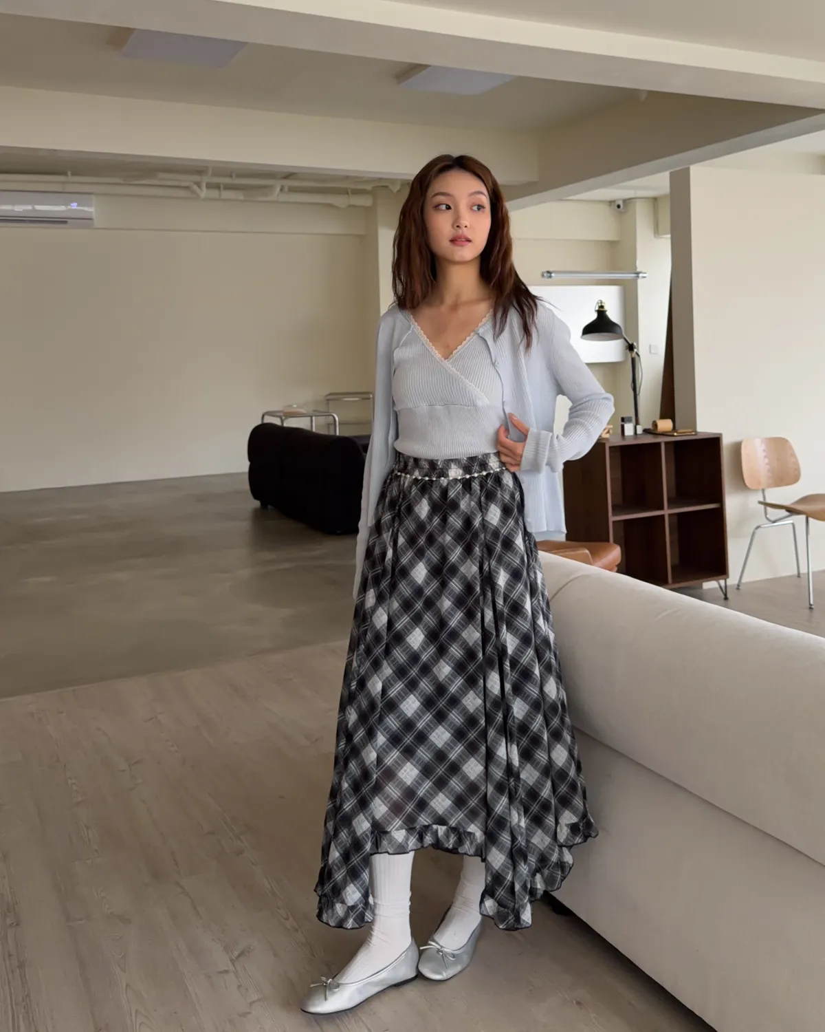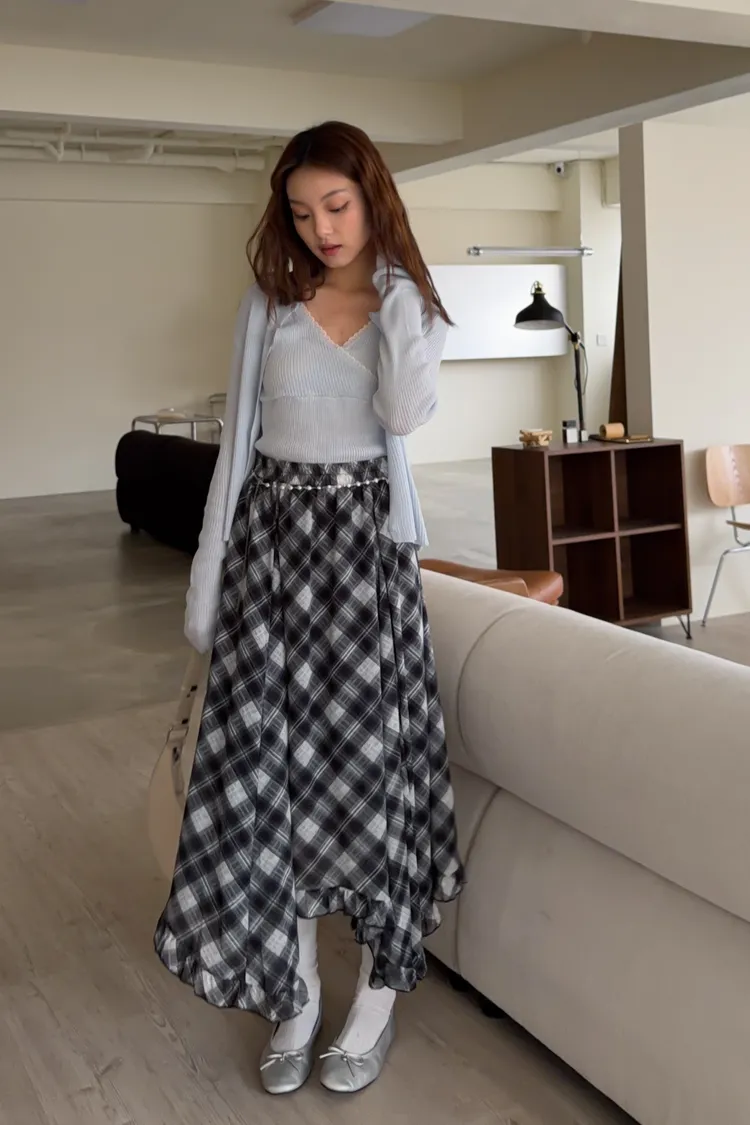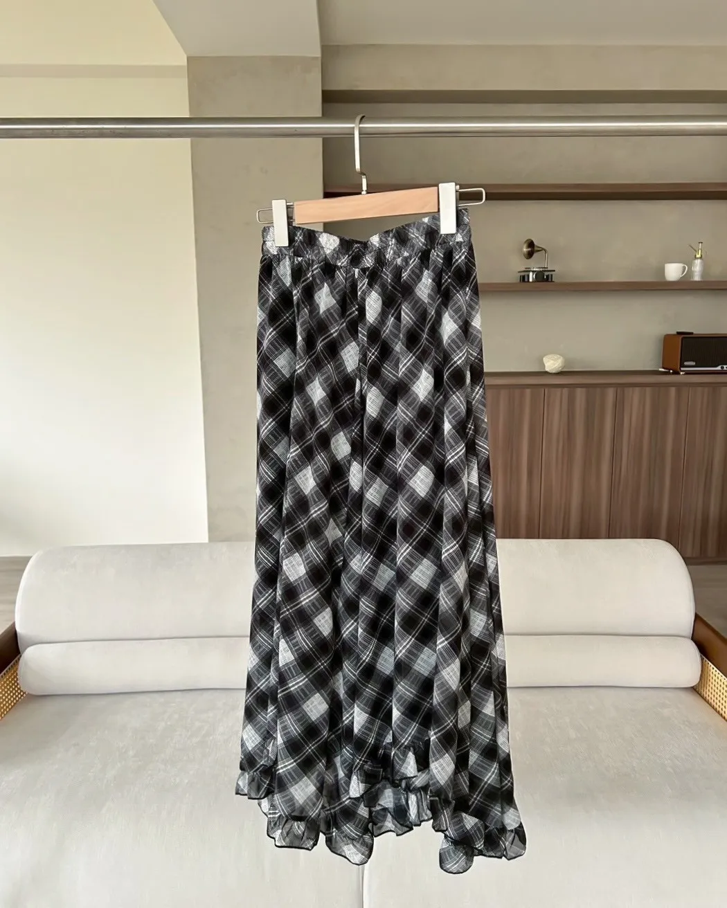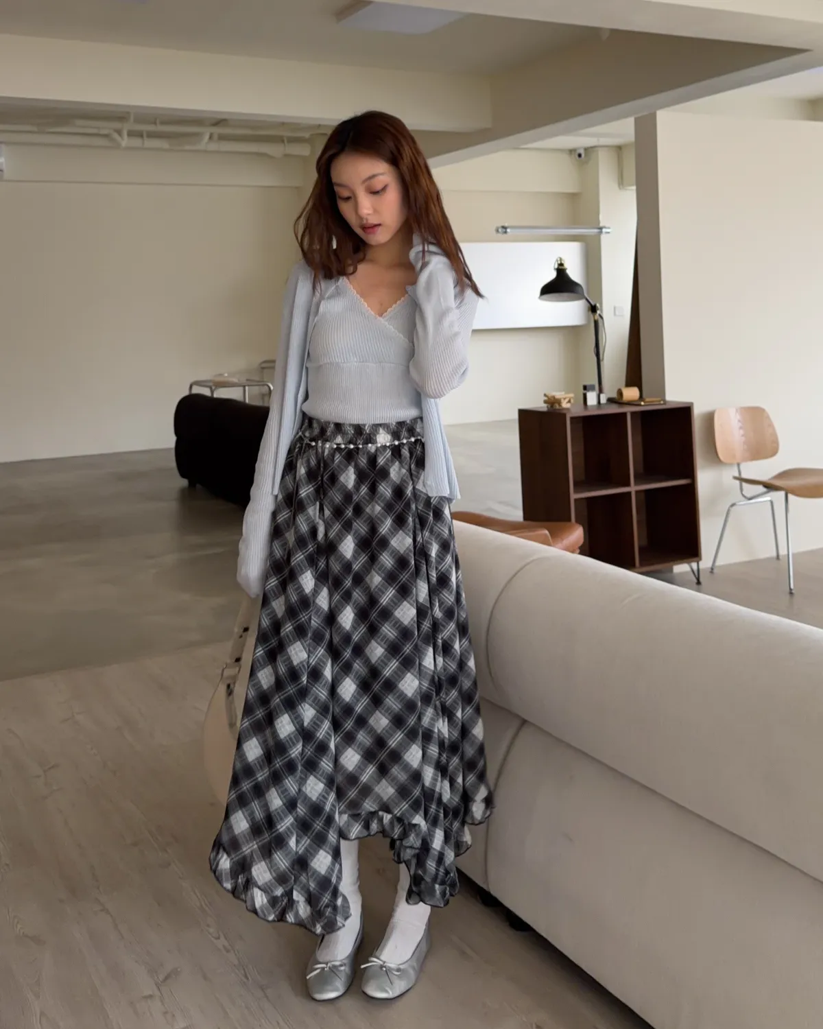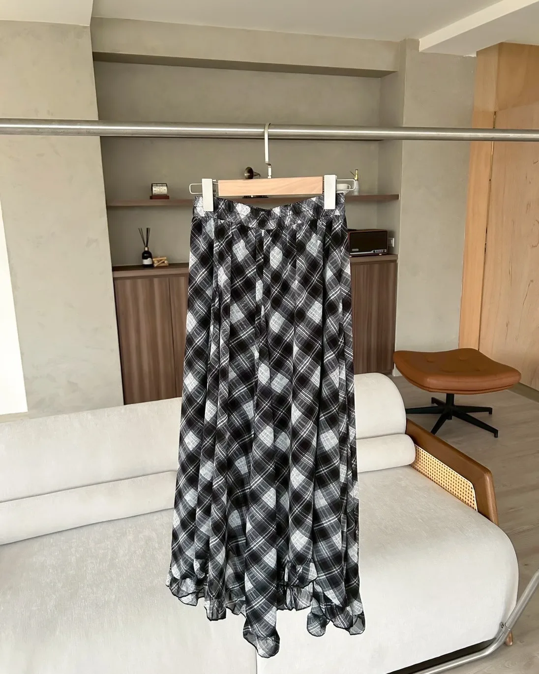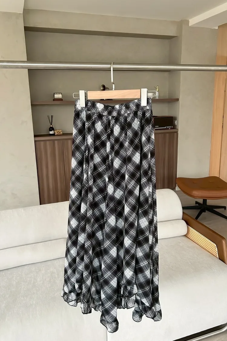 全鬆緊 建議尺寸S-大L 無口袋 有內襯 下擺荷葉邊 不規則裙襬