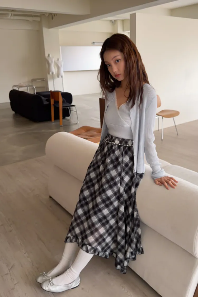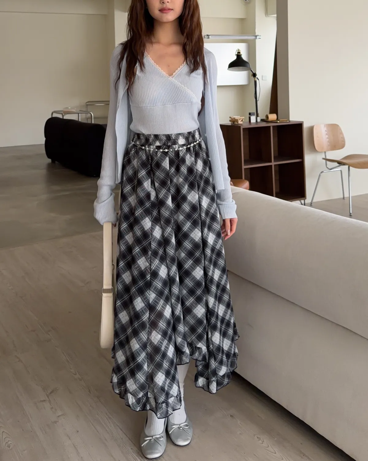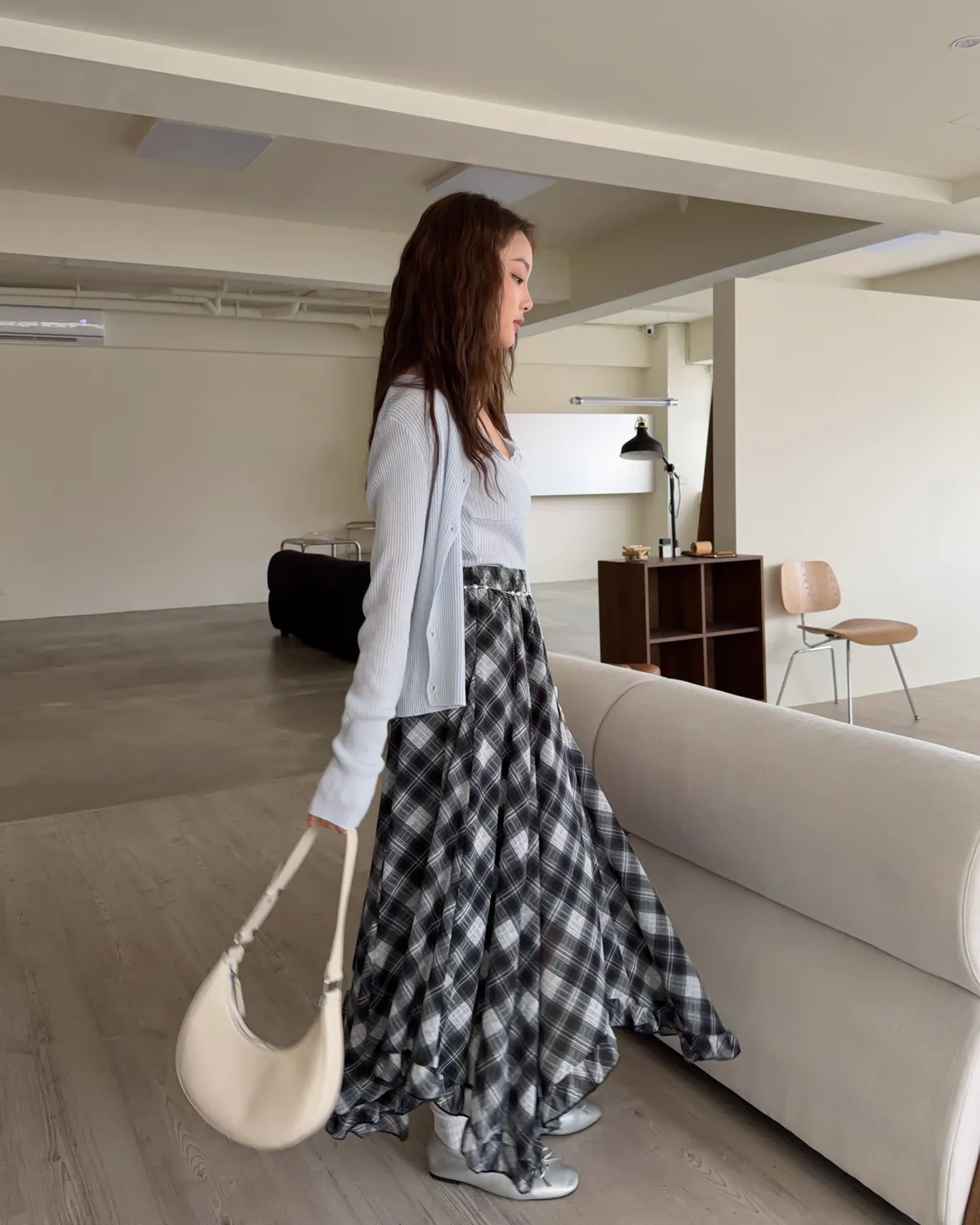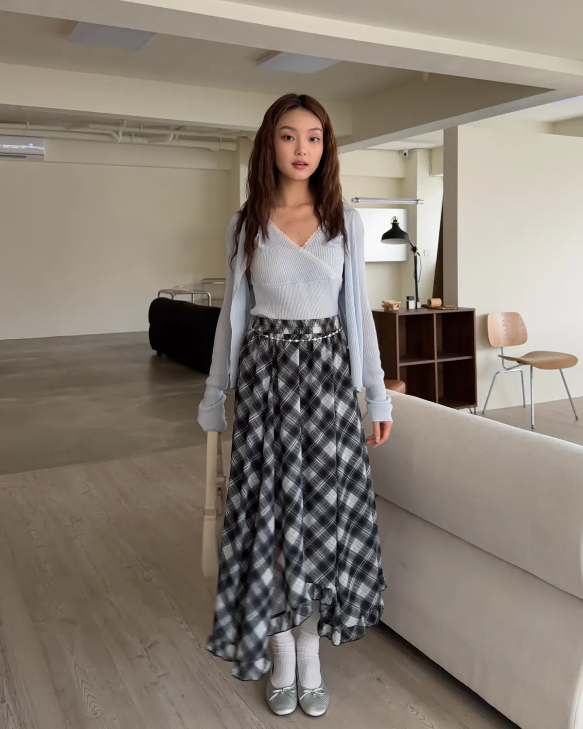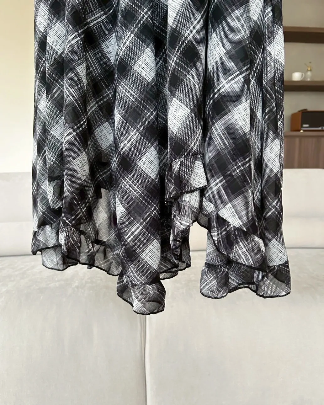 全鬆緊 建議尺寸S-大L 無口袋 有內襯 下擺荷葉邊 不規則裙襬
