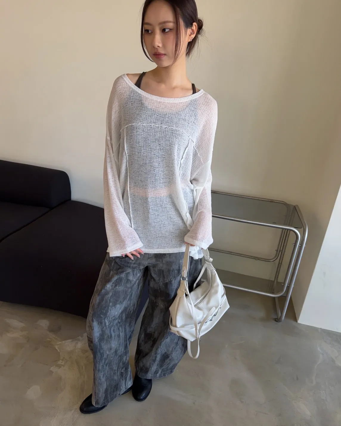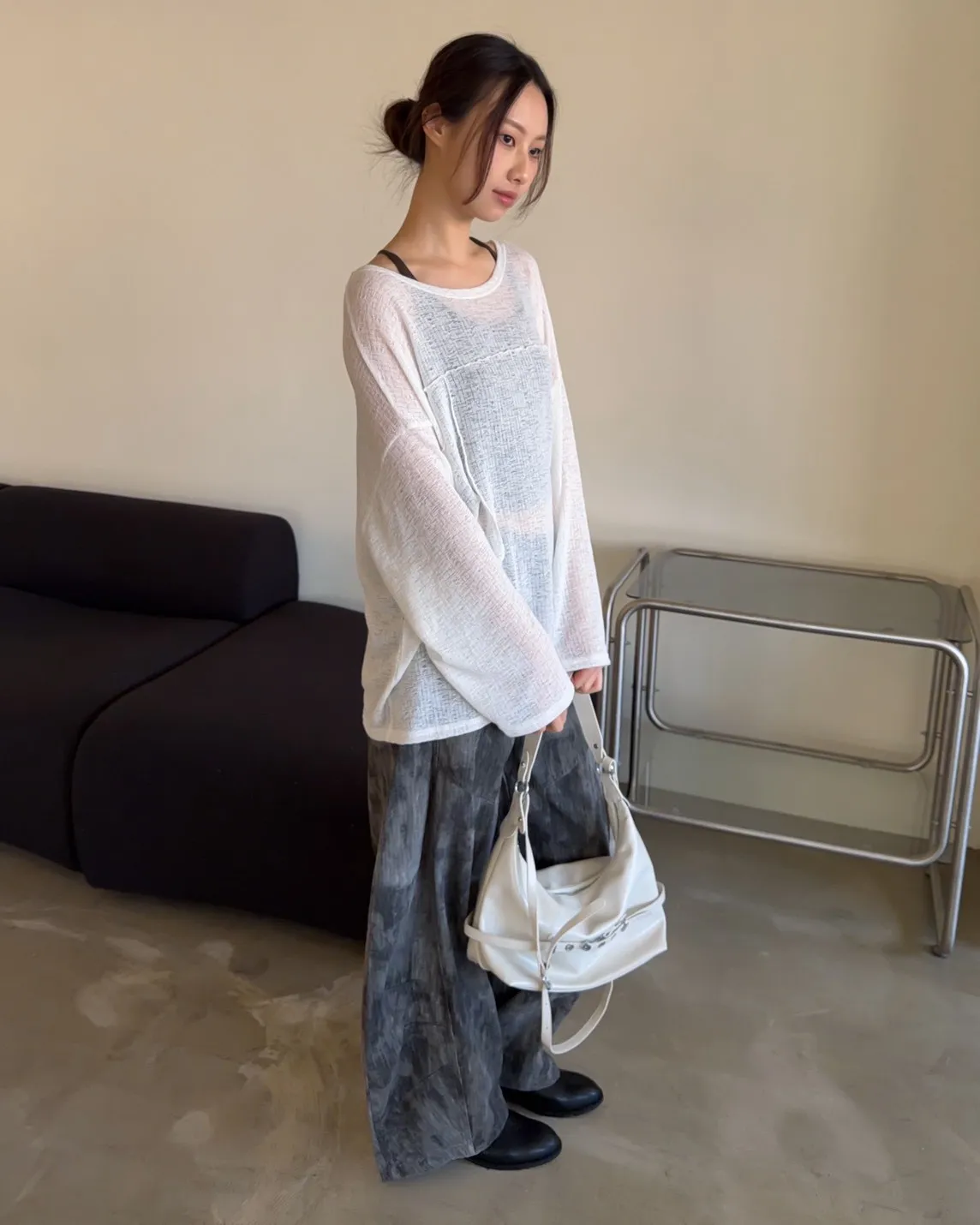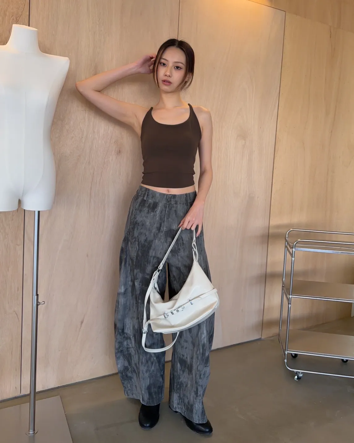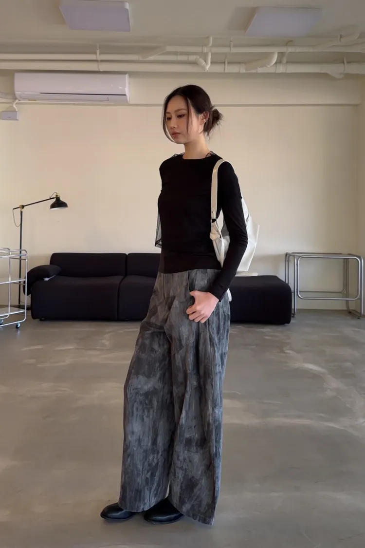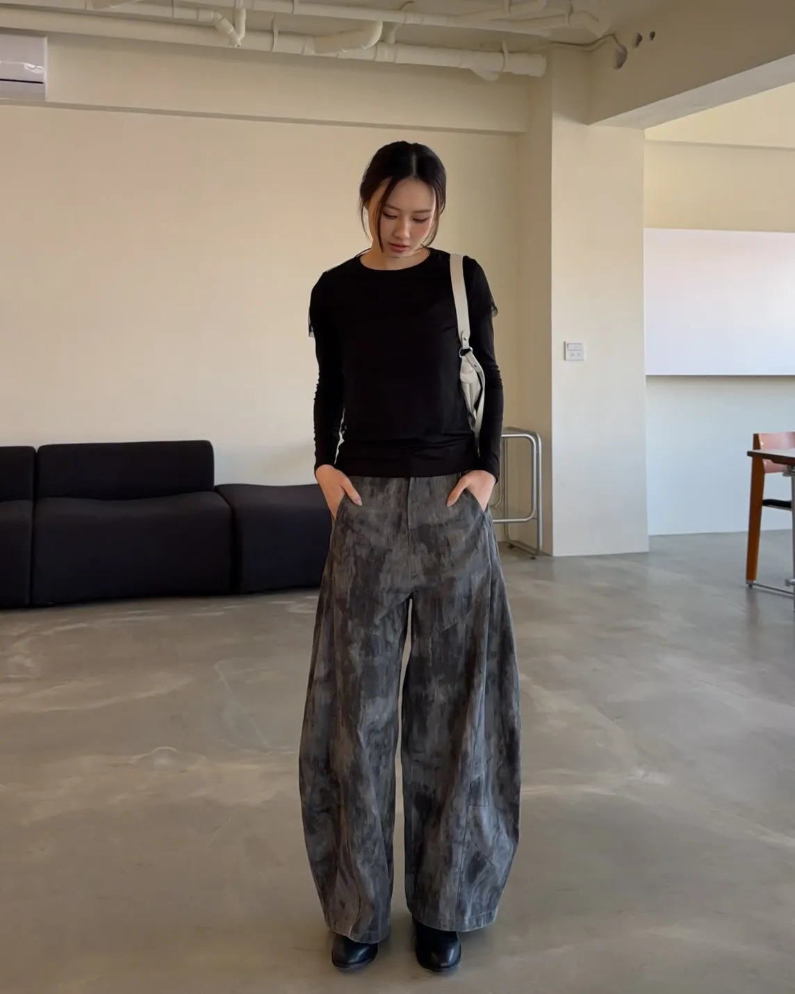 後鬆緊 建議尺寸S-小L 兩側口袋 粉刷感墨彩暈染 車線設計 彎刀版型 布料本身無彈性