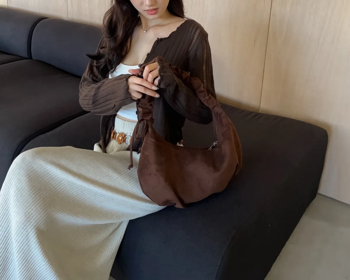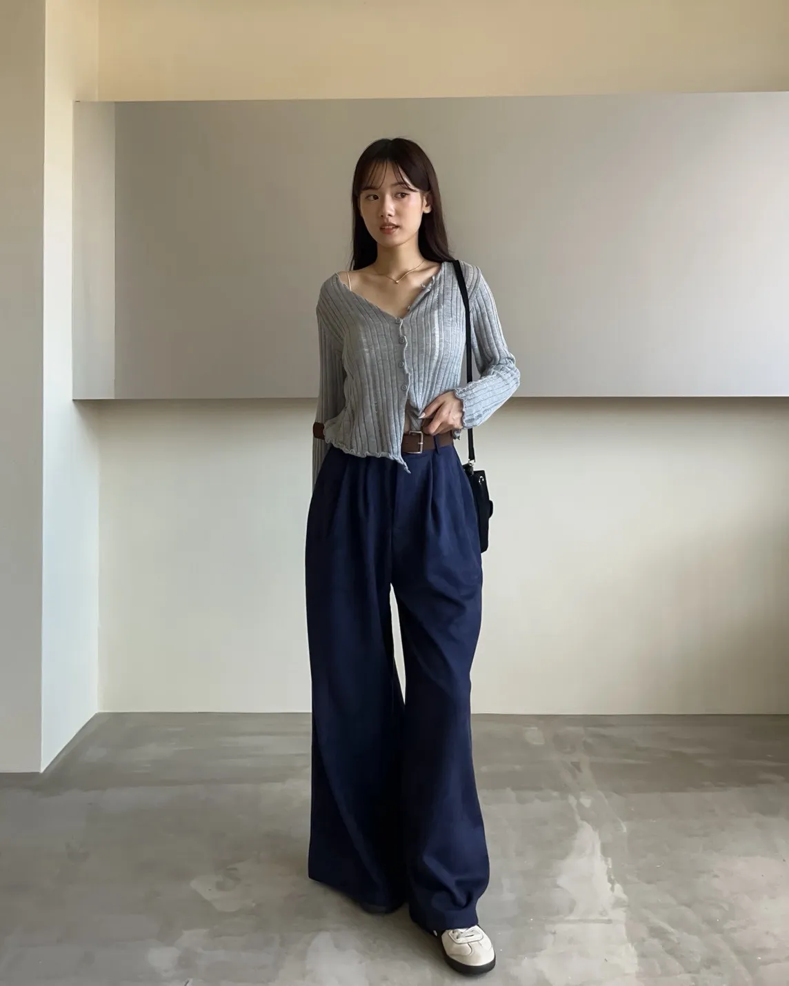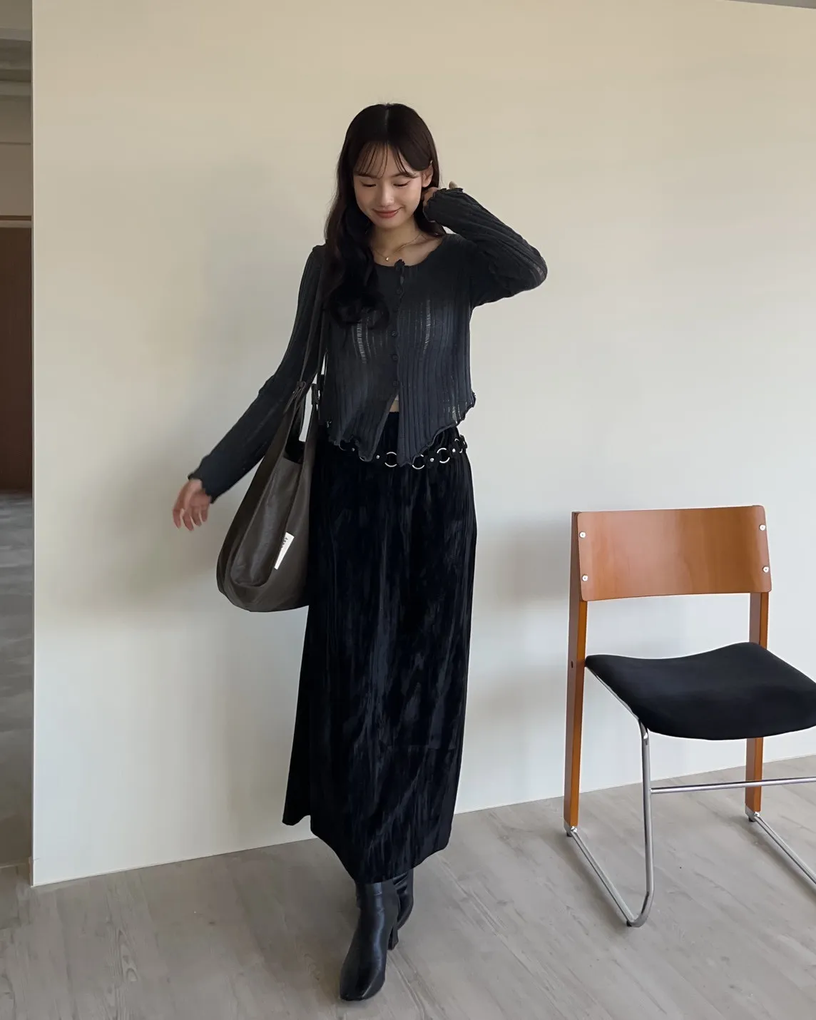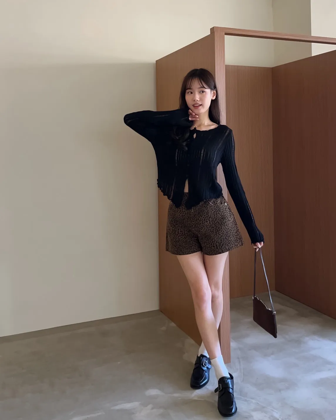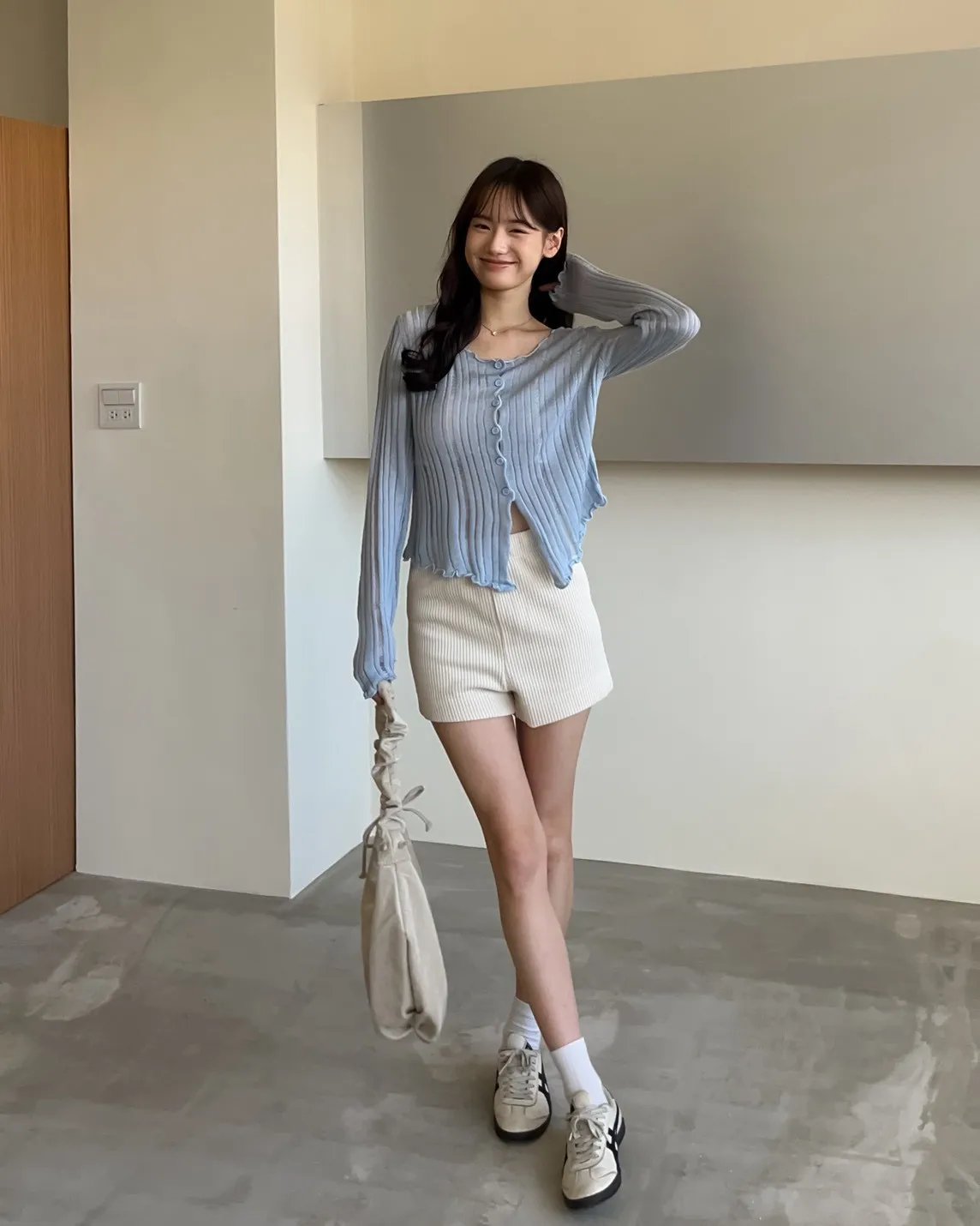 V0065(六色)鏤空排釦捲邊薄針衣(米/咖啡/藍/淺灰/深灰/黑)