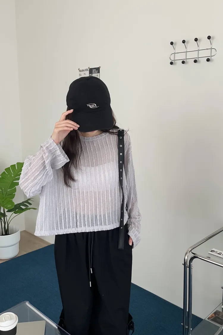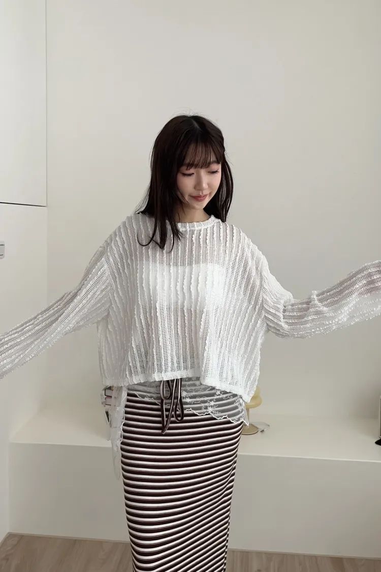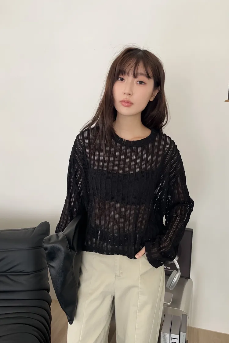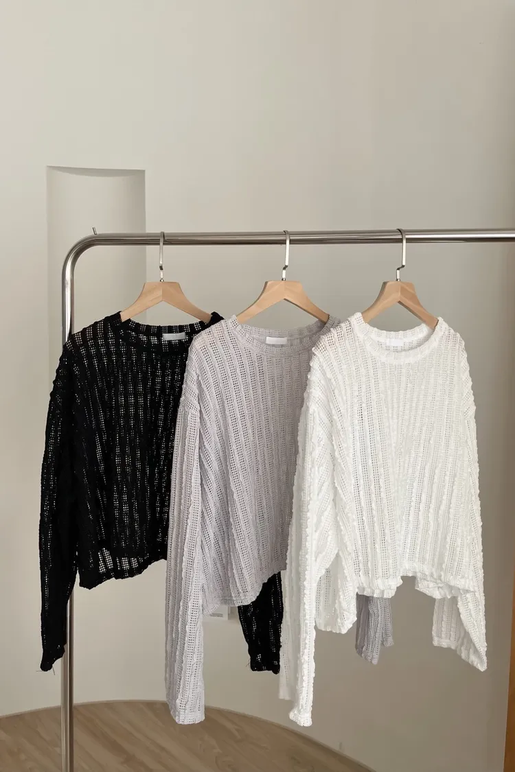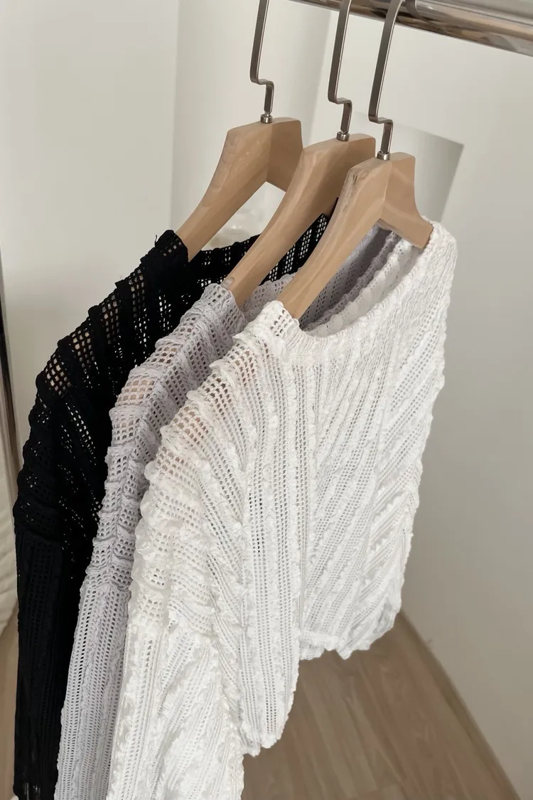 U0013鮮奶油緹花寬版洞洞上衣(白/灰/黑)