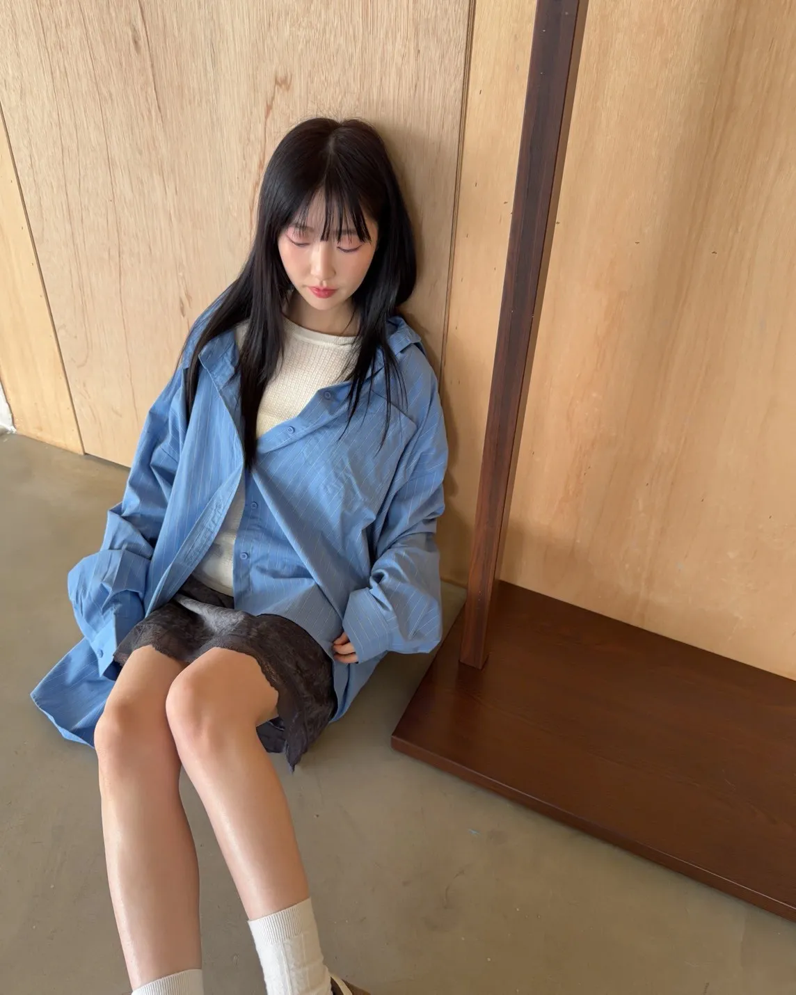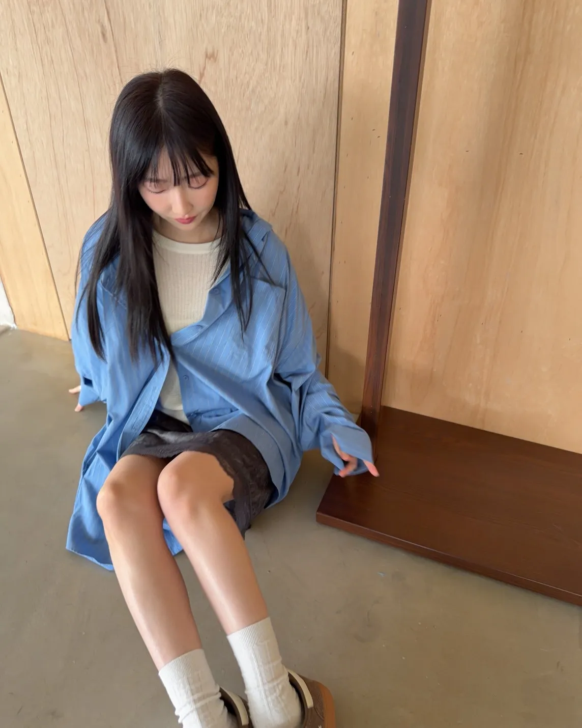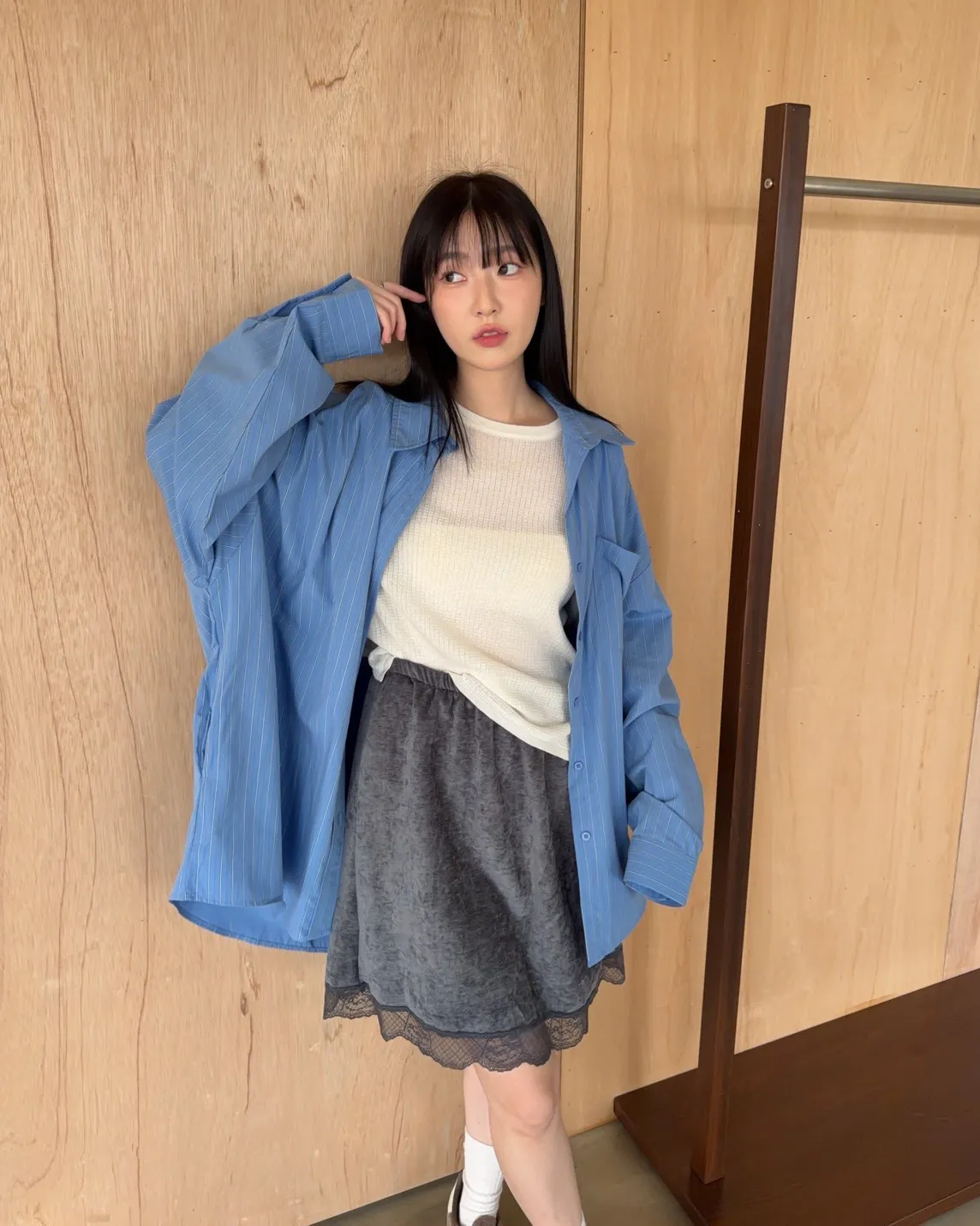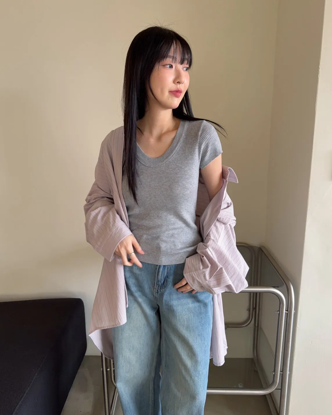 A0030簡約有口袋直條紋寬鬆襯衫(杏/粉紫/藍)