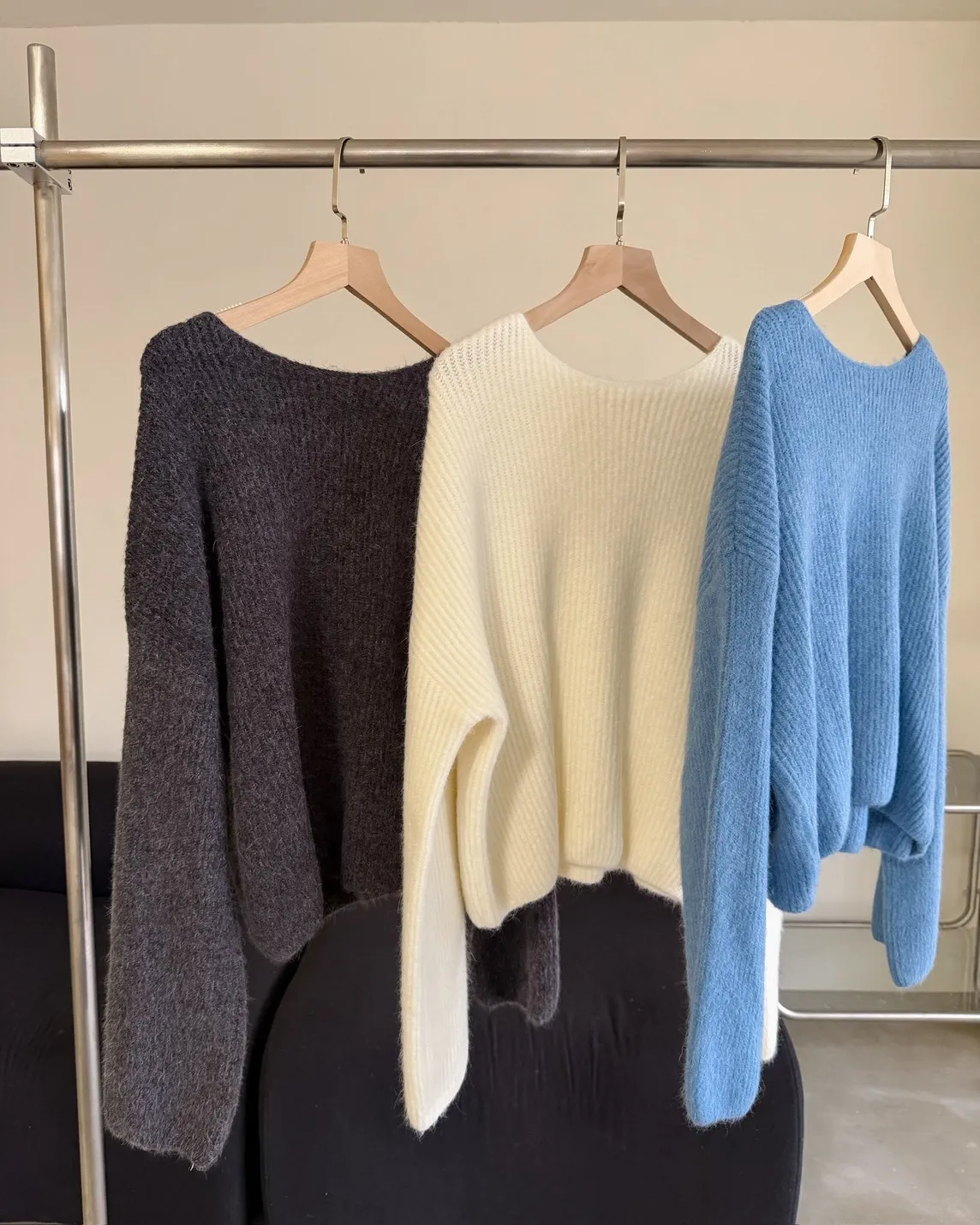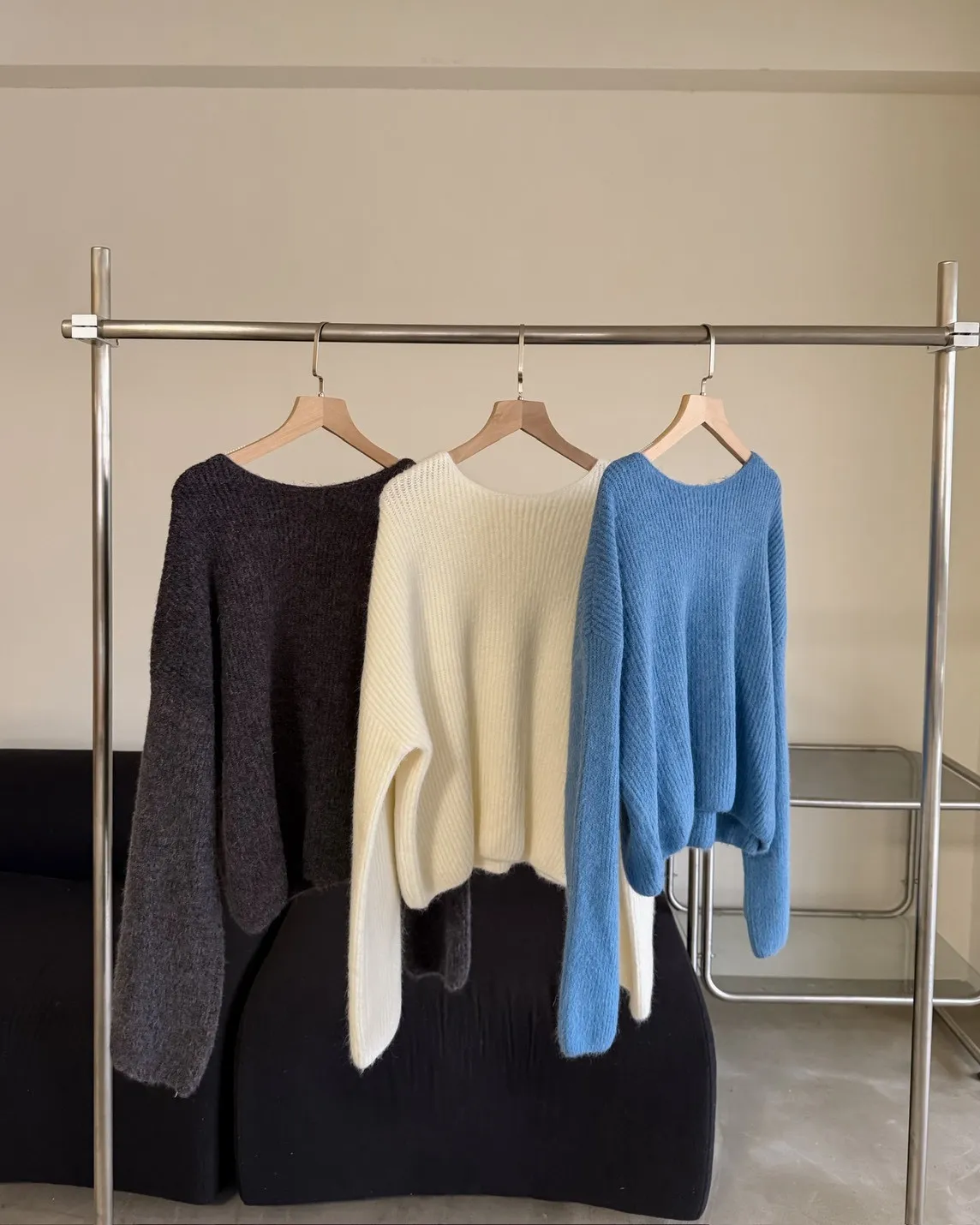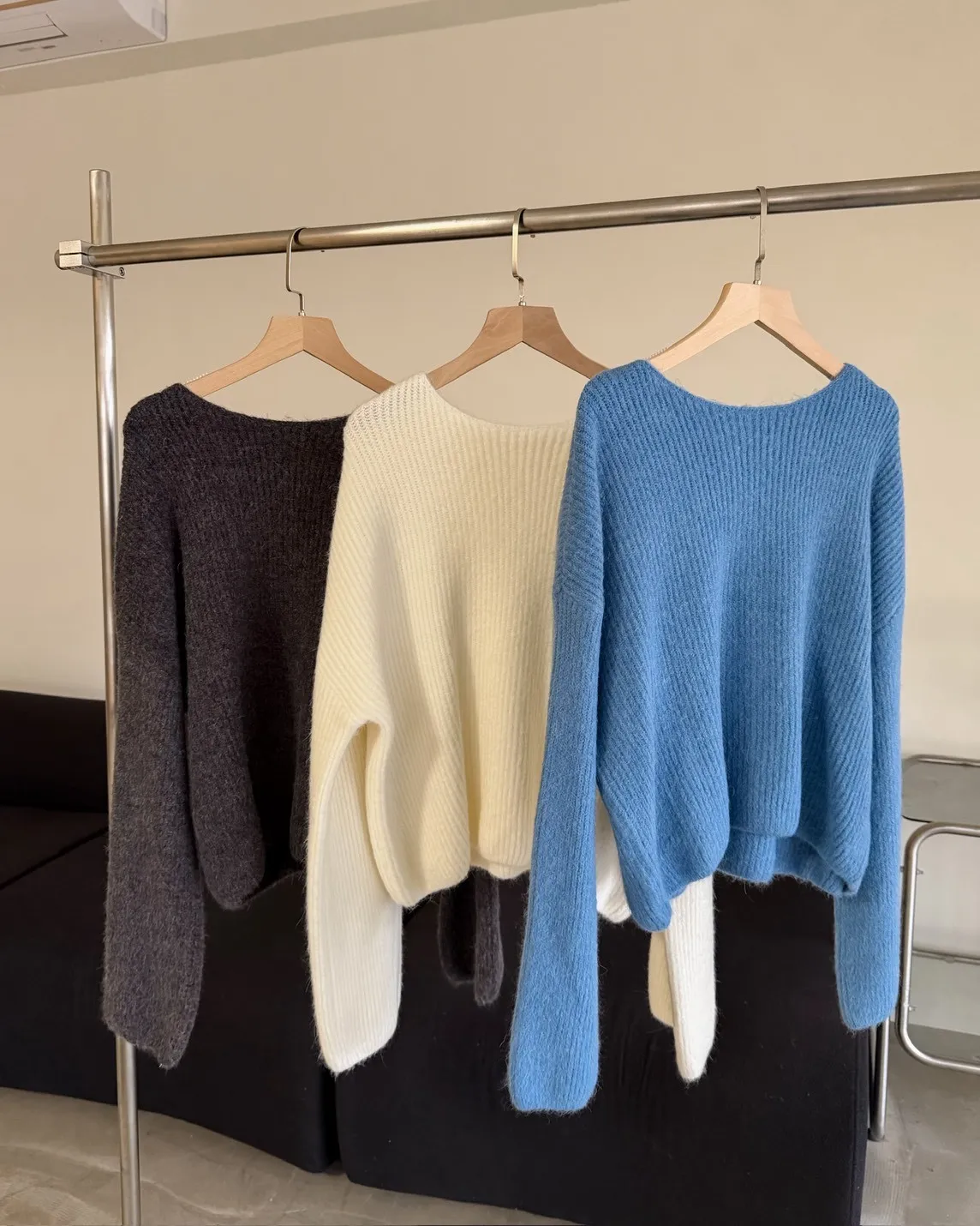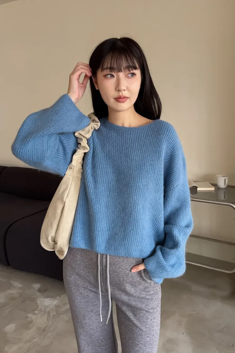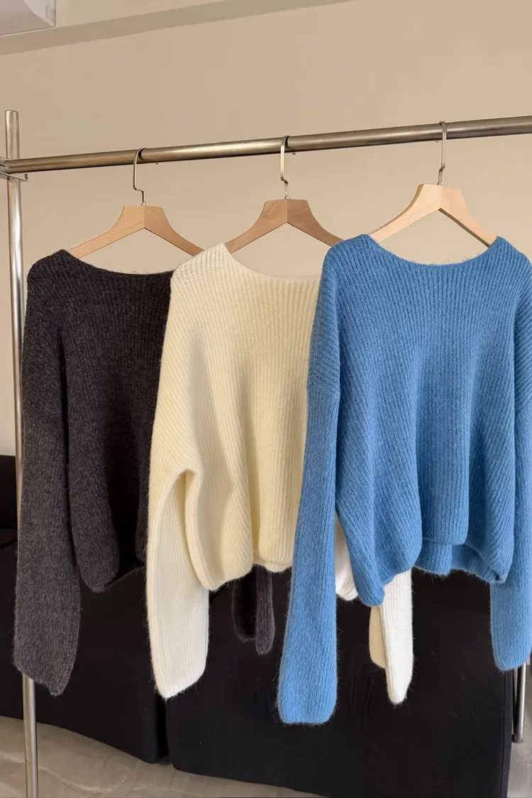 Y0020軟糯親膚小船領毛衣(米白/藍/深灰)