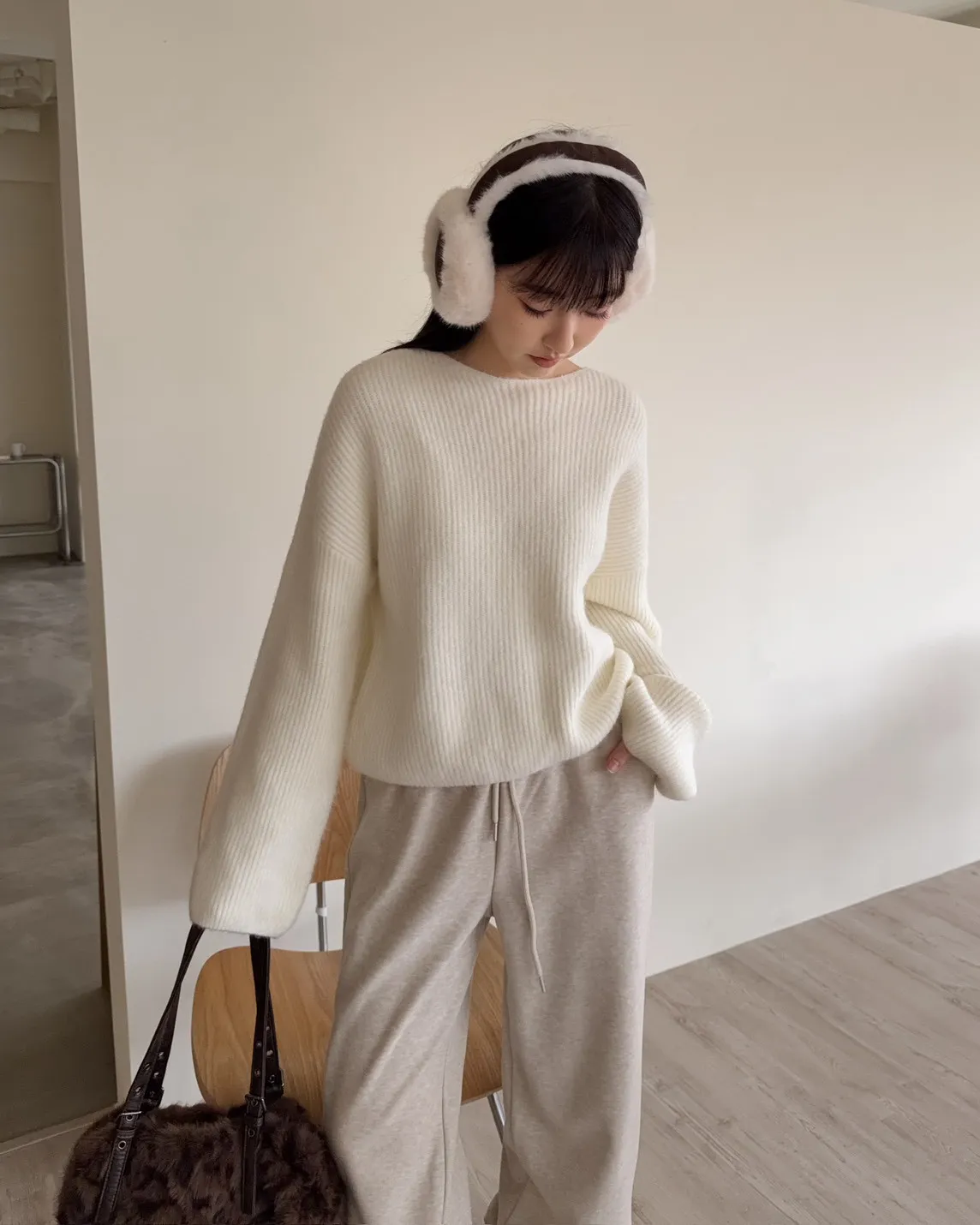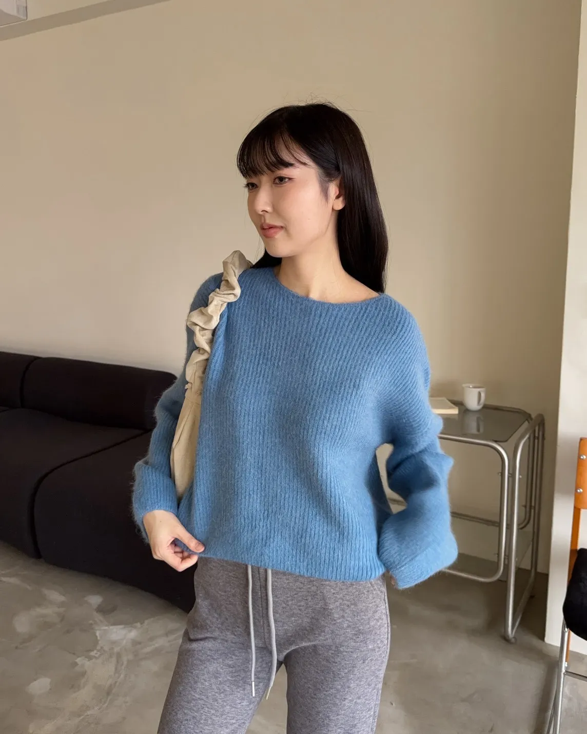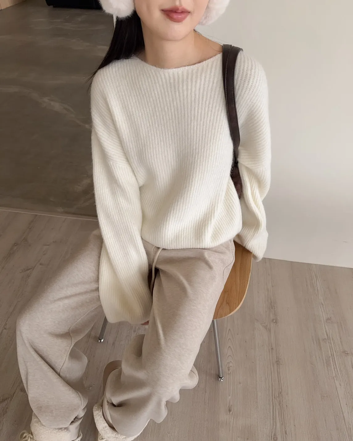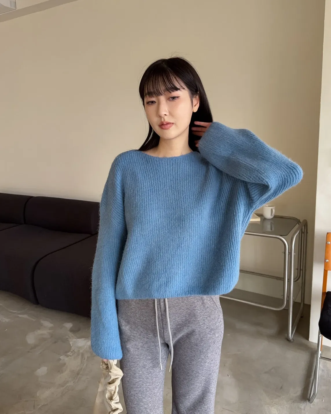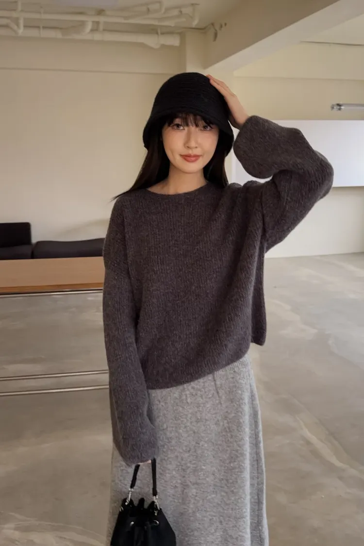 Y0020軟糯親膚小船領毛衣(米白/藍/深灰)