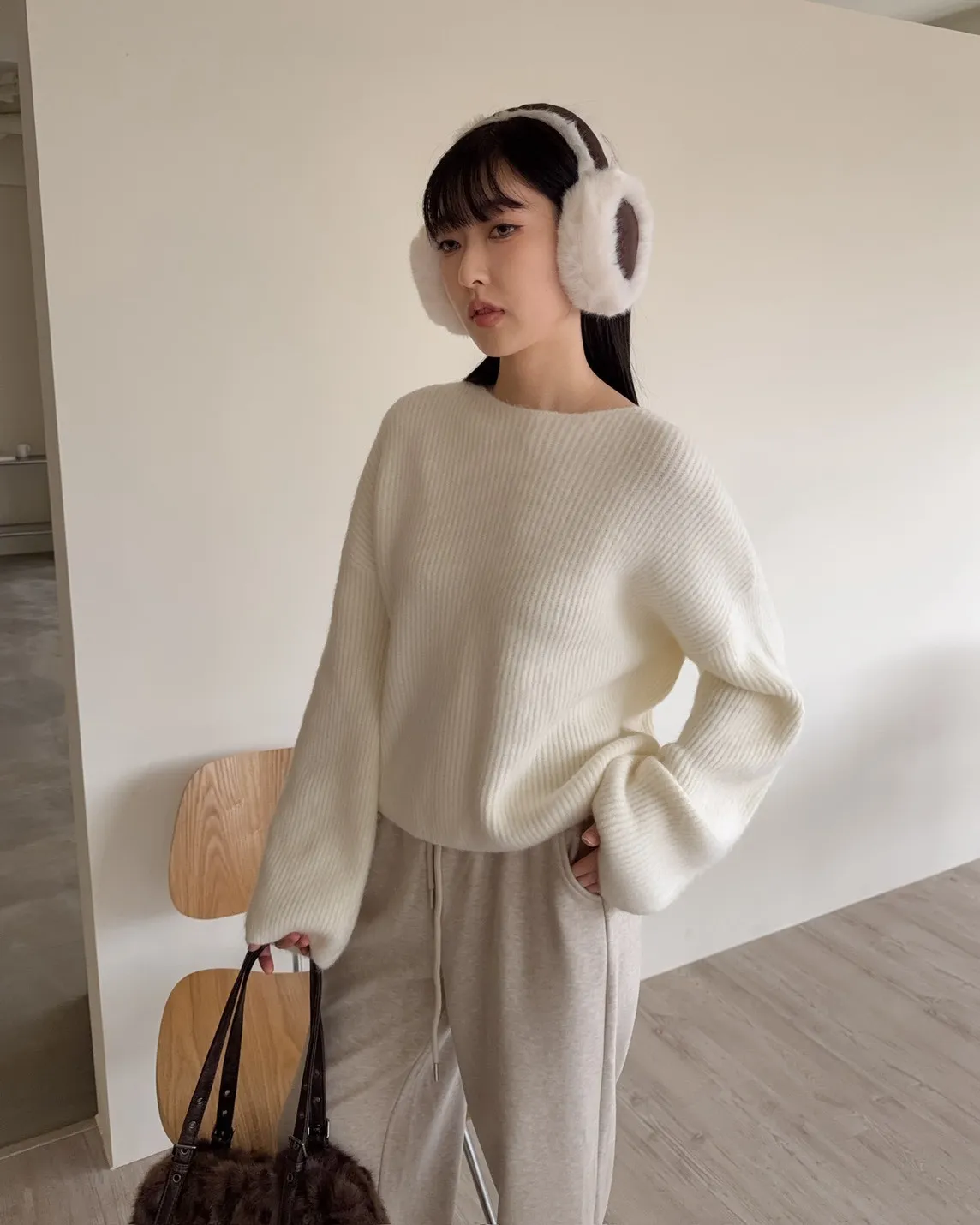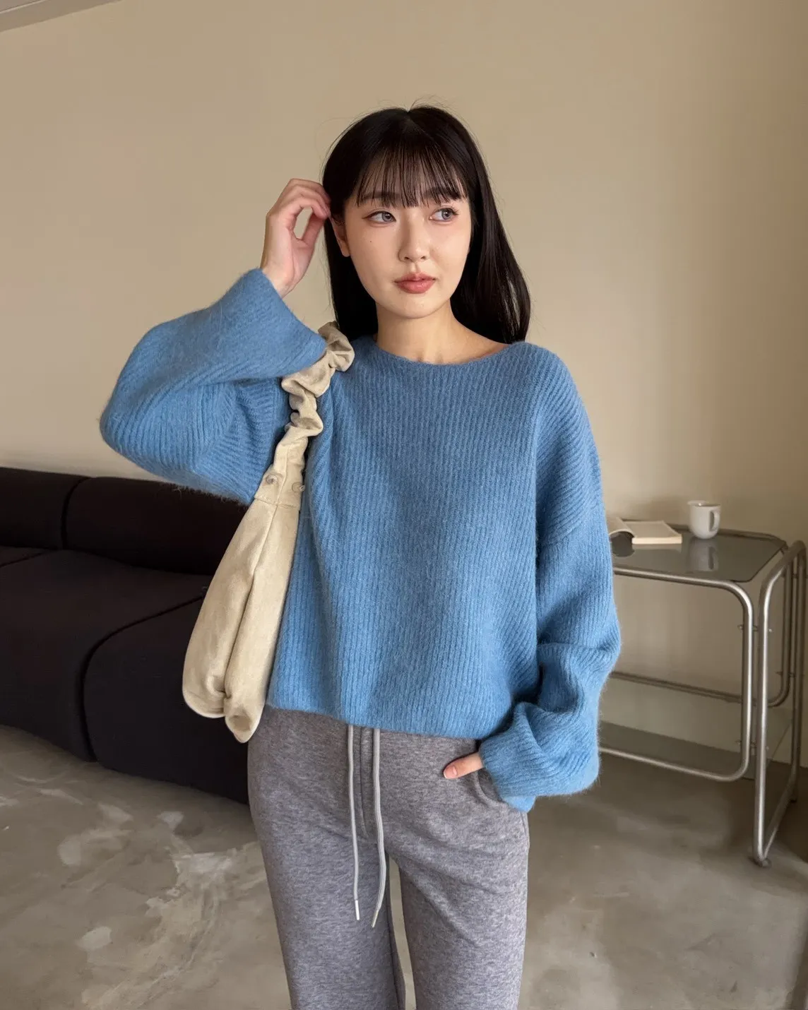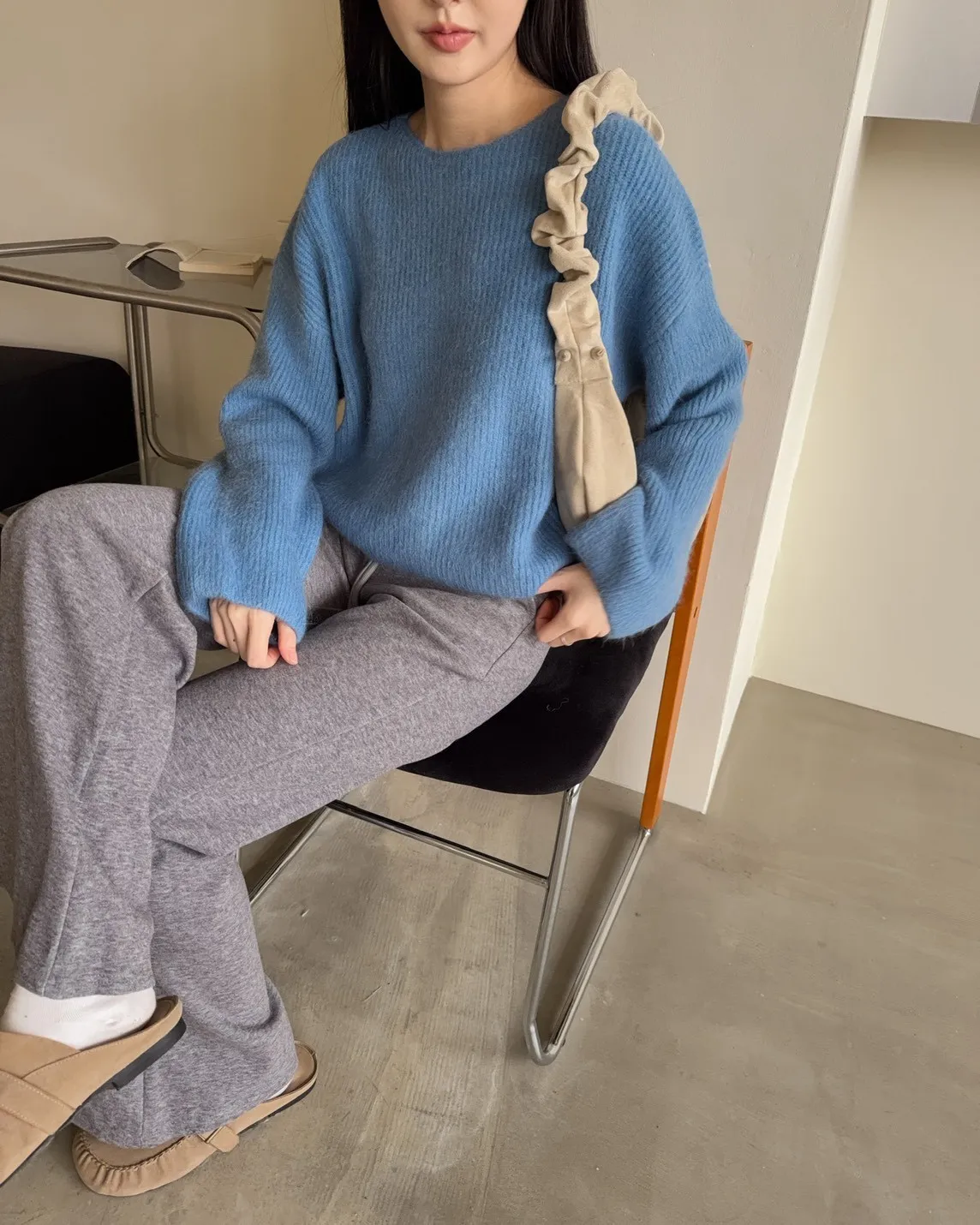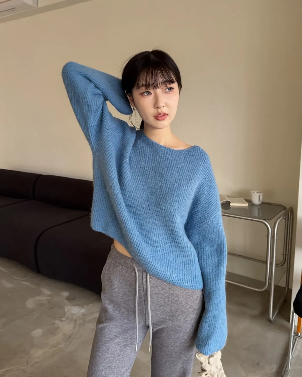 Y0020軟糯親膚小船領毛衣(米白/藍/深灰)