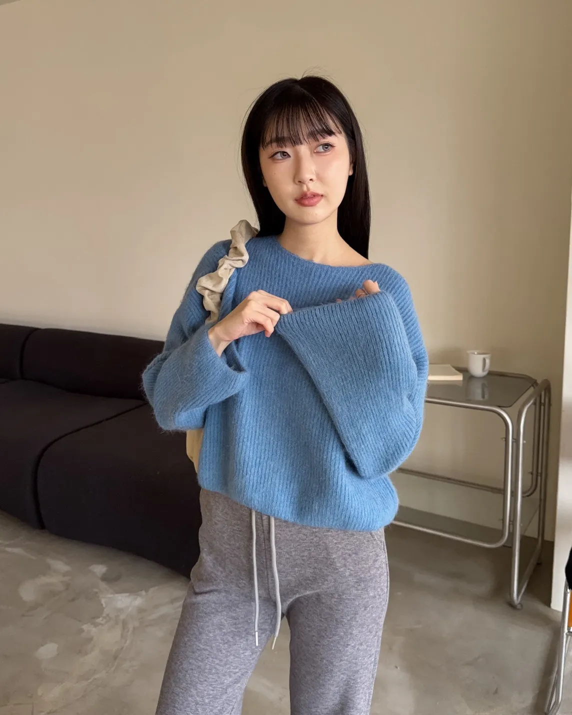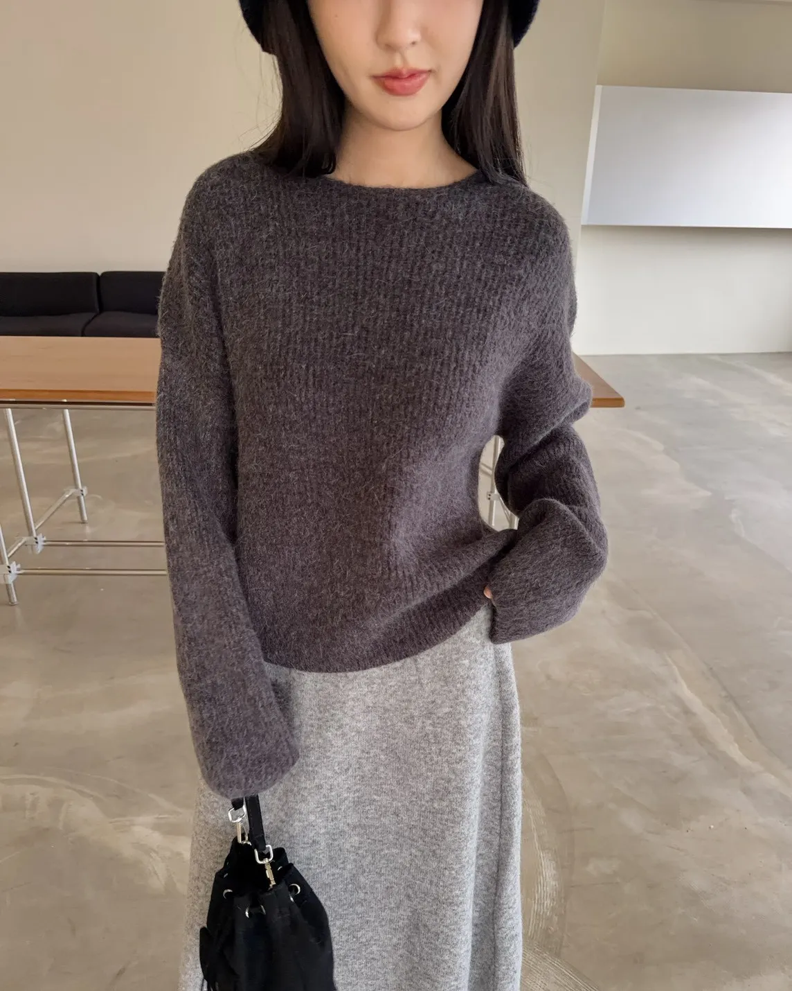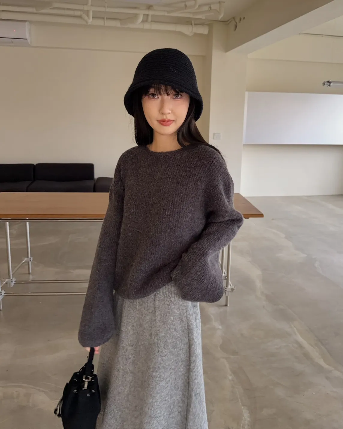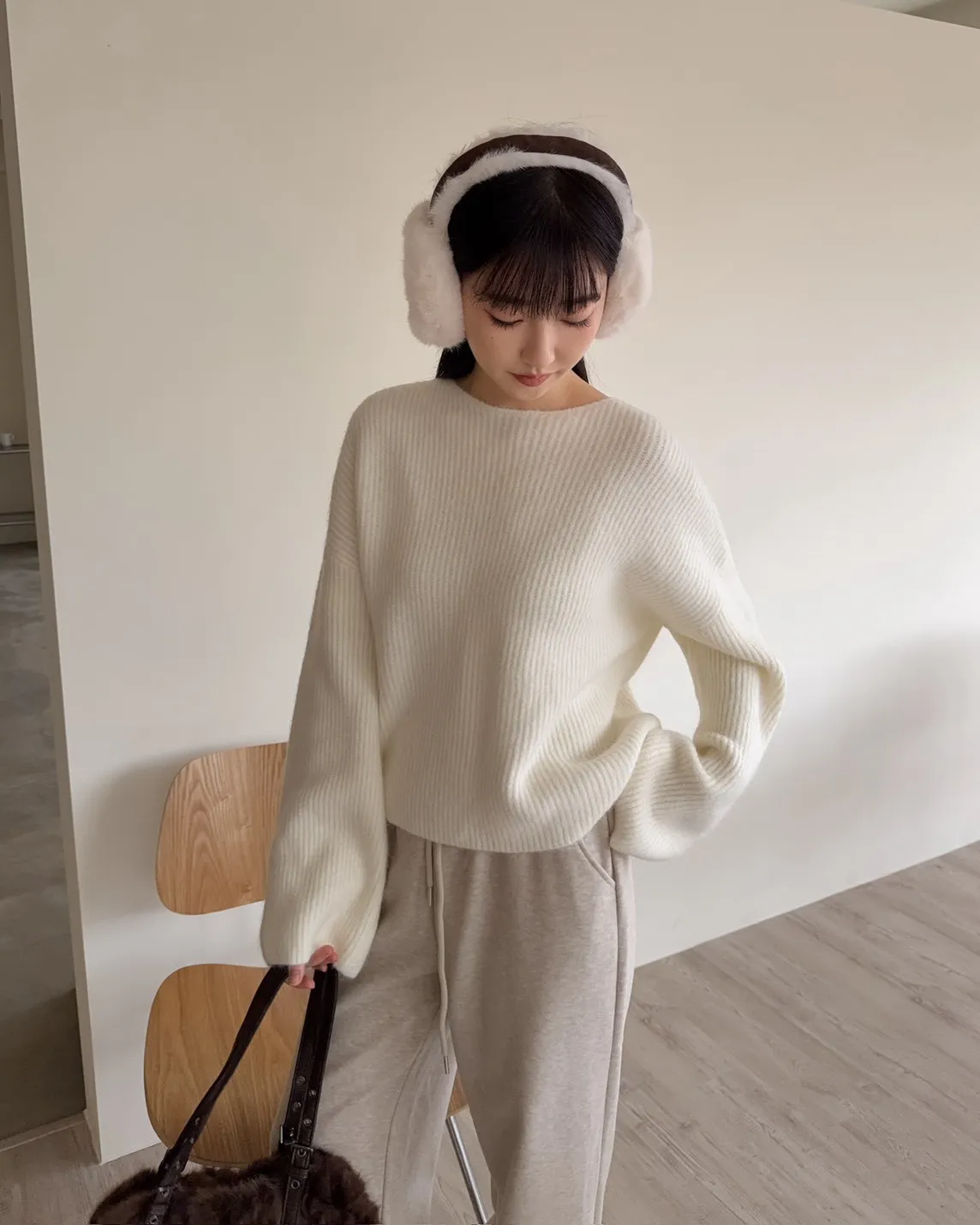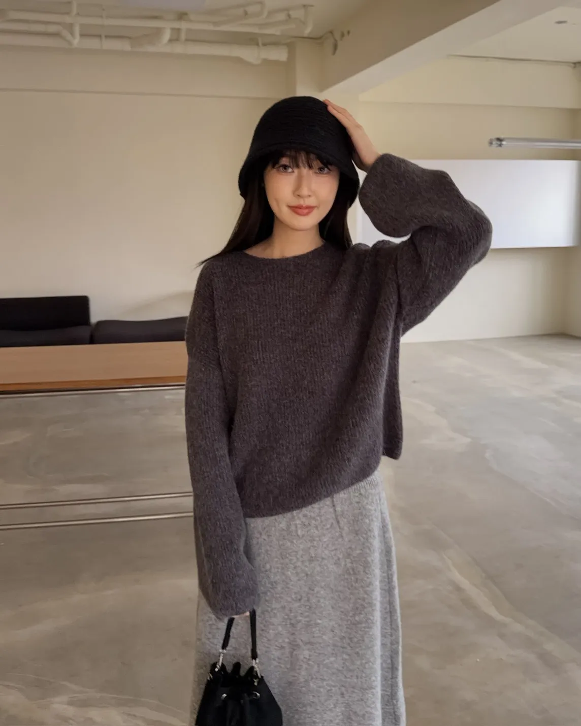 Y0020軟糯親膚小船領毛衣(米白/藍/深灰)