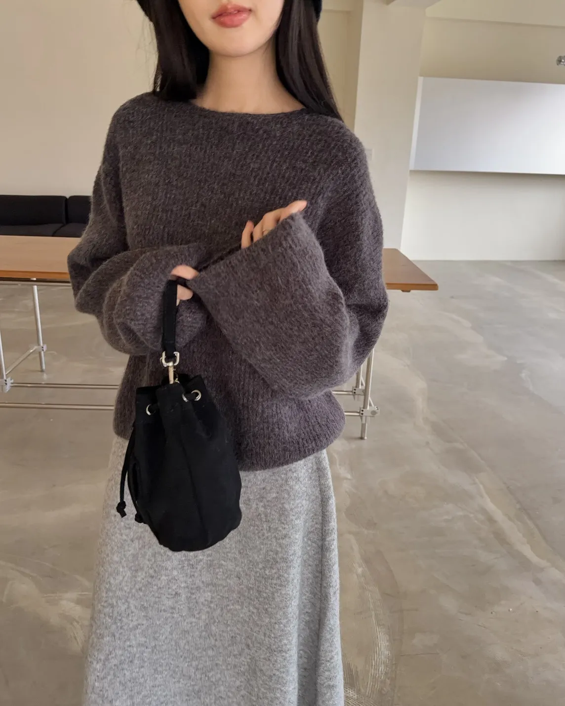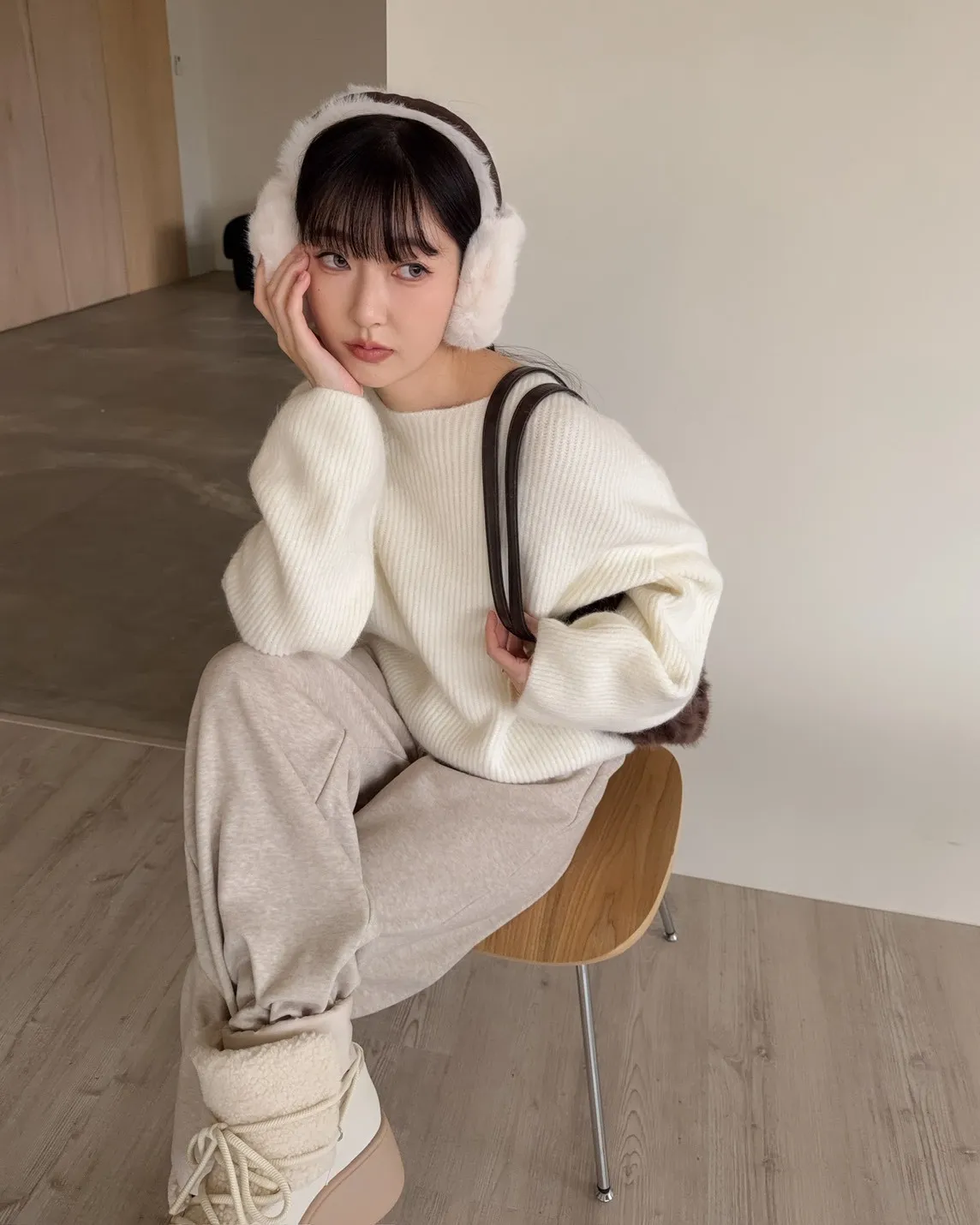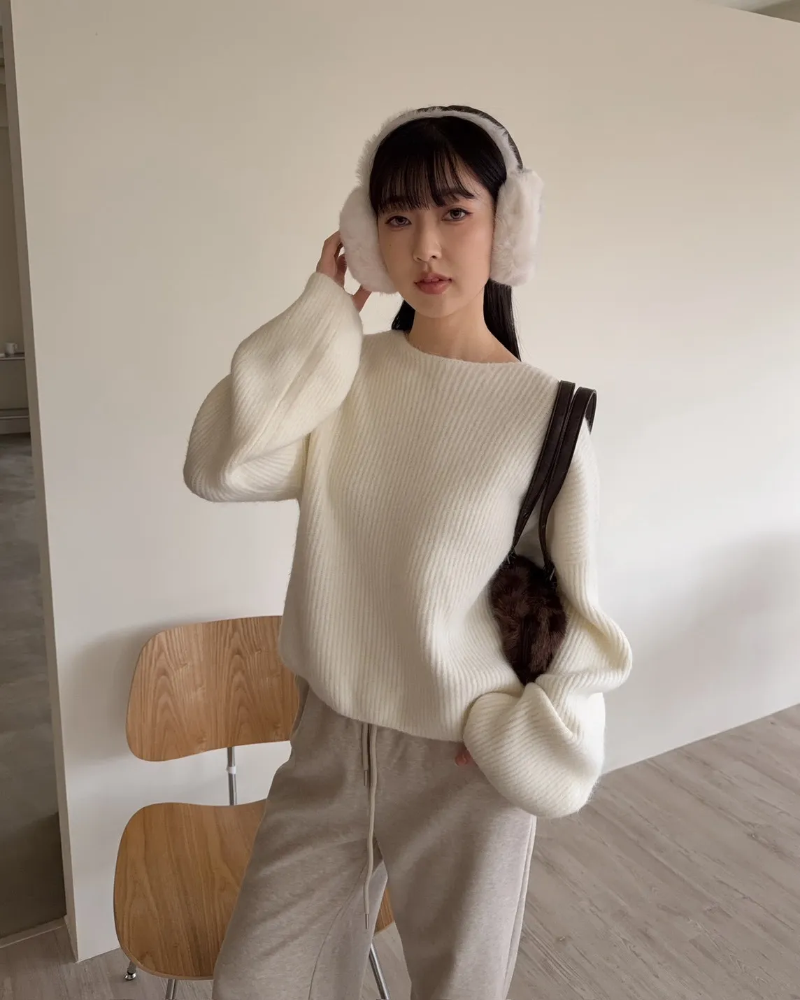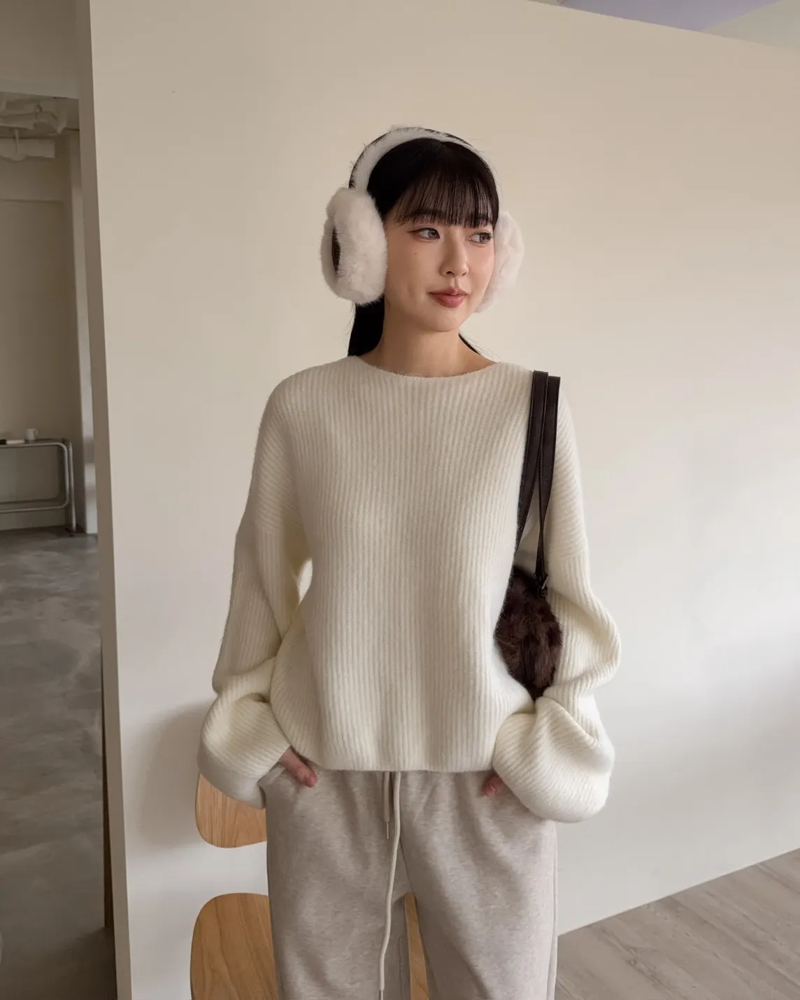 Y0020軟糯親膚小船領毛衣(米白/藍/深灰)