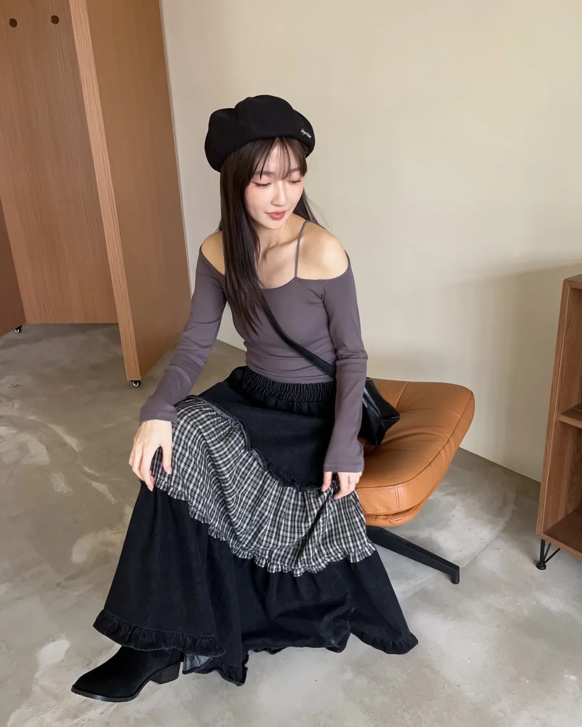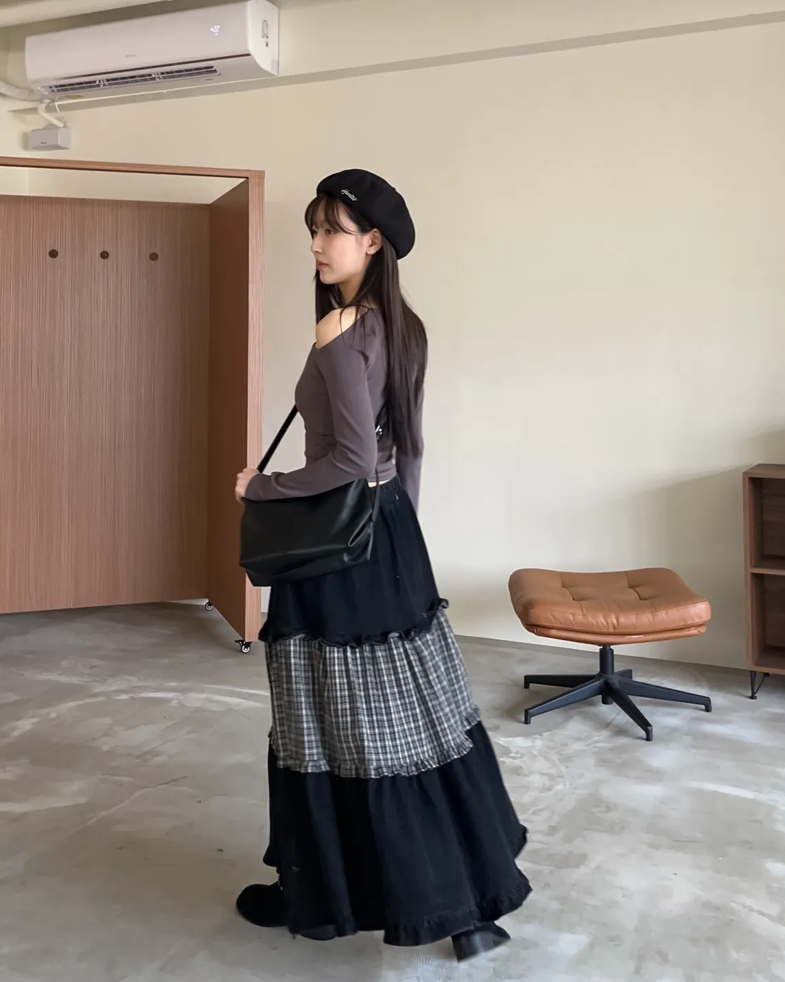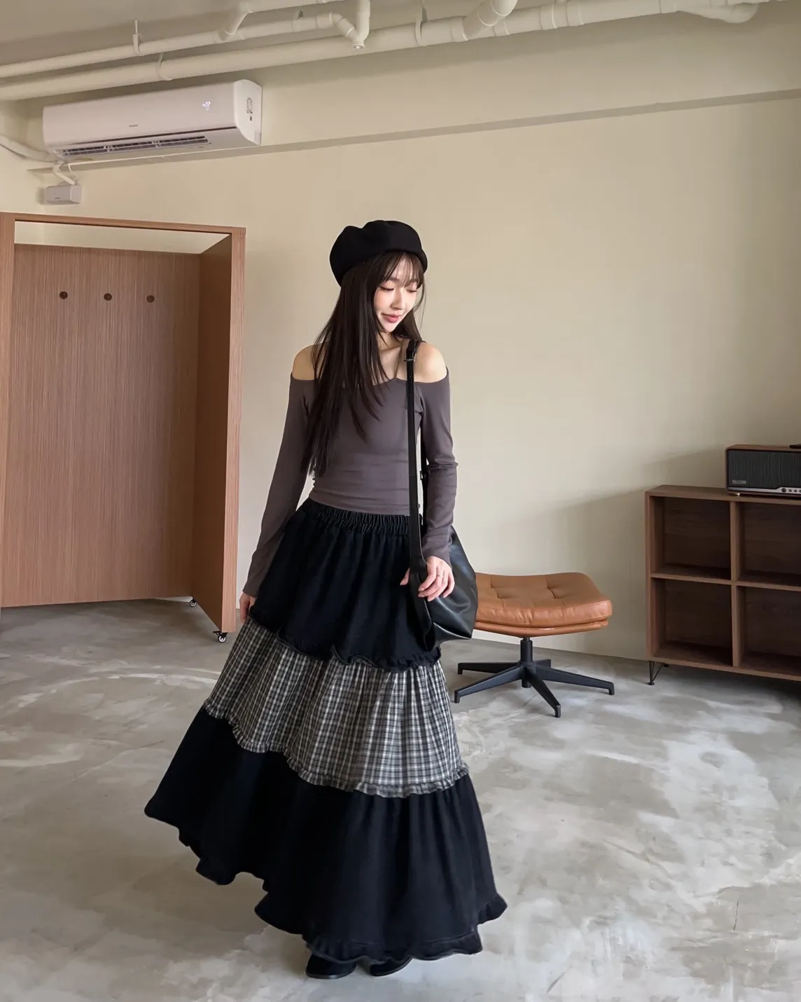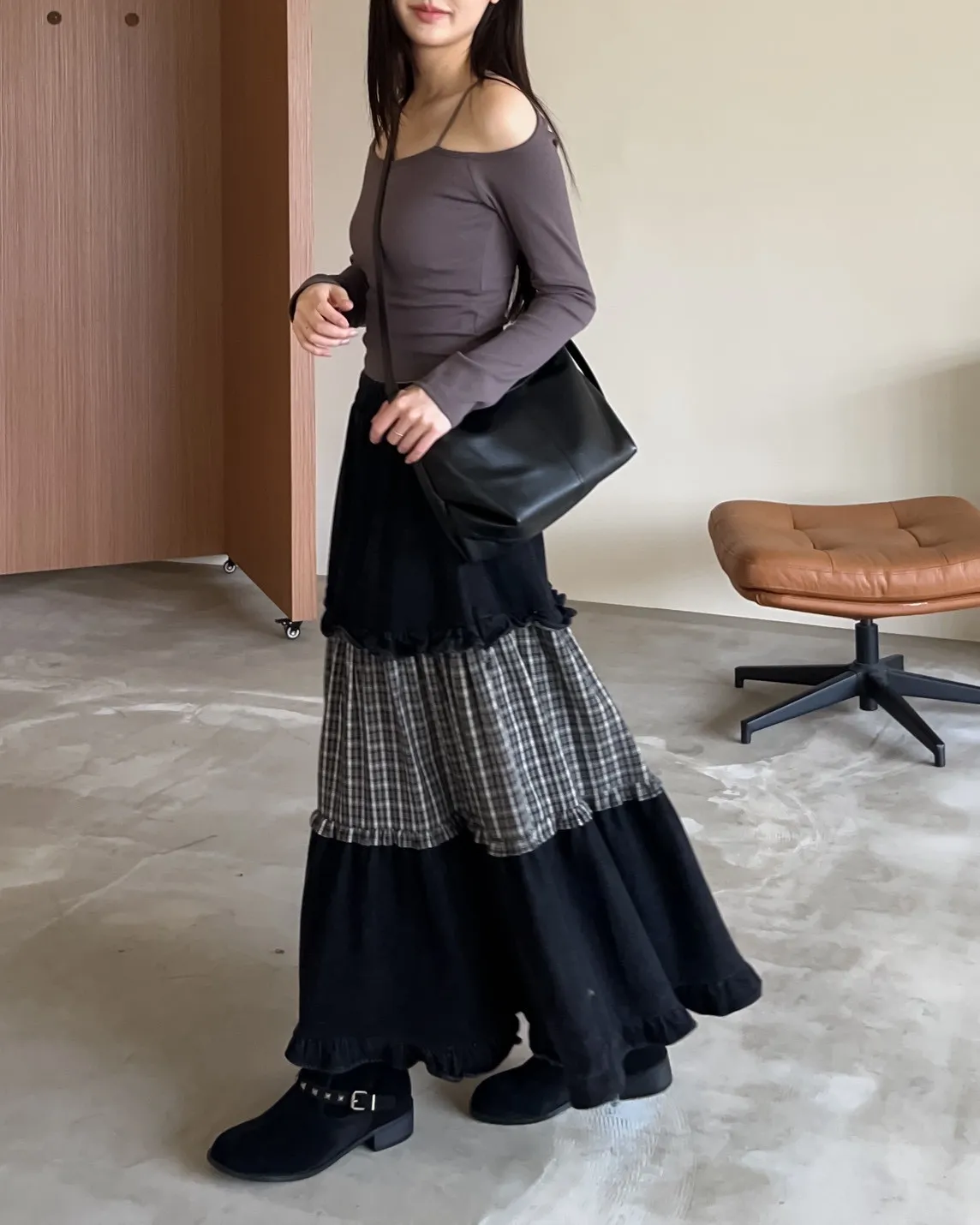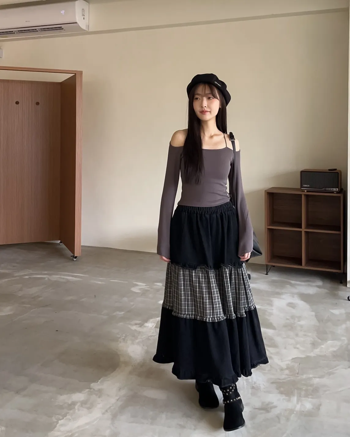 W0020愛麗絲格紋拼接荷葉邊長裙