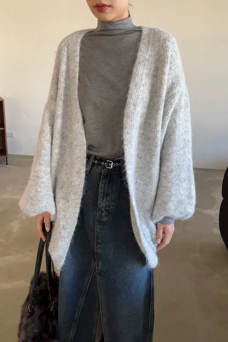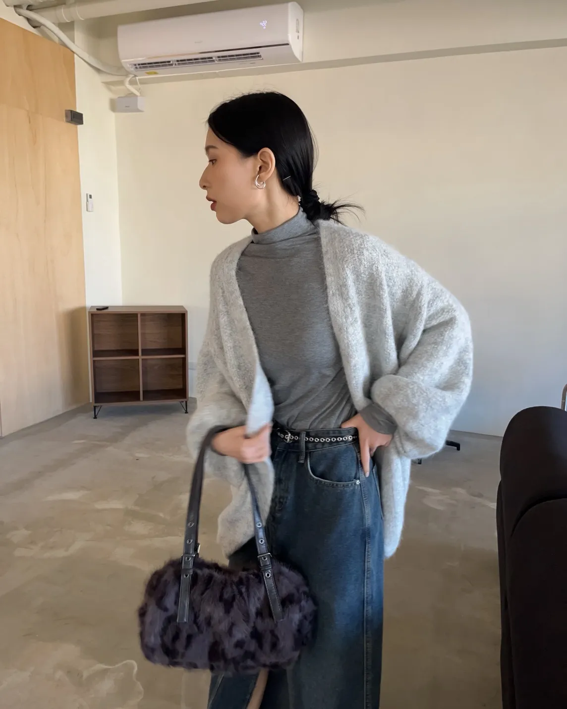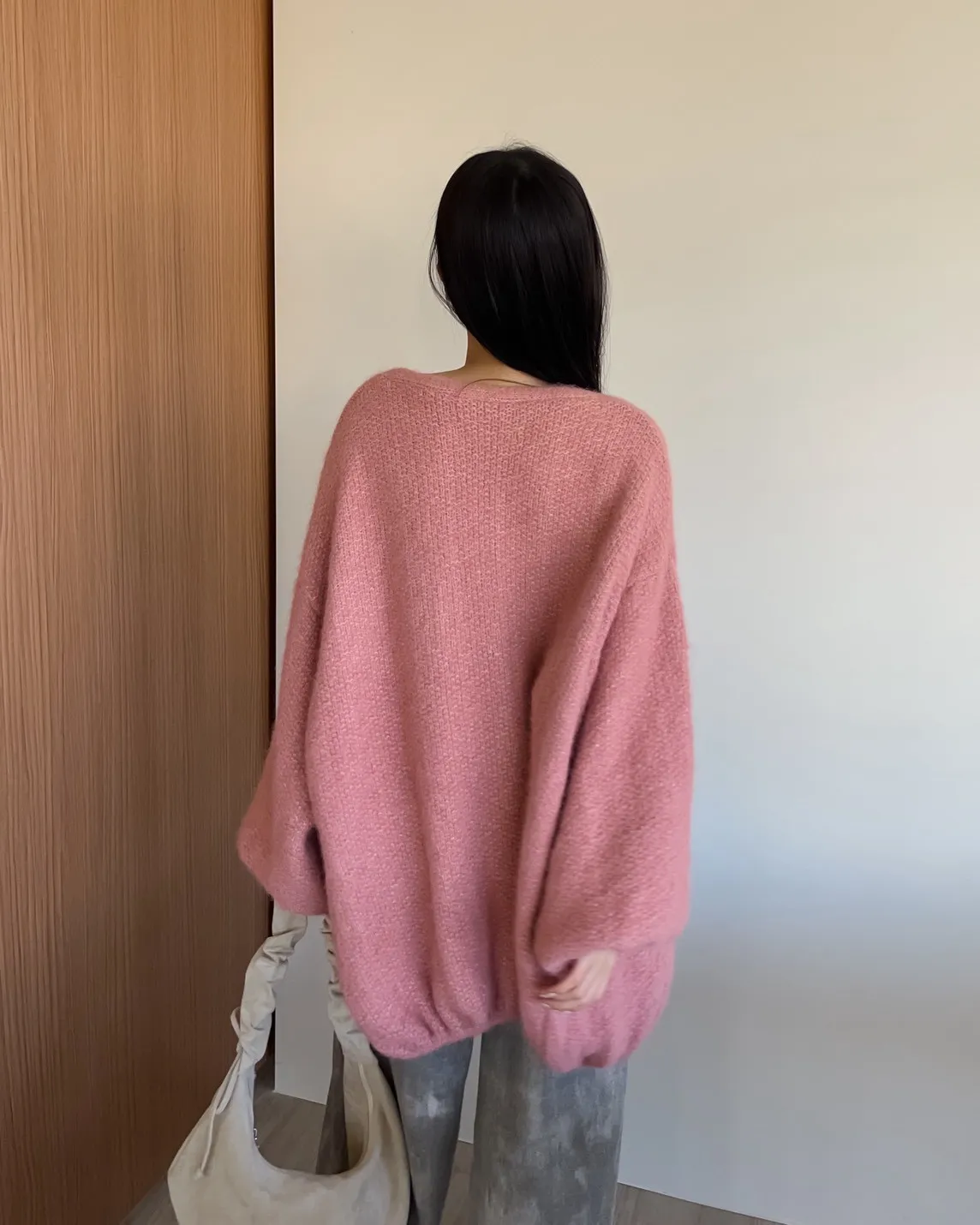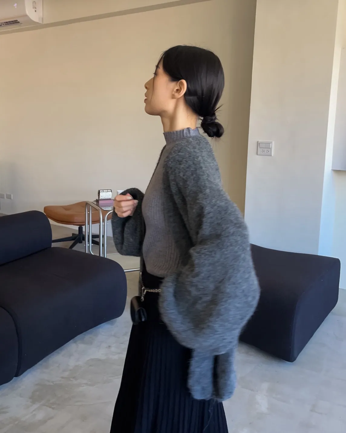 開襟 混毛針織 袖口/下擺可愛內縮 寬鬆落肩