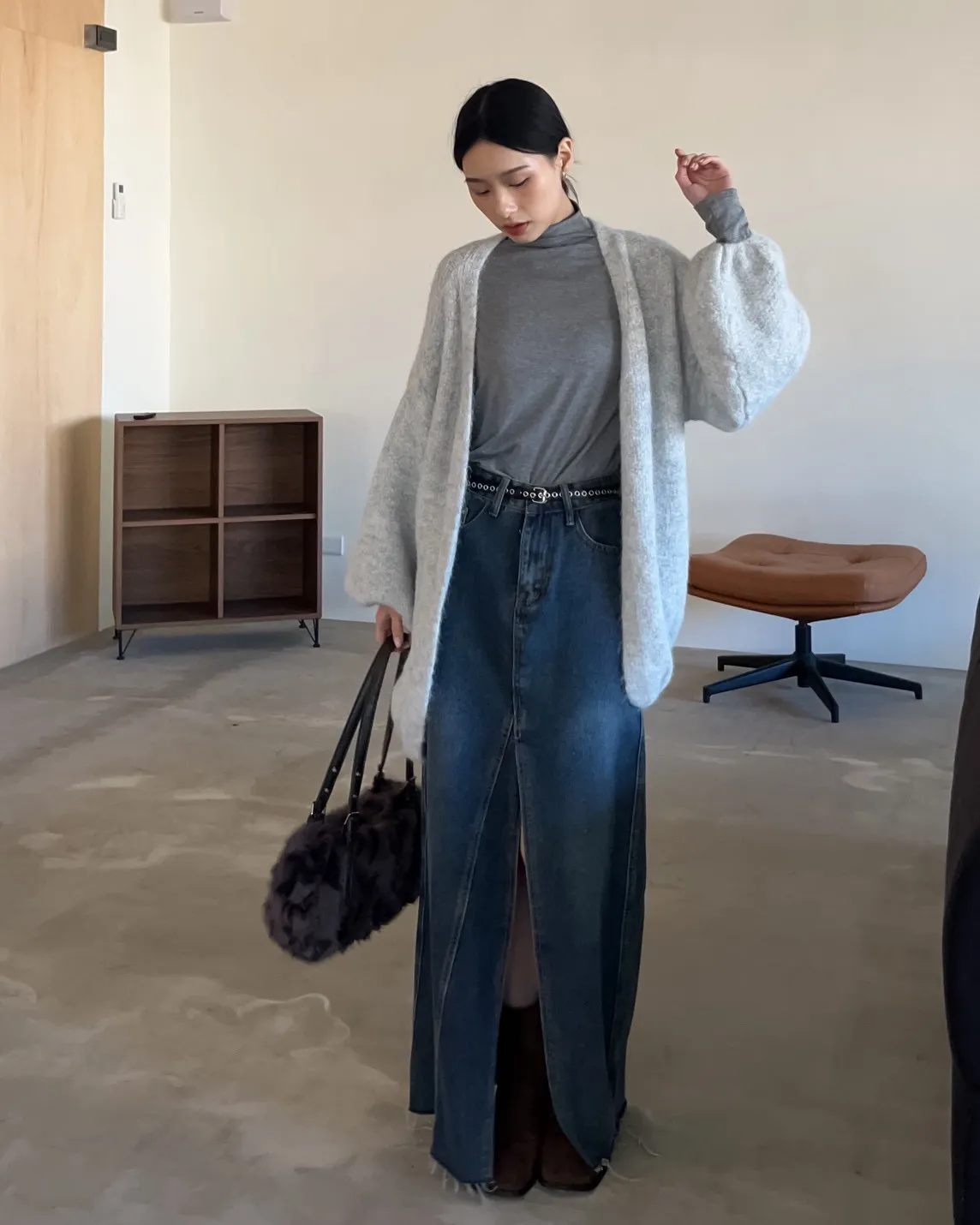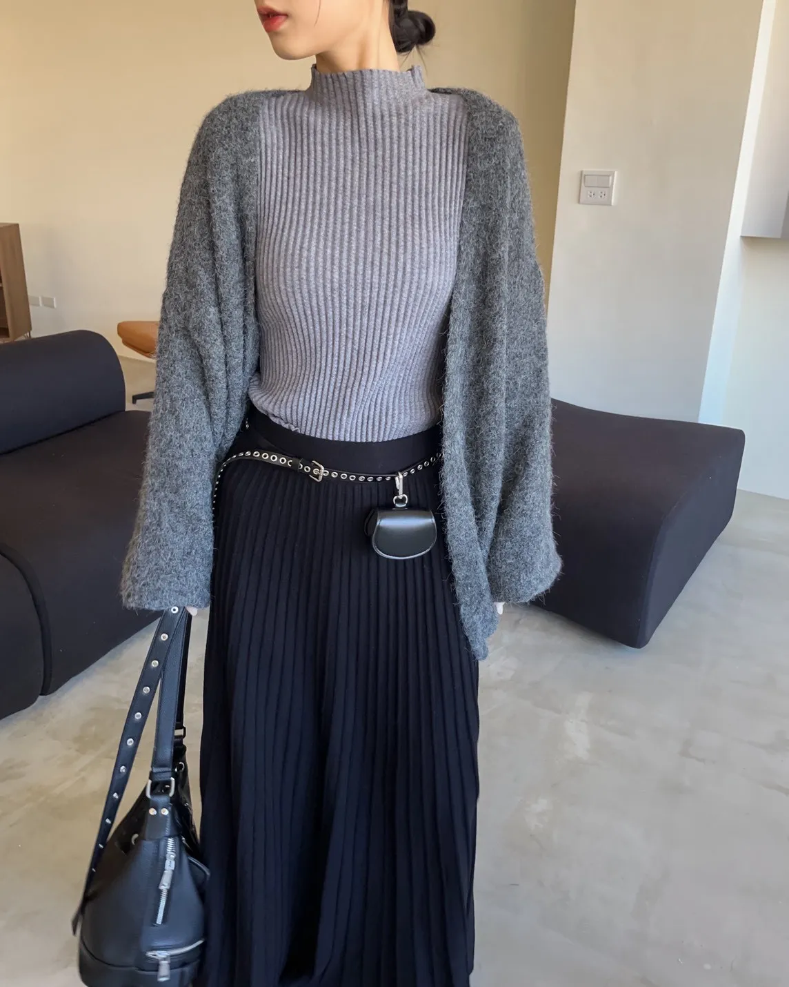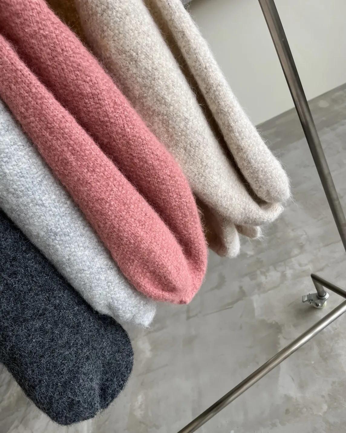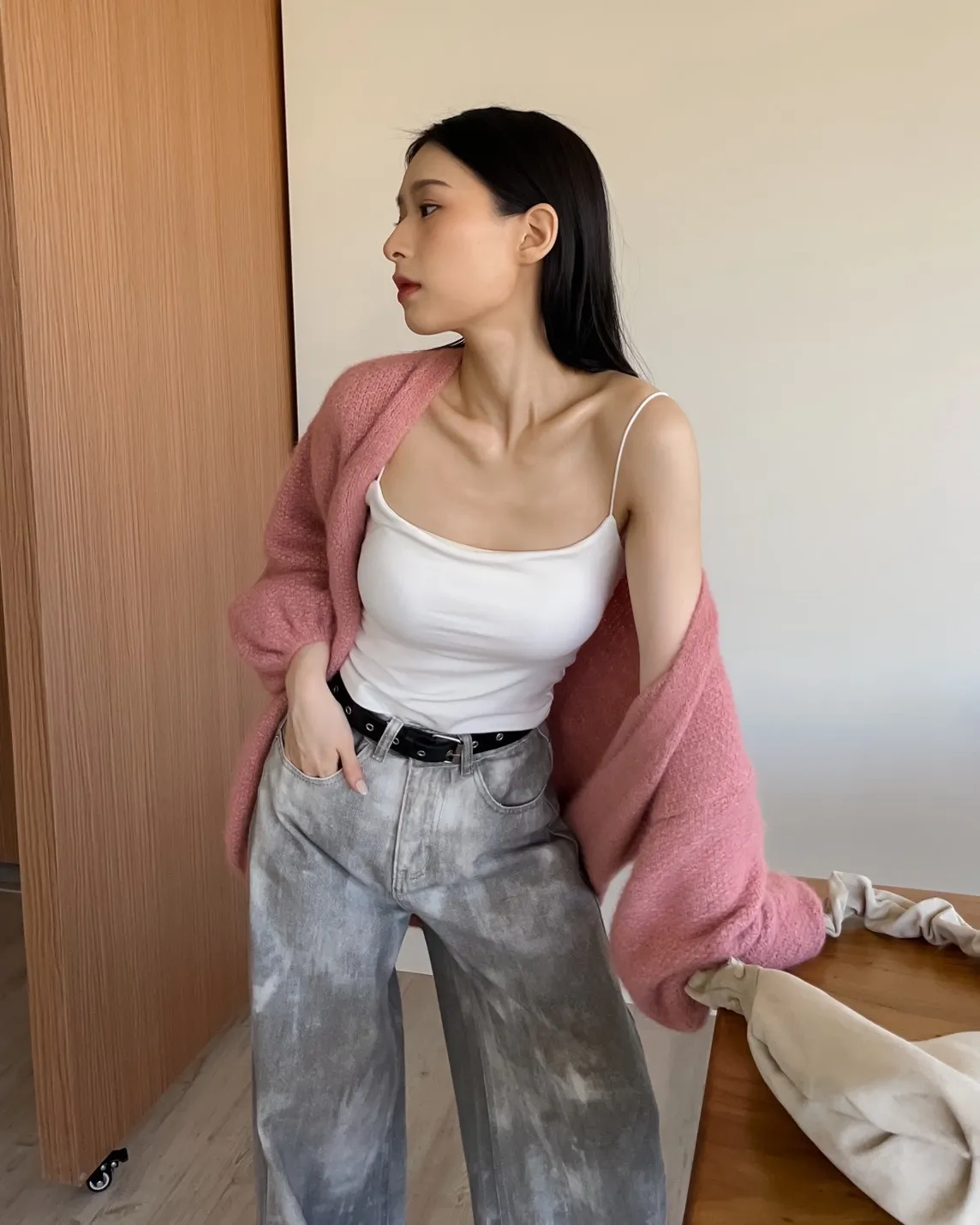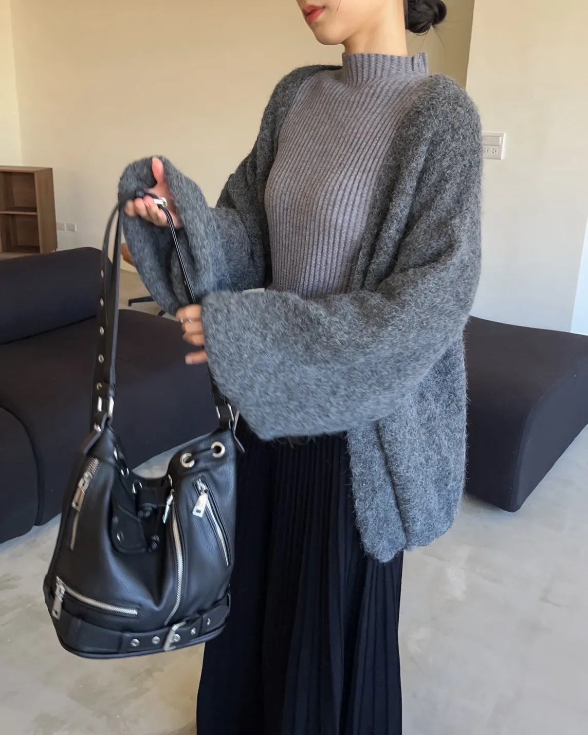 開襟 混毛針織 袖口/下擺可愛內縮 寬鬆落肩