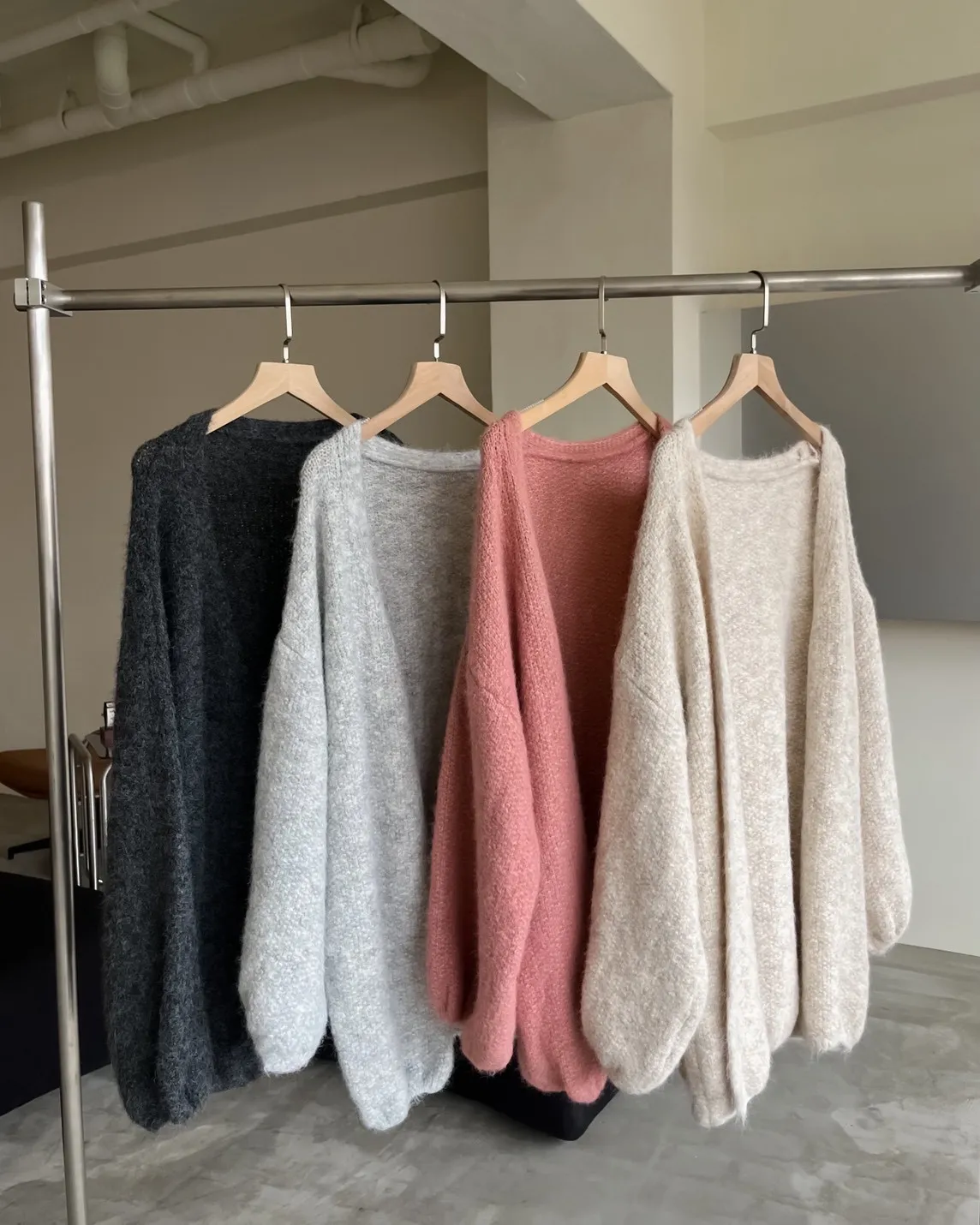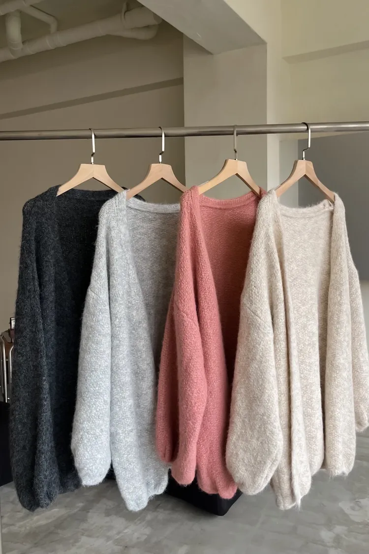 W0025再睡一下軟呼呼開襟外套(杏/粉紅/淺灰/深灰)