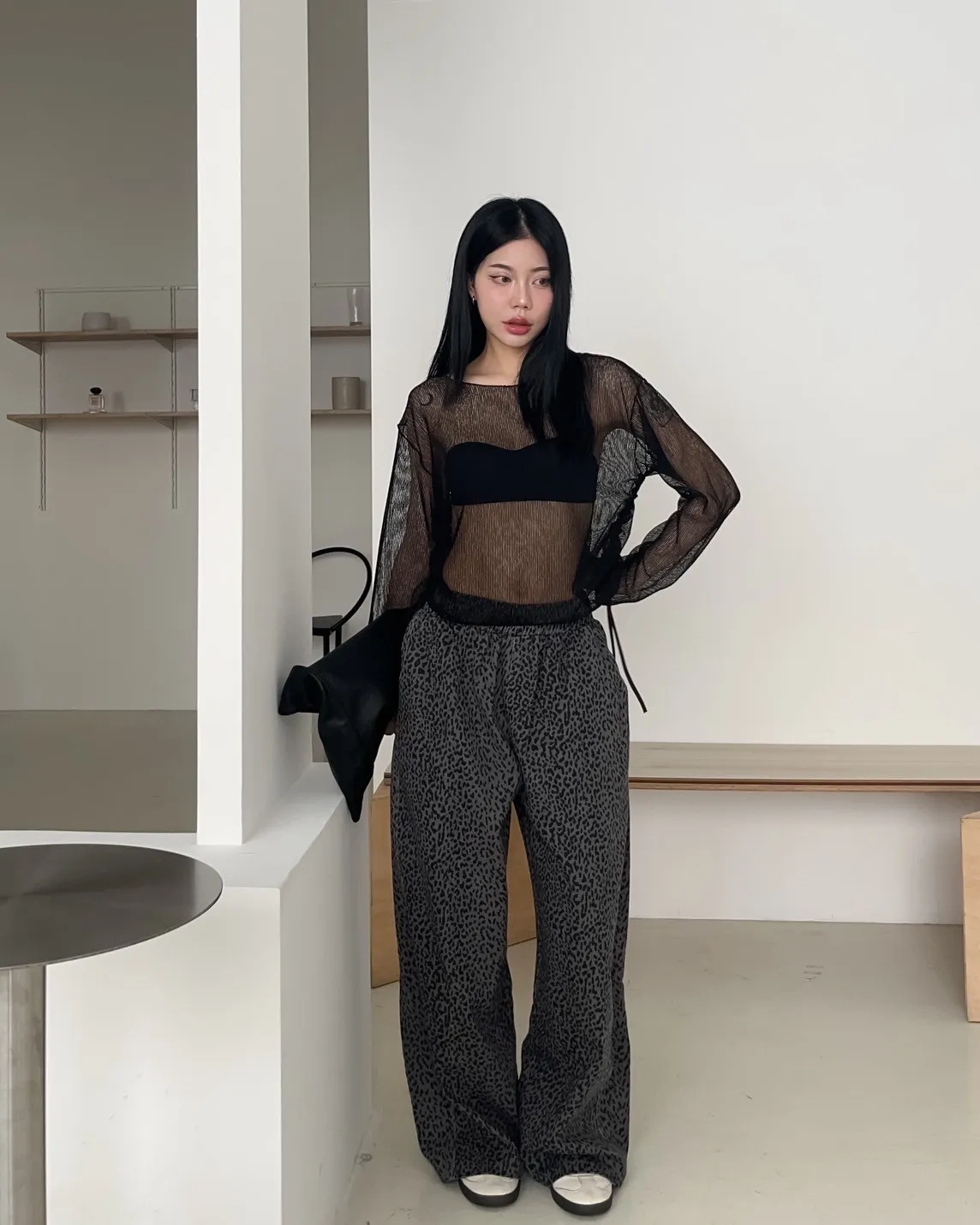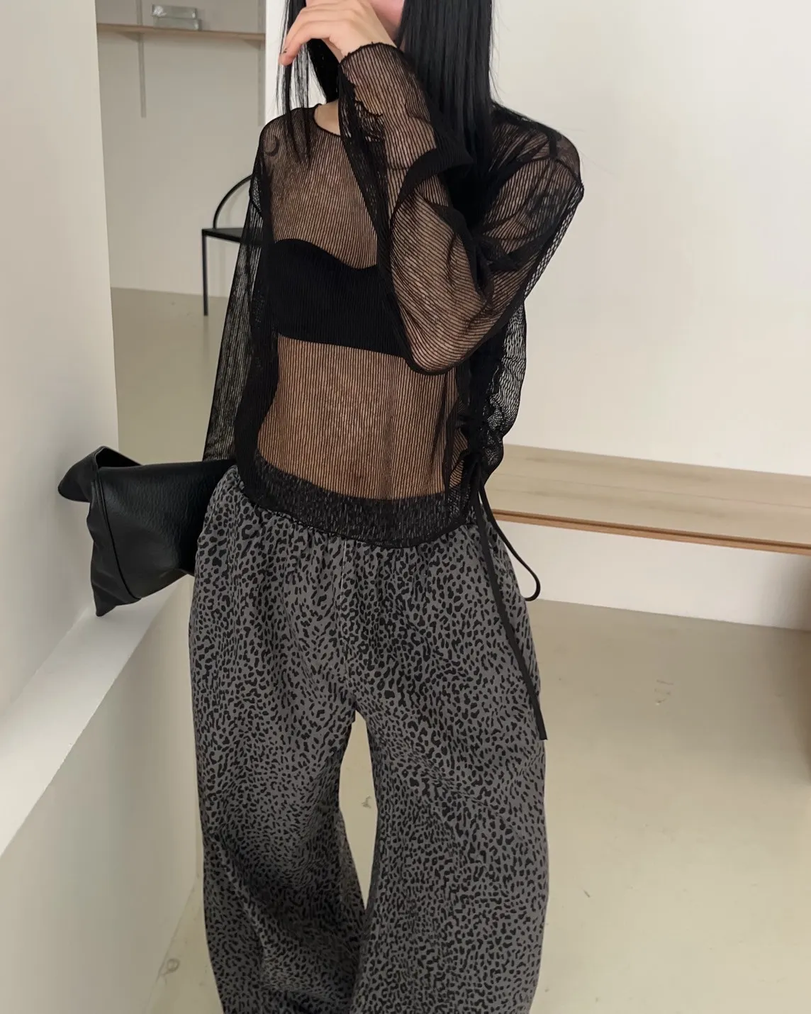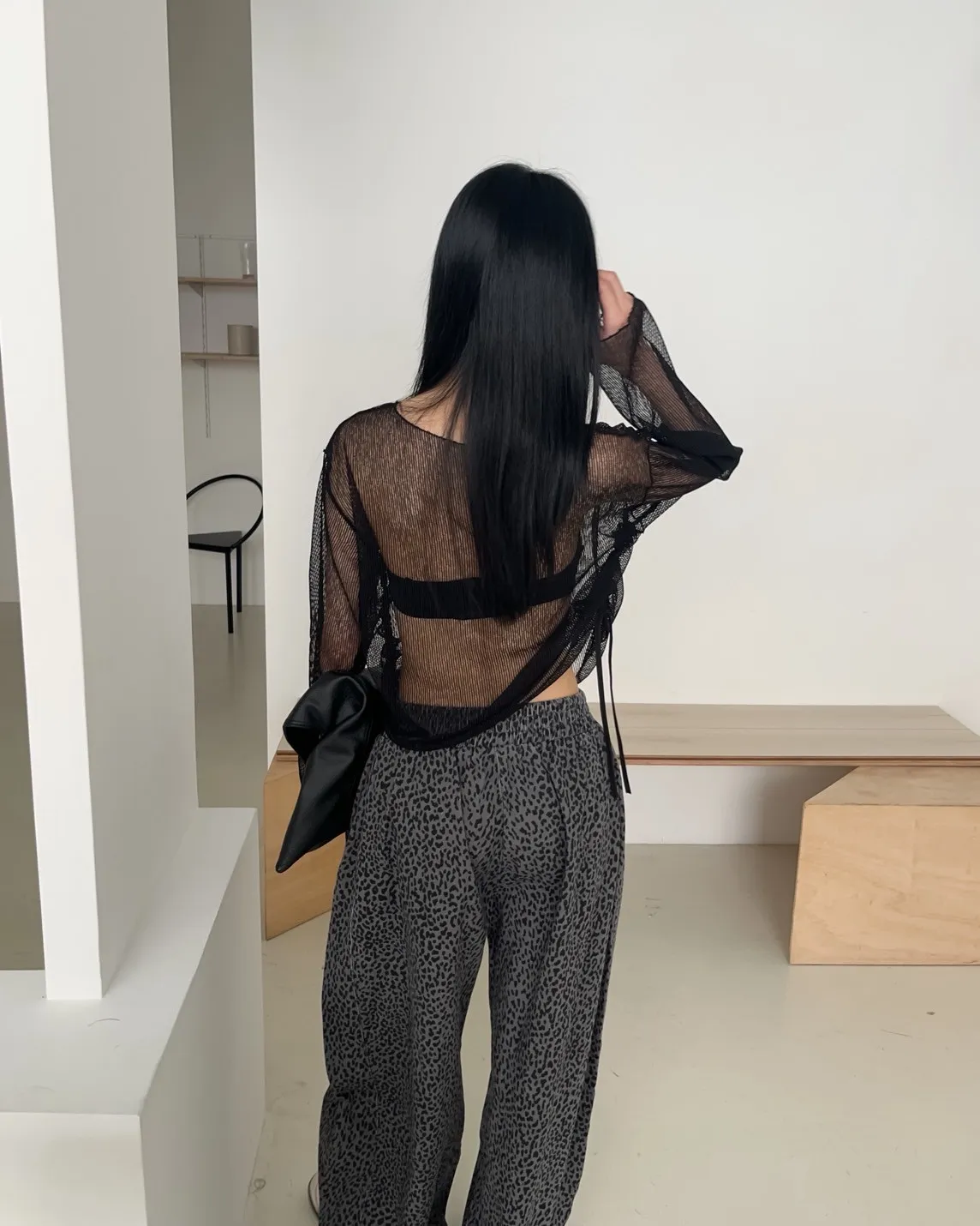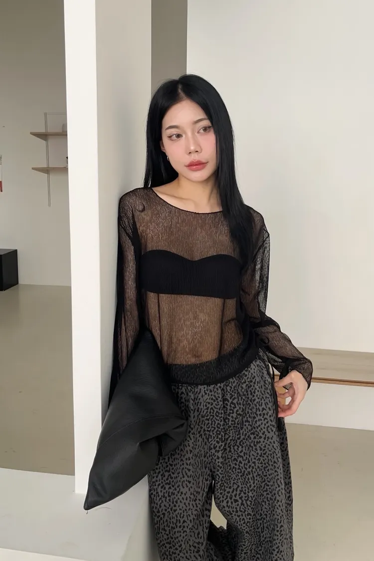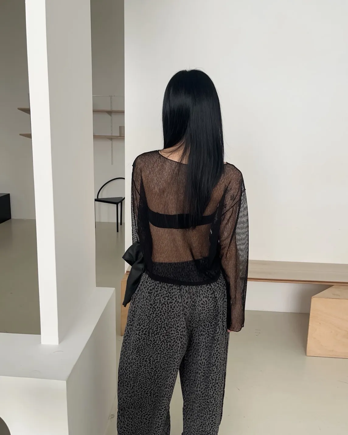 直條紋鏤空 船領小露鎖骨 兩側抽繩綁帶 寬版