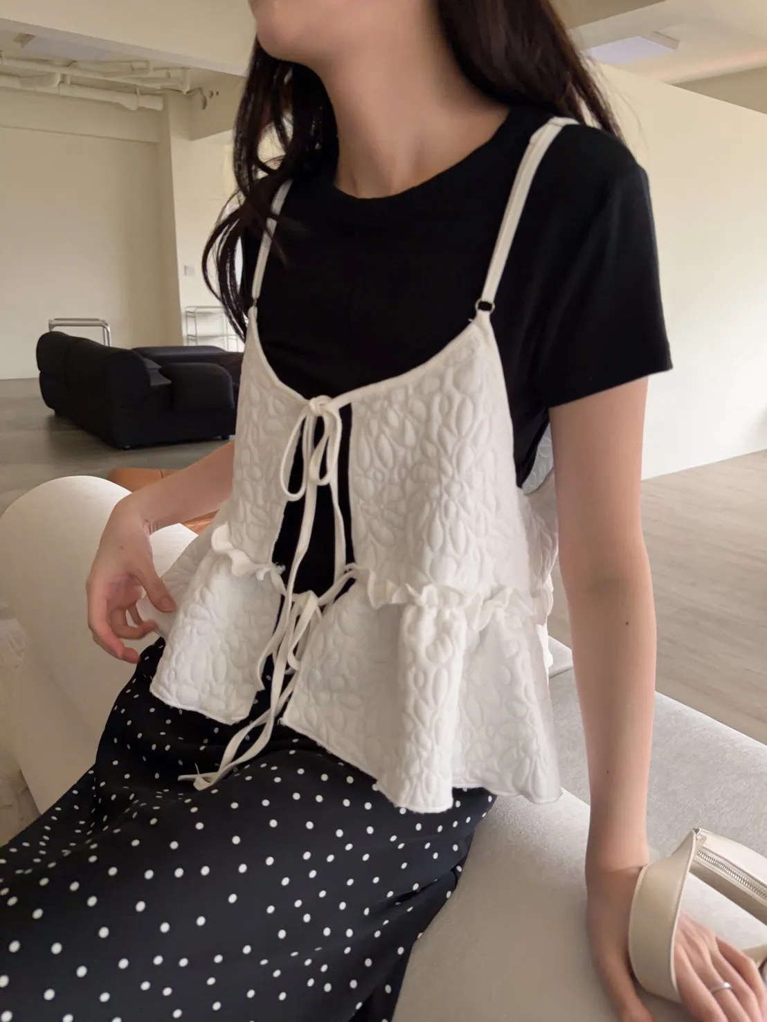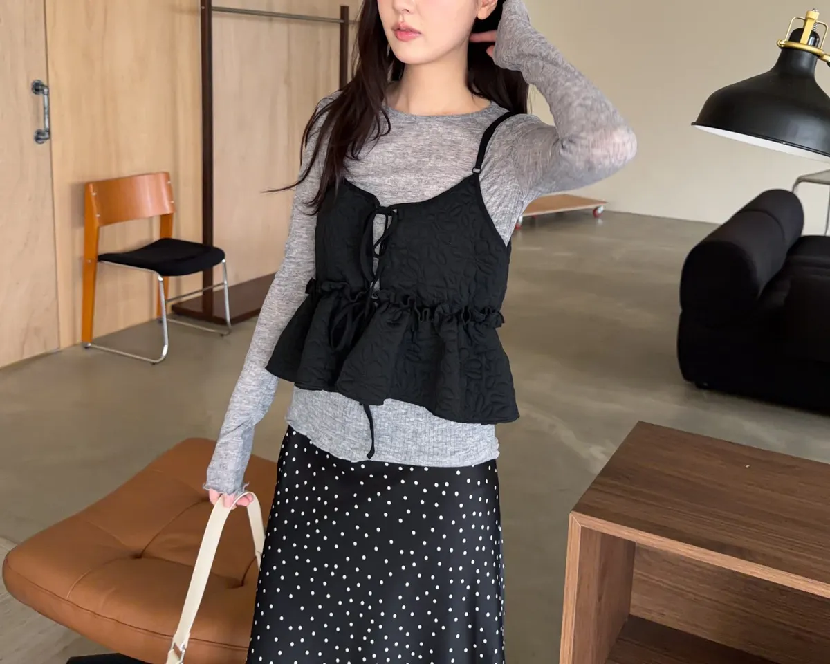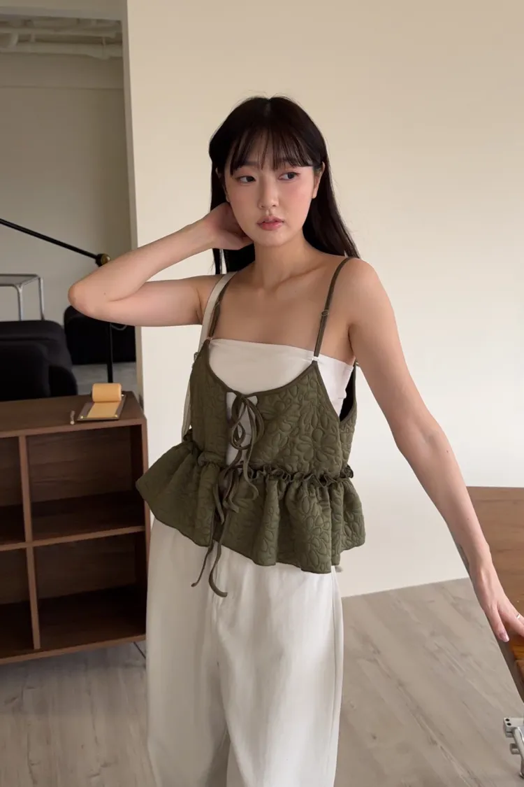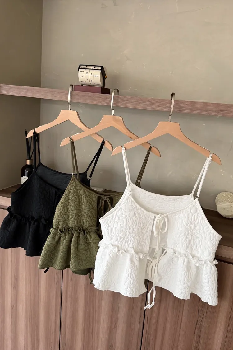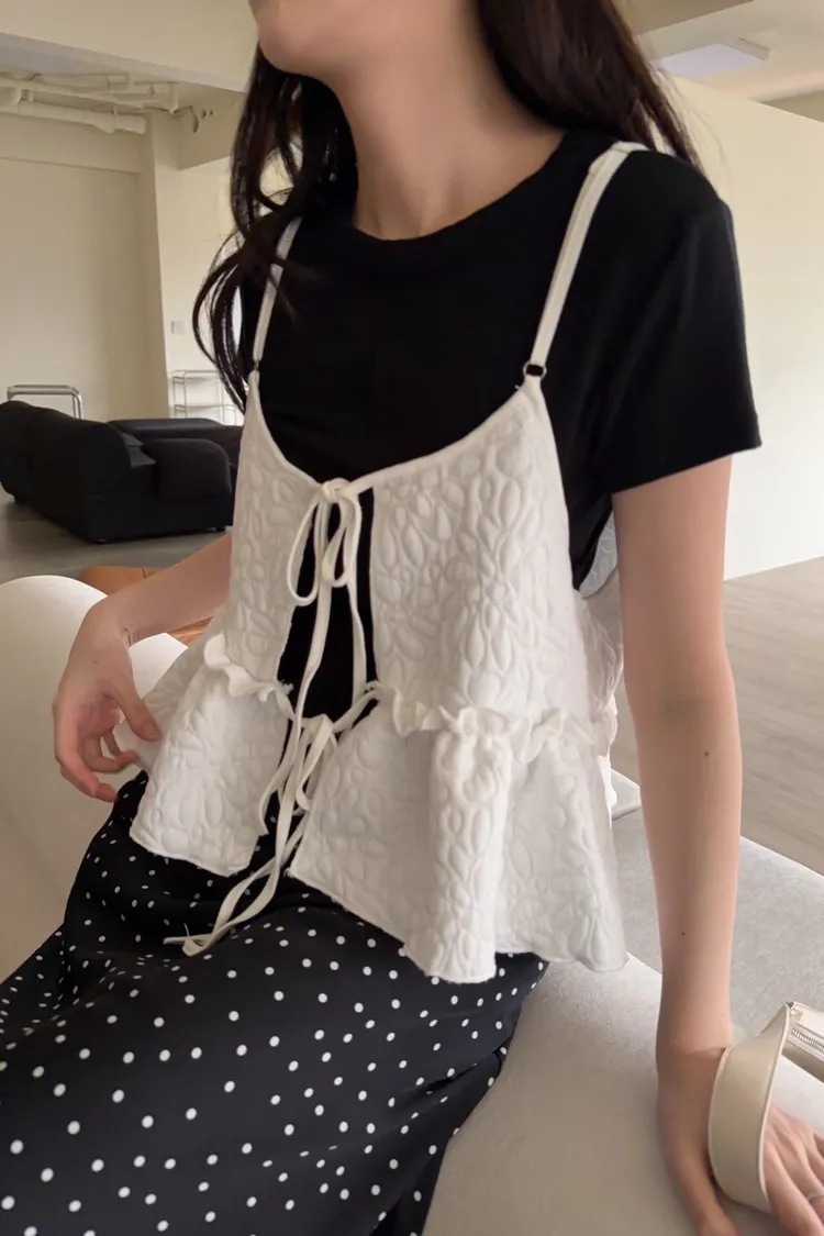B0017澎澎壓花小蛋糕綁帶背心(白/綠/黑)