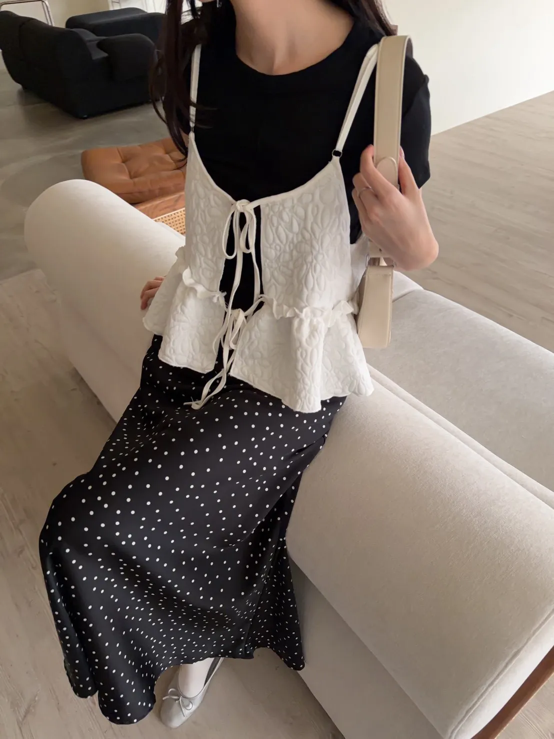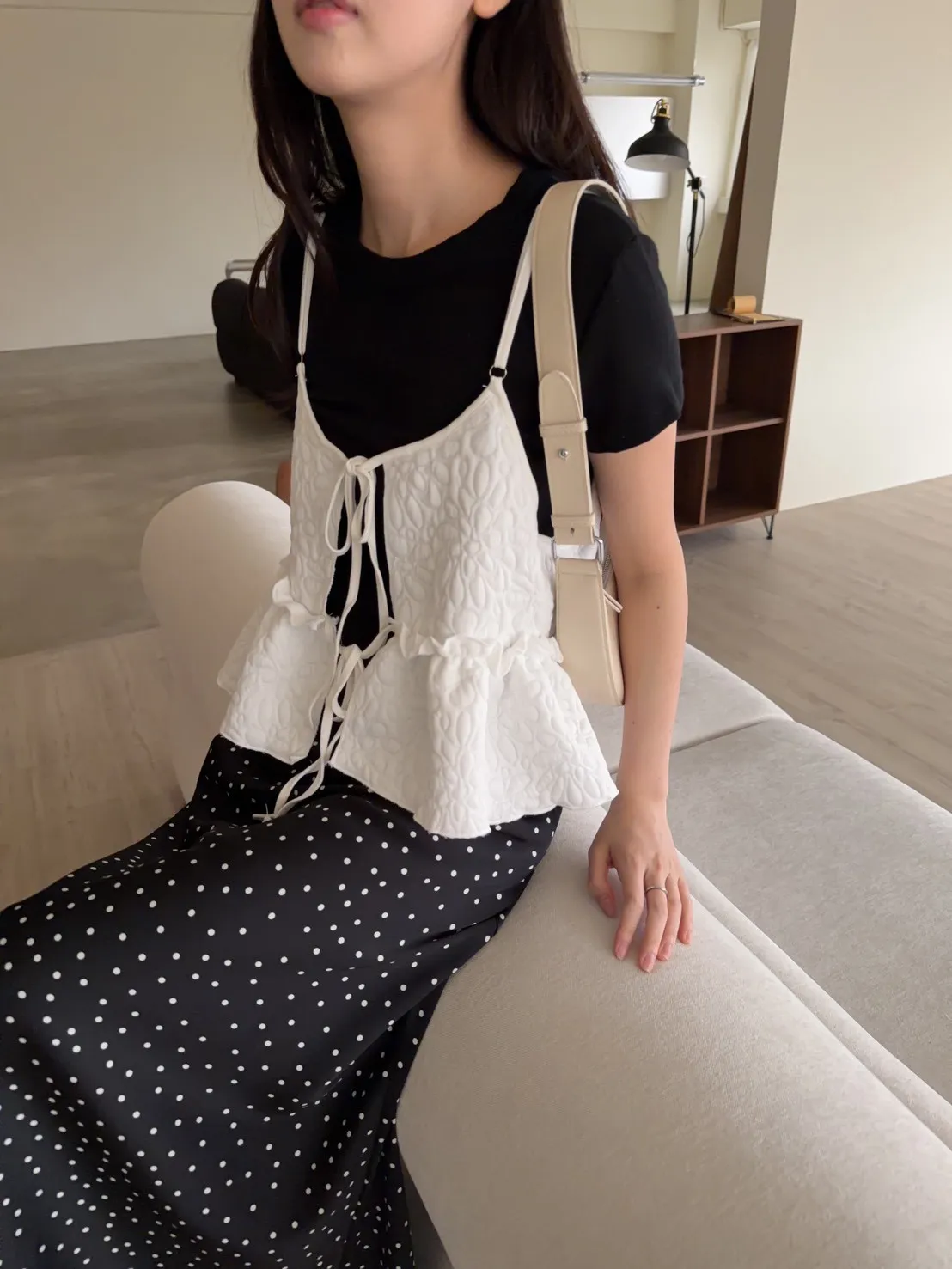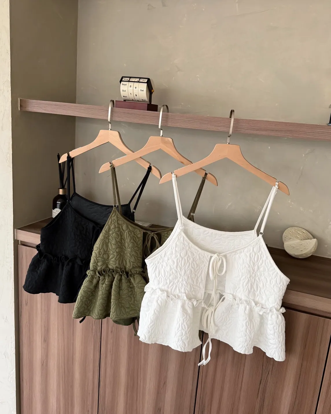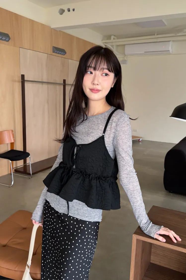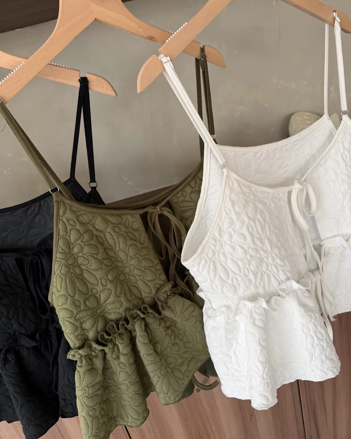 B0017澎澎壓花小蛋糕綁帶背心(白/綠/黑)