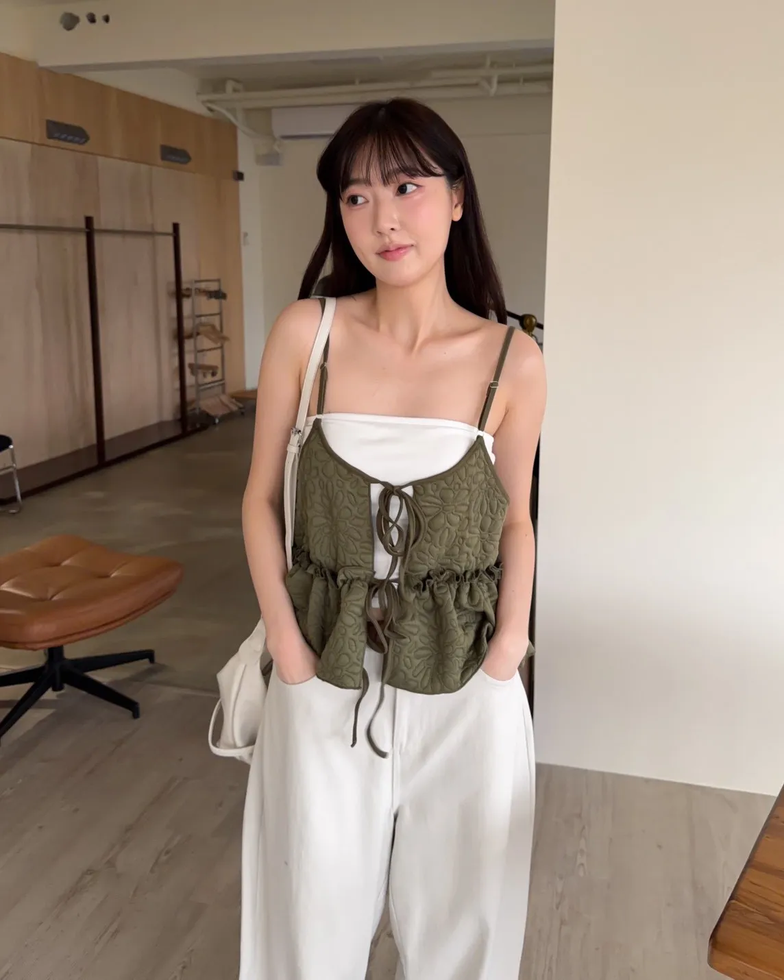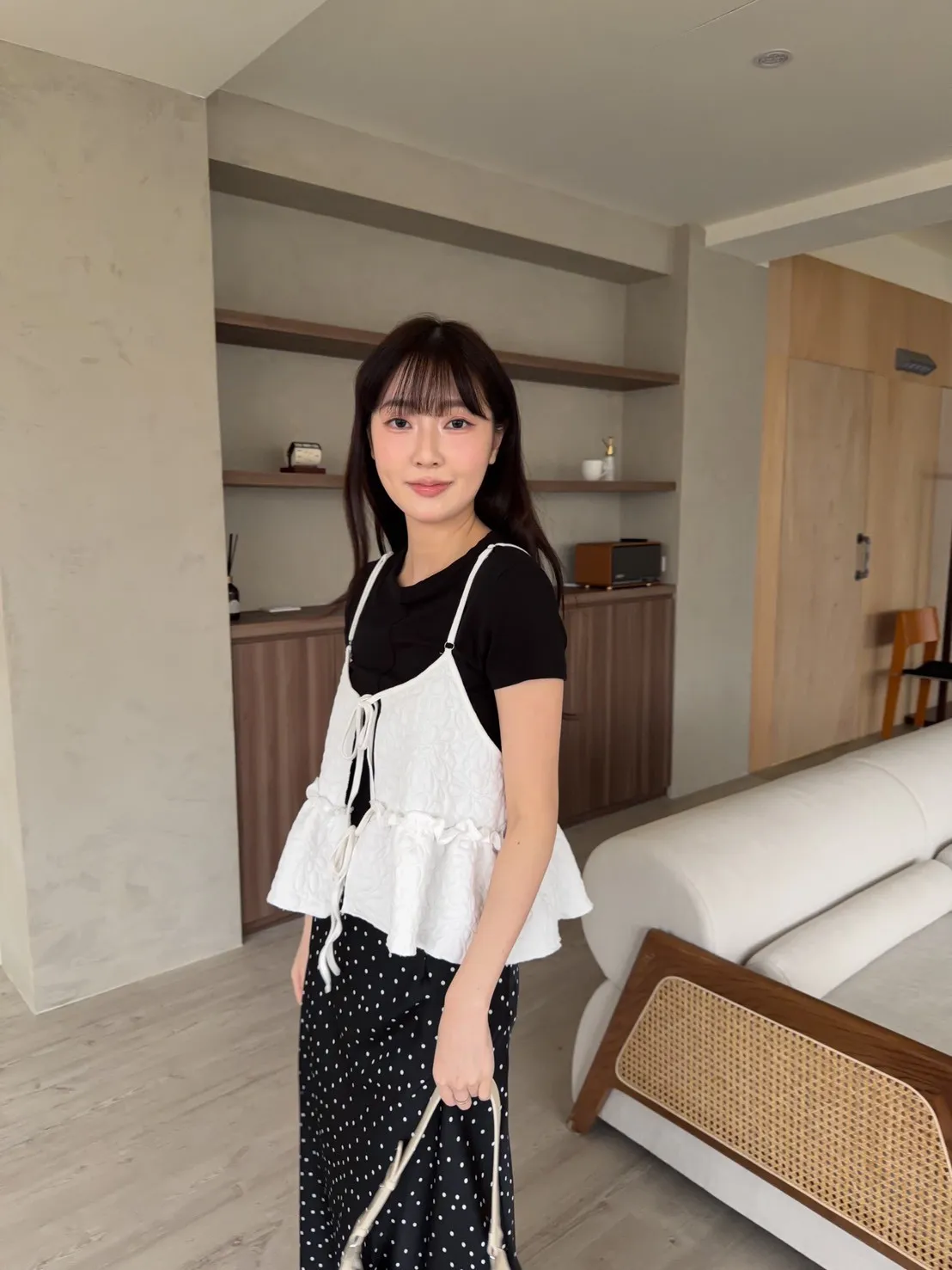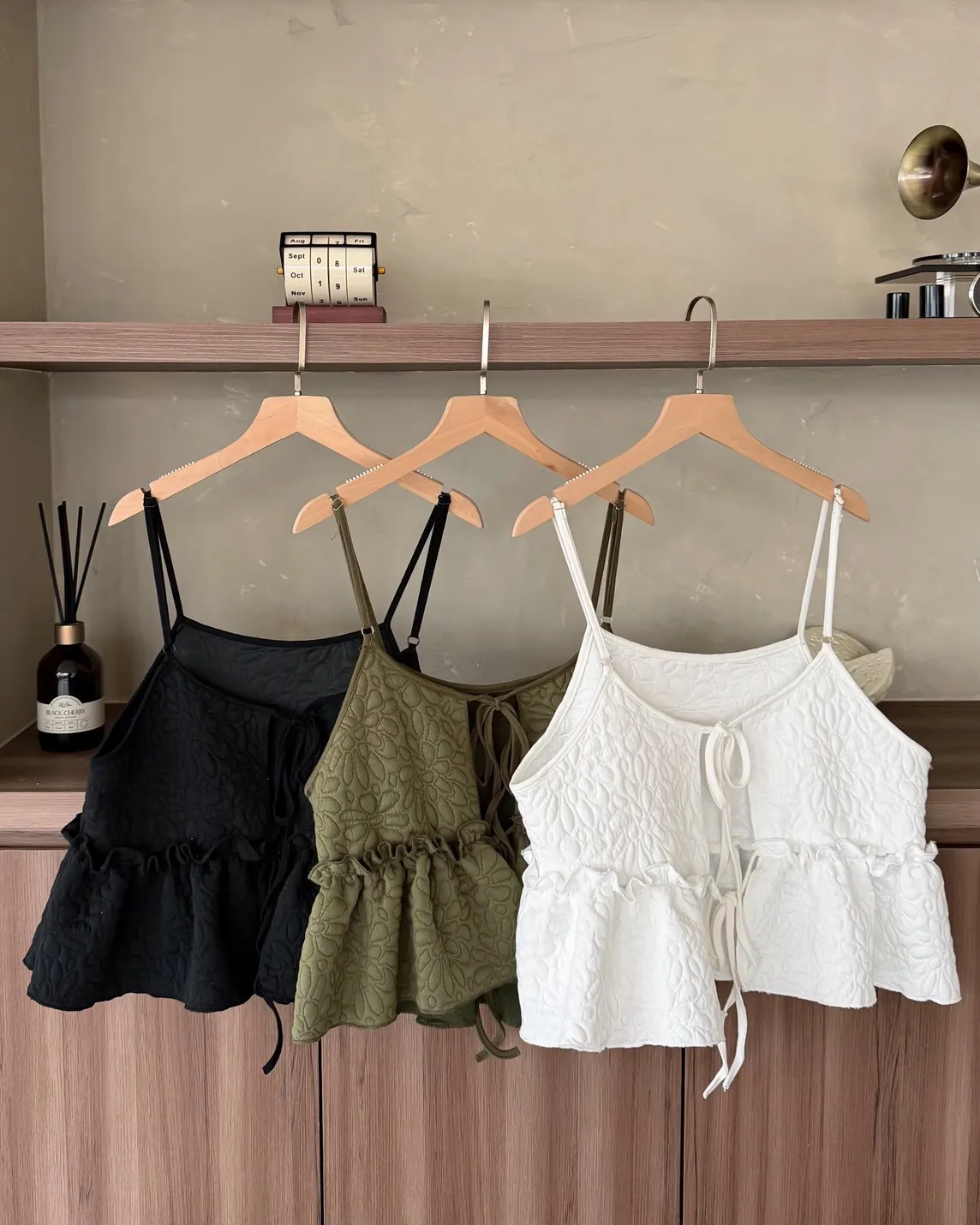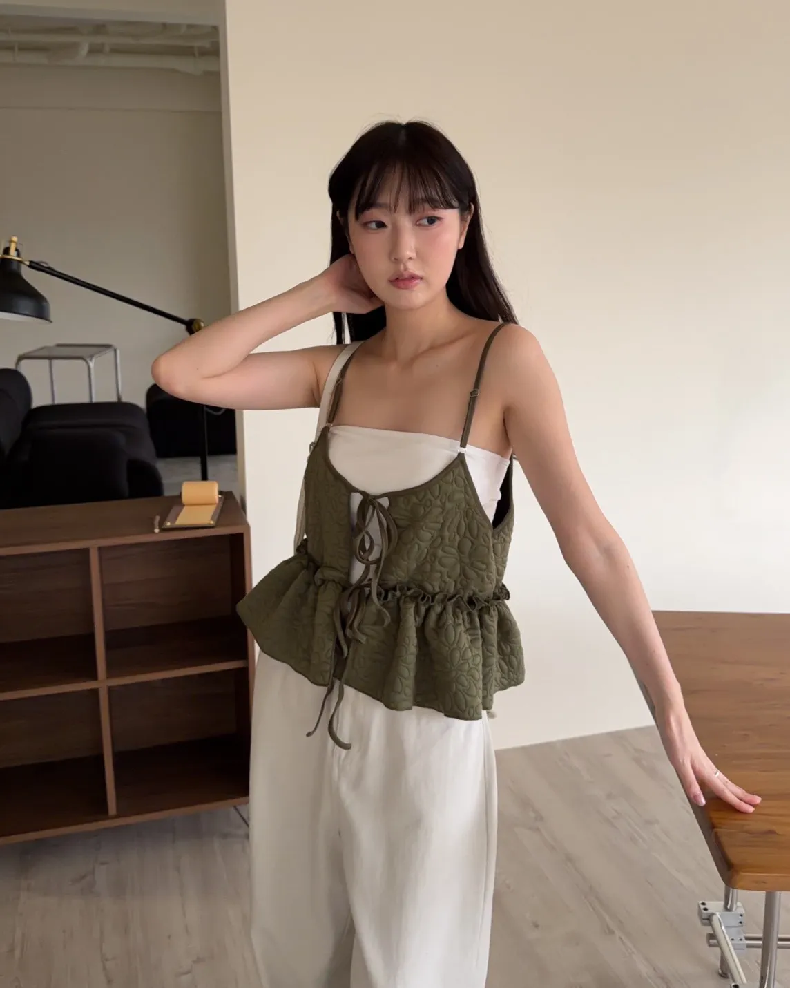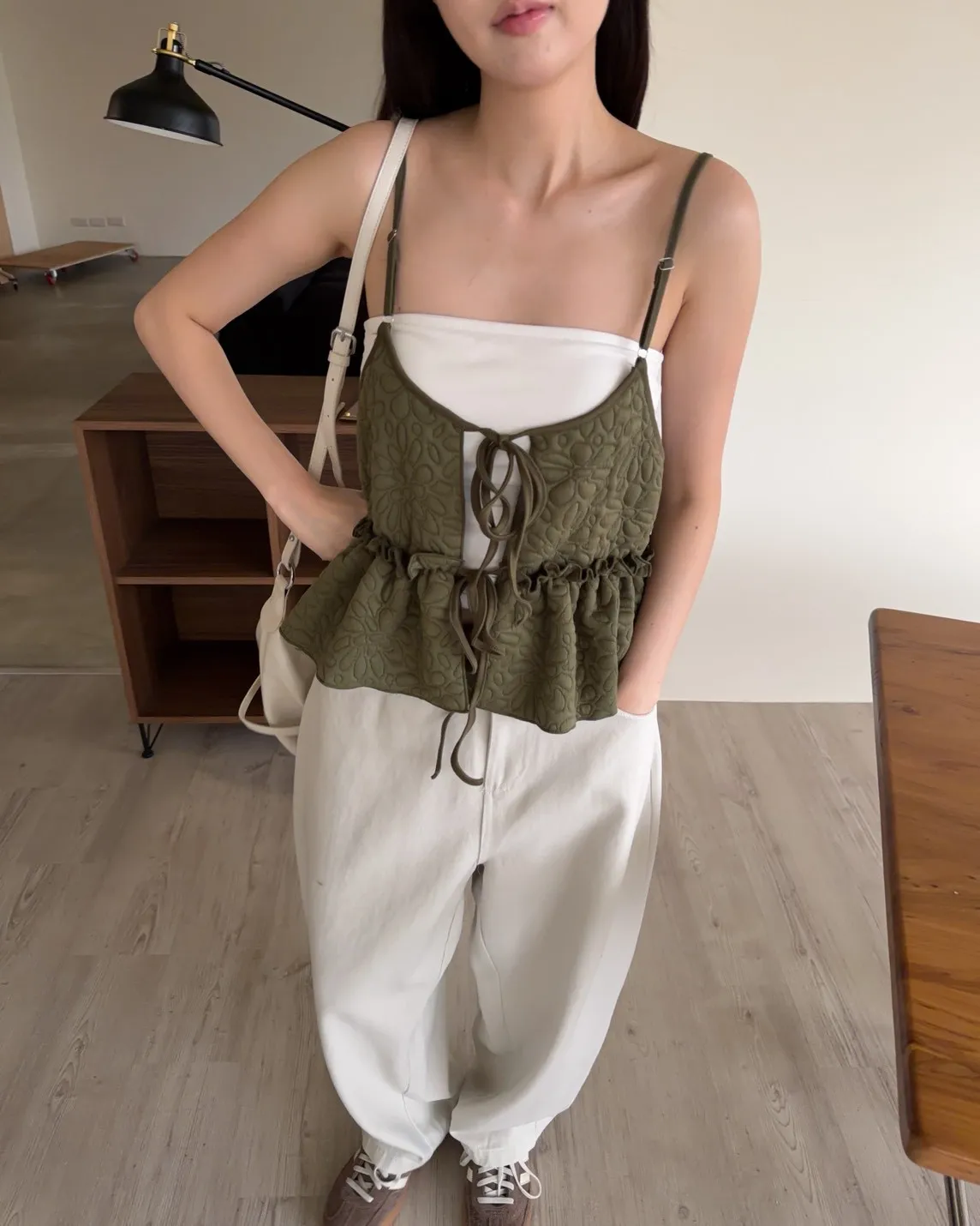 B0017澎澎壓花小蛋糕綁帶背心(白/綠/黑)