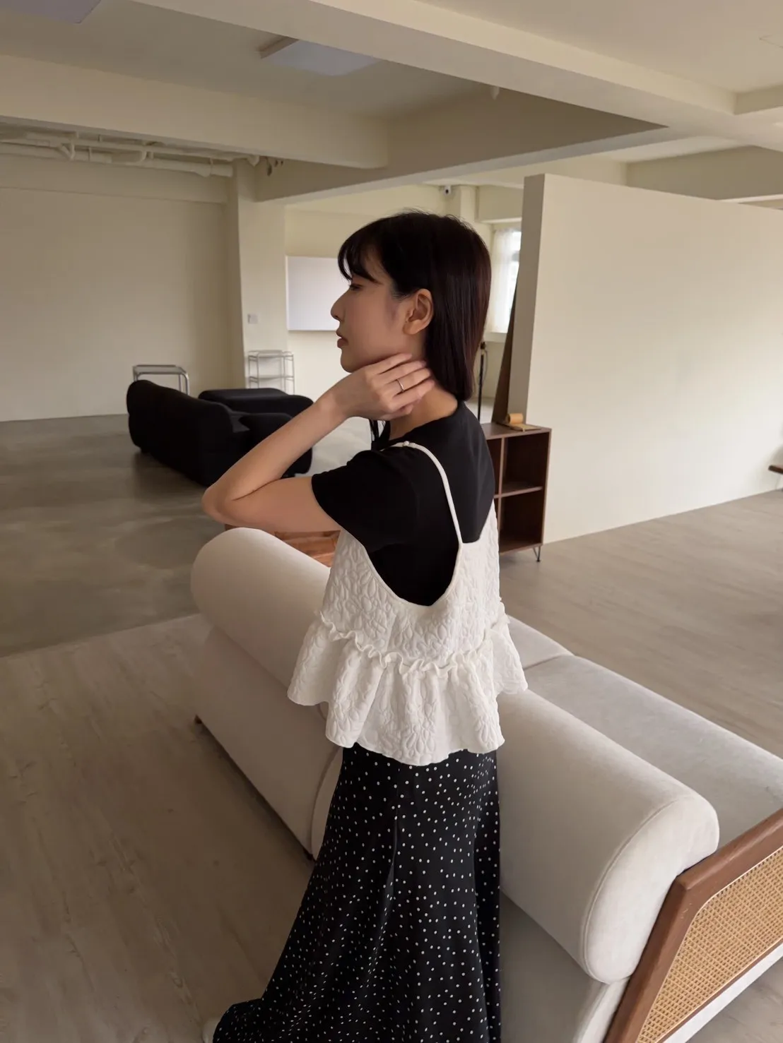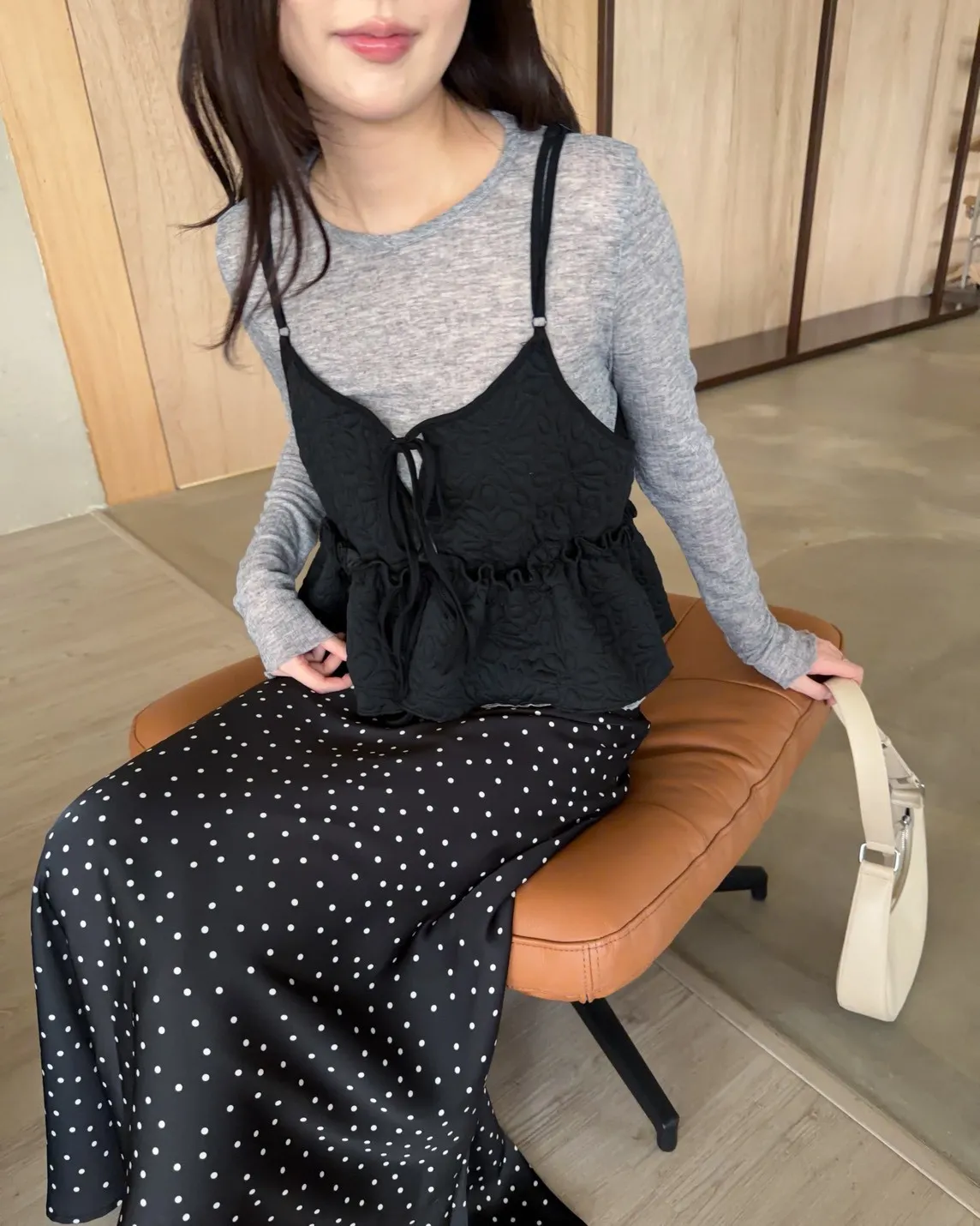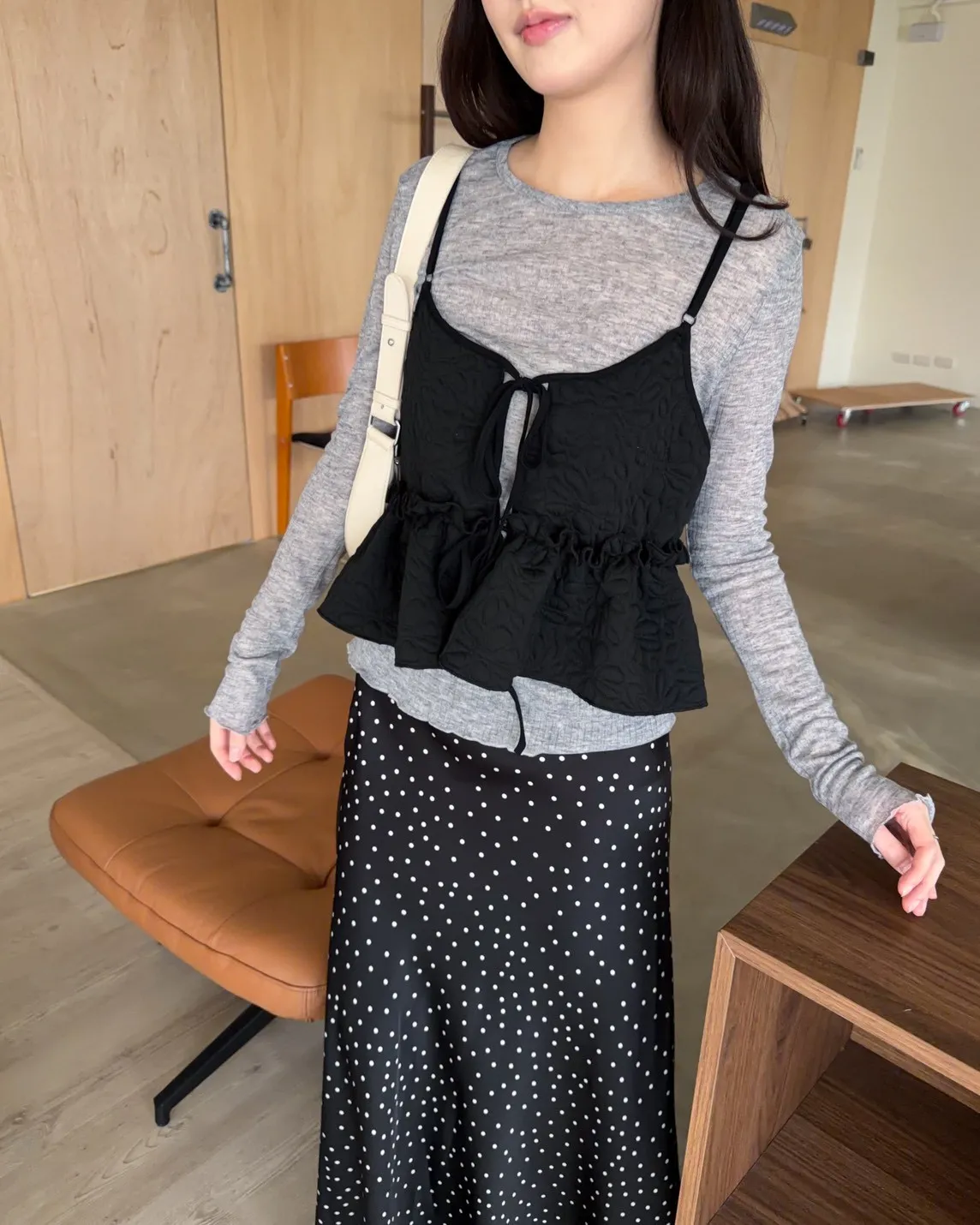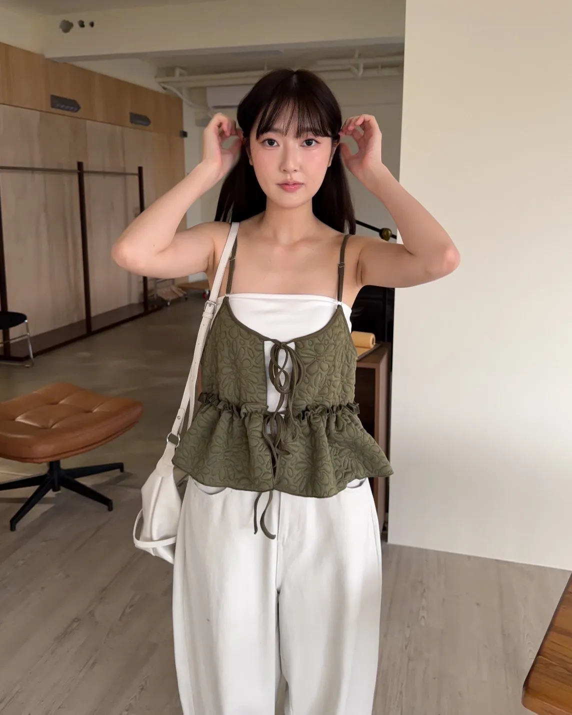 B0017澎澎壓花小蛋糕綁帶背心(白/綠/黑)