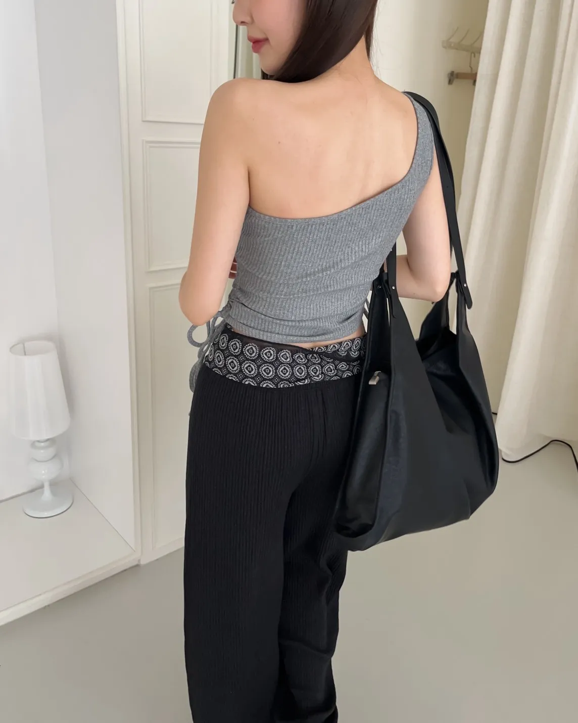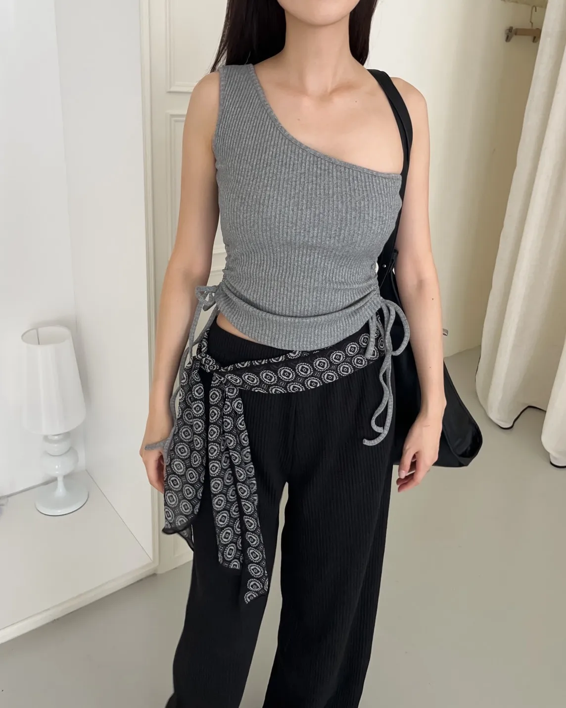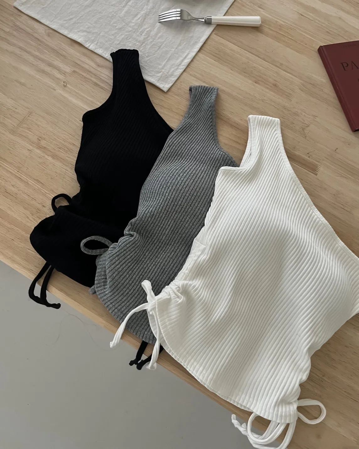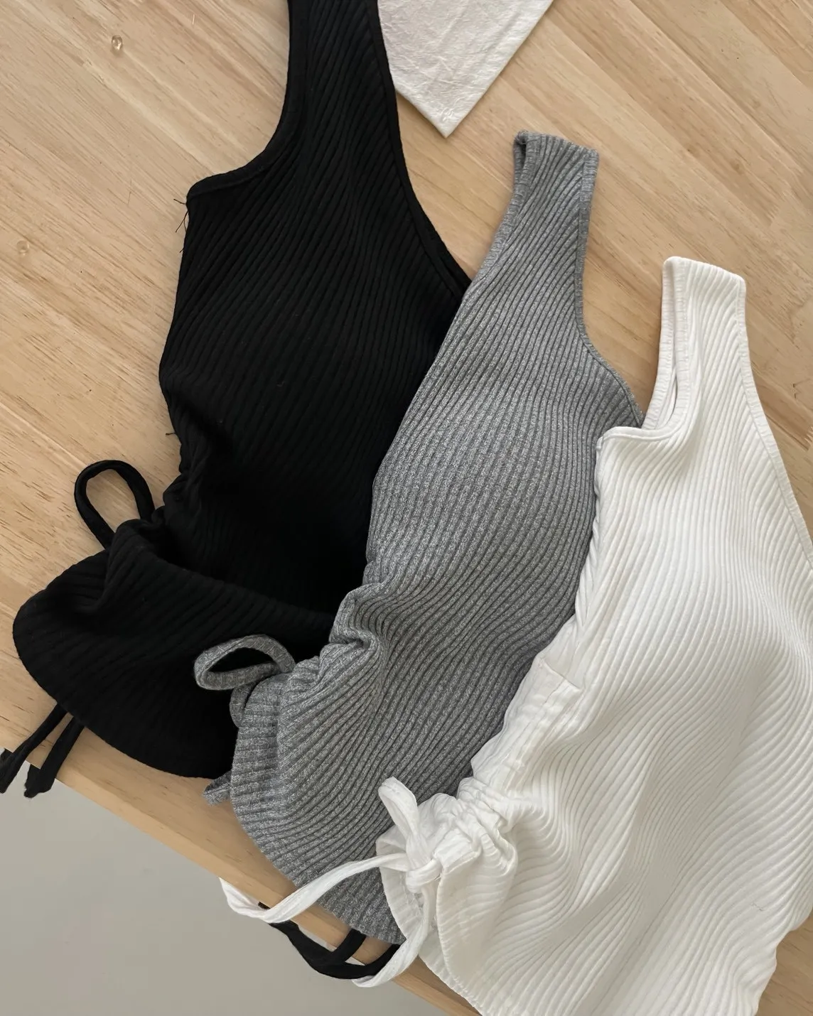 V0001單肩厚坑條抽腰罩杯背心(白/灰/黑)
