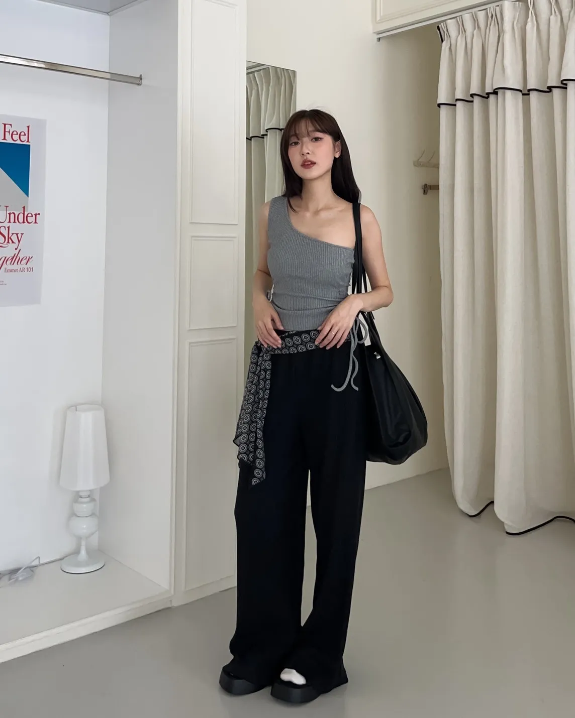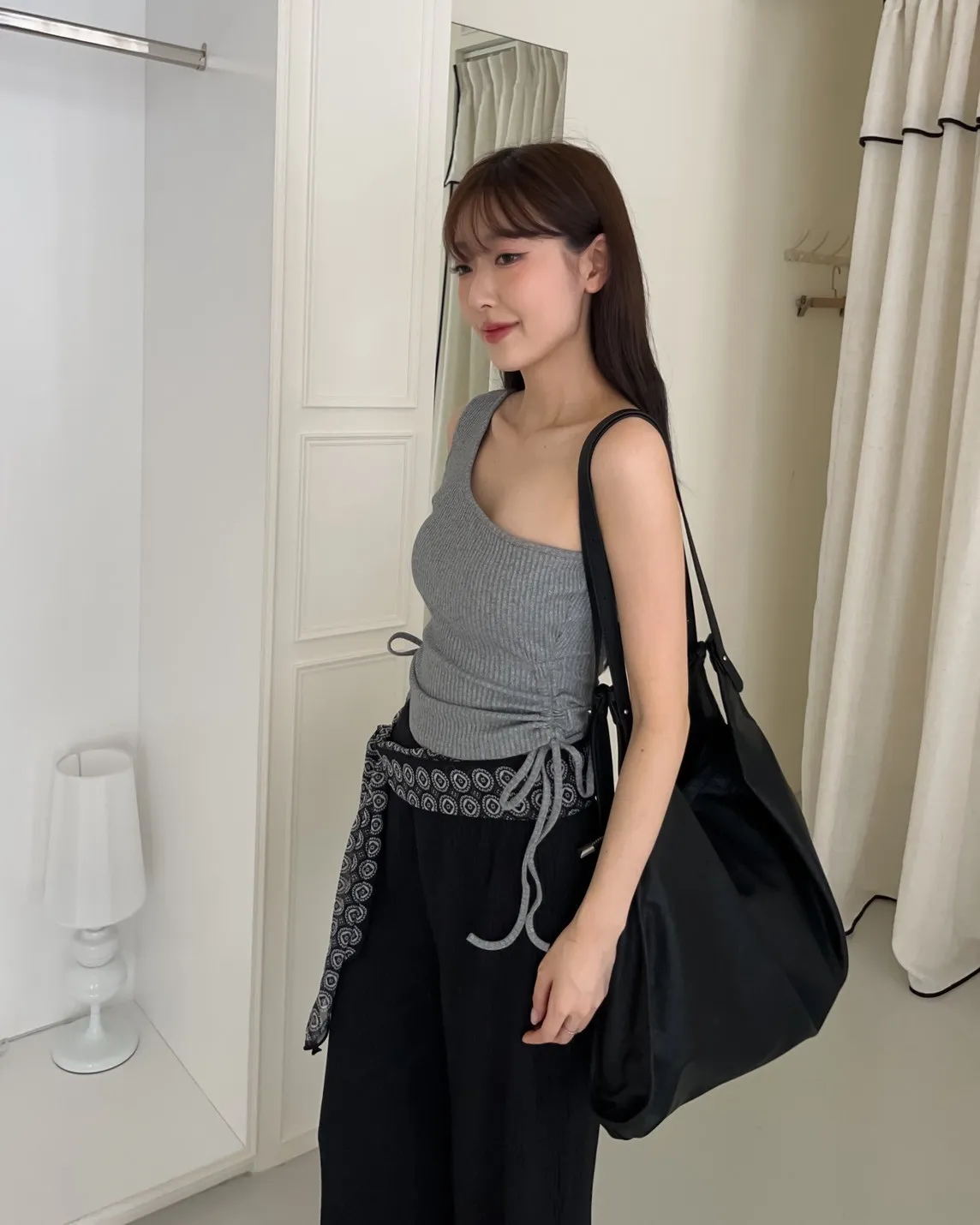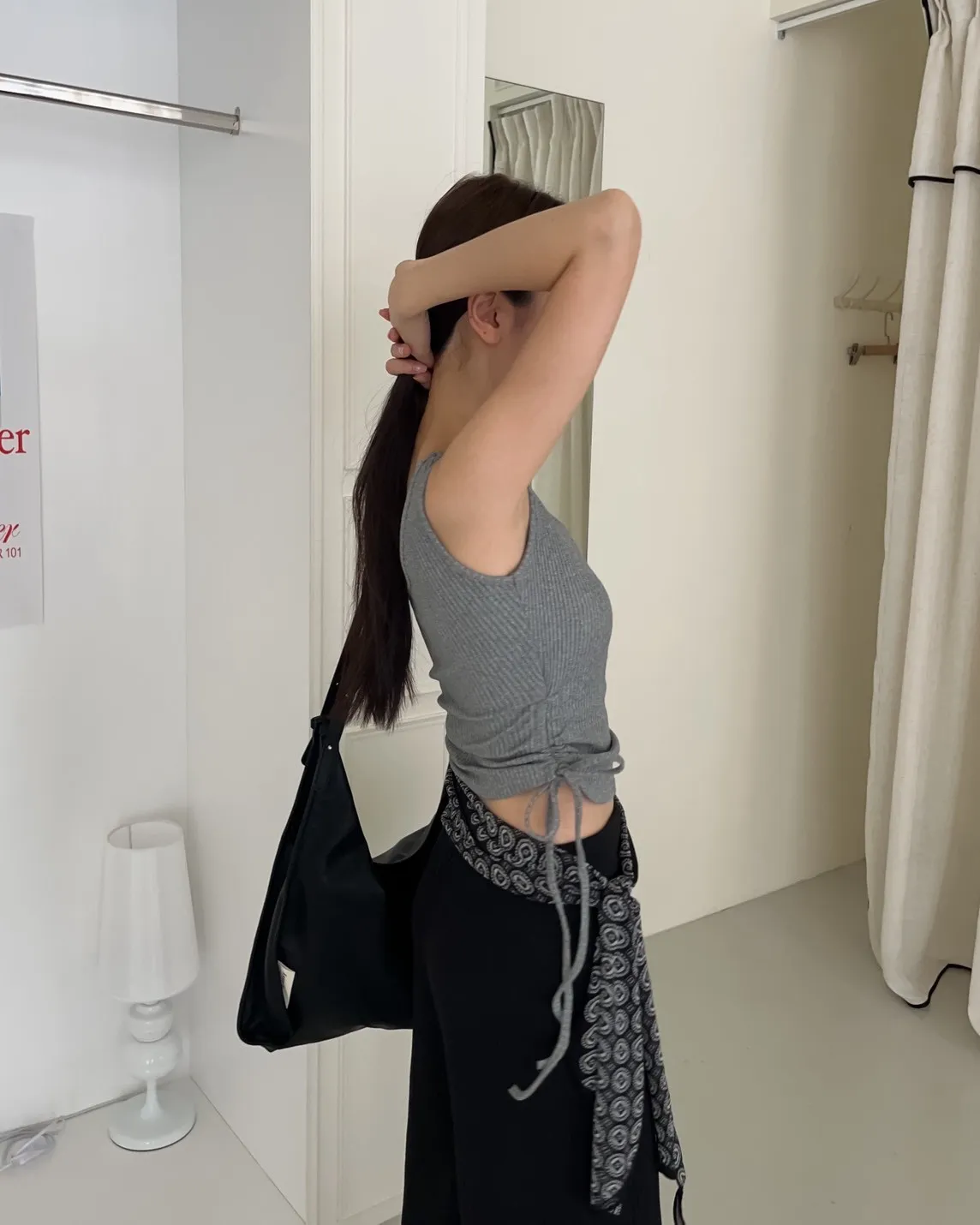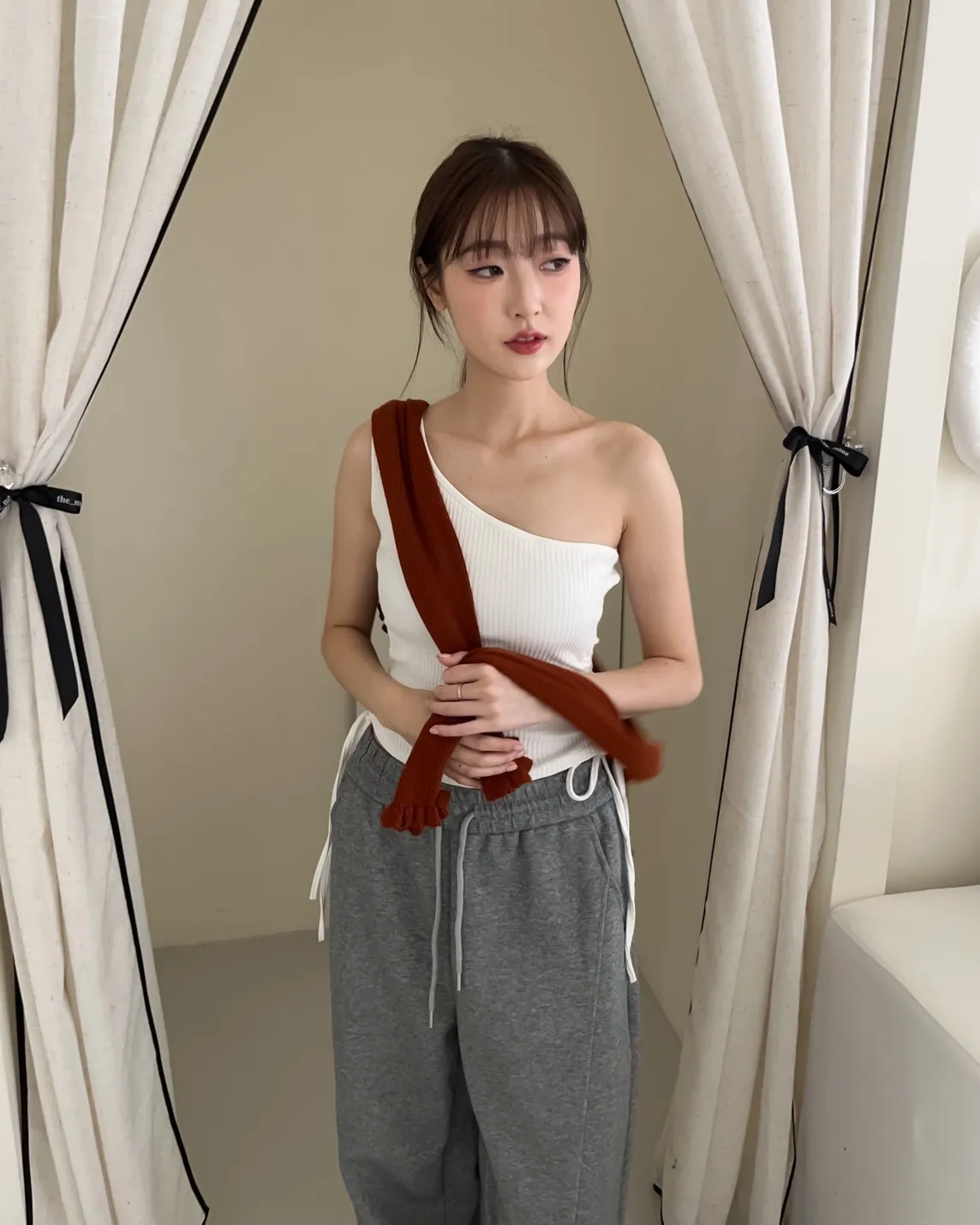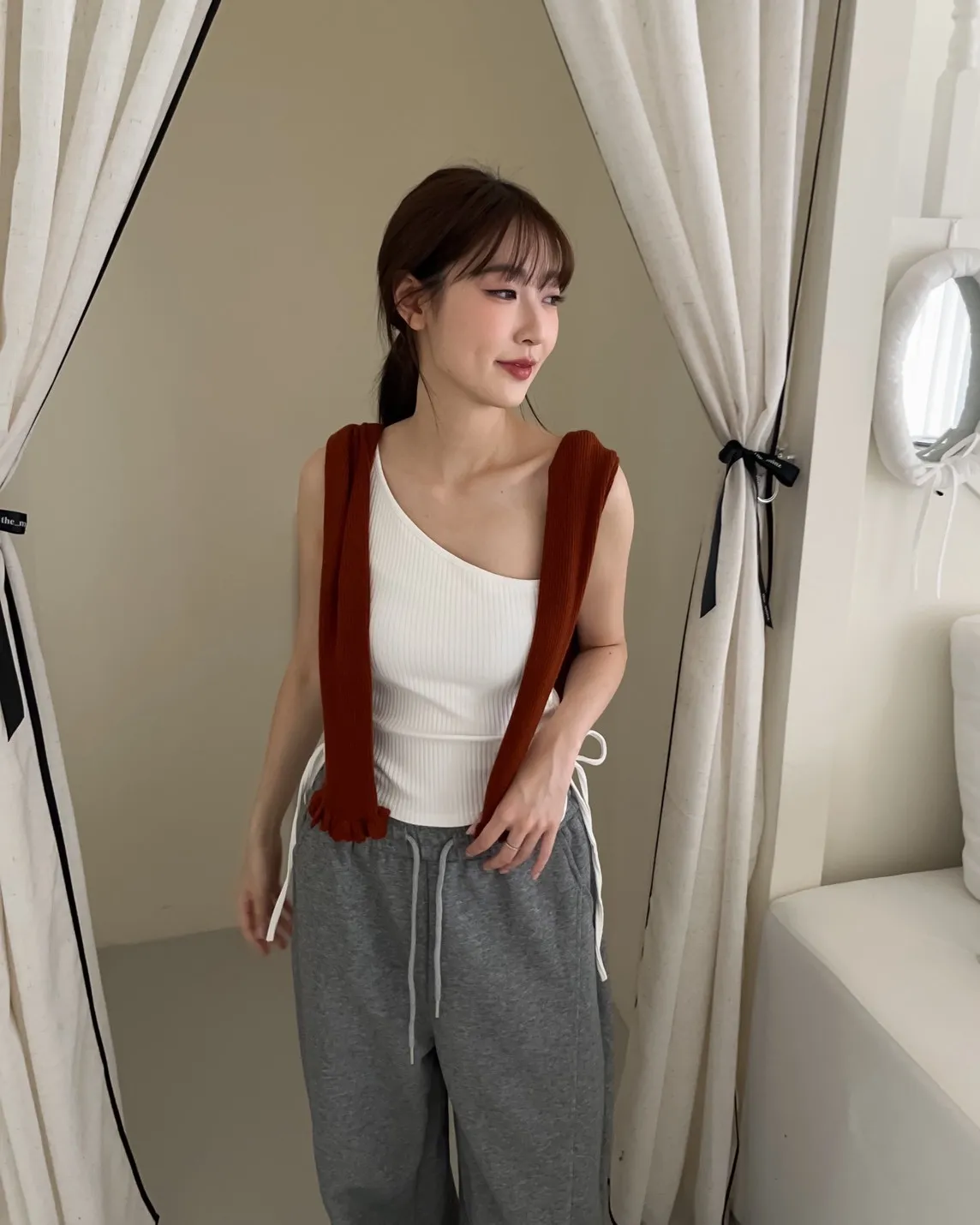 V0001單肩厚坑條抽腰罩杯背心(白/灰/黑)