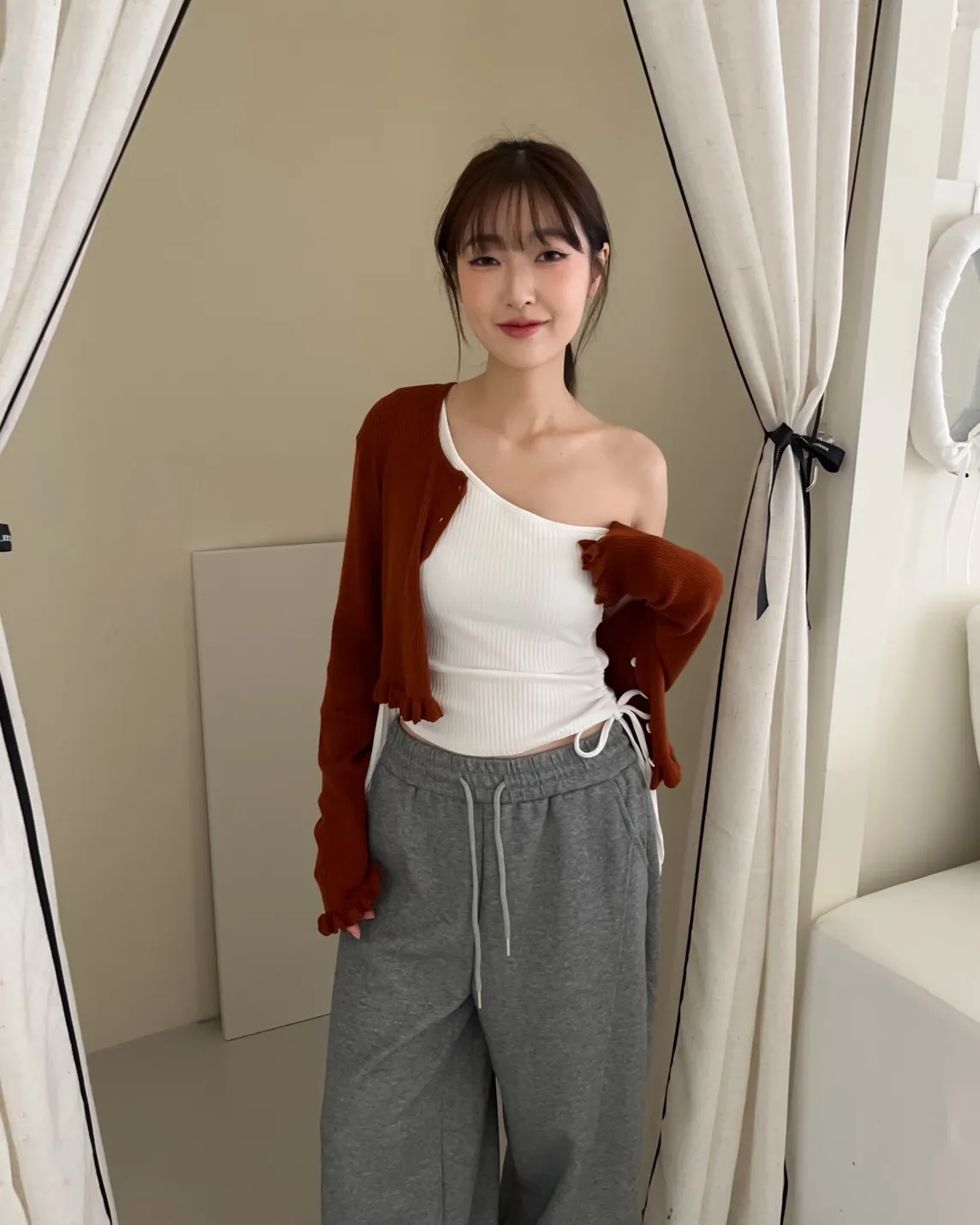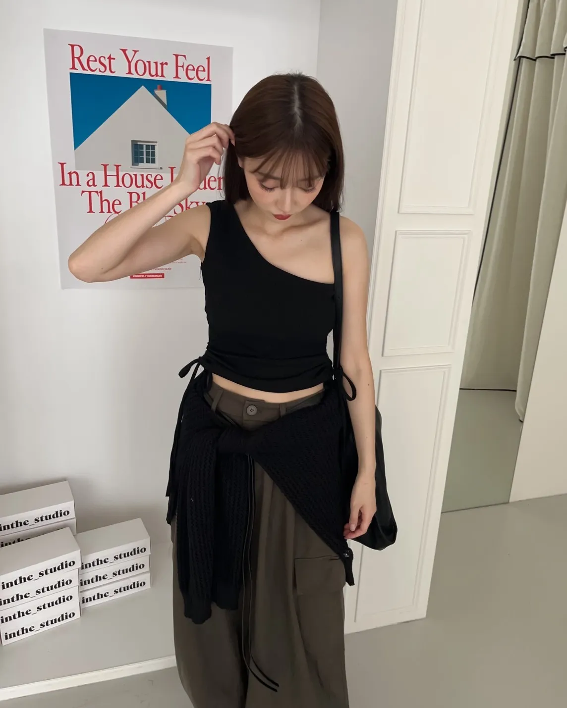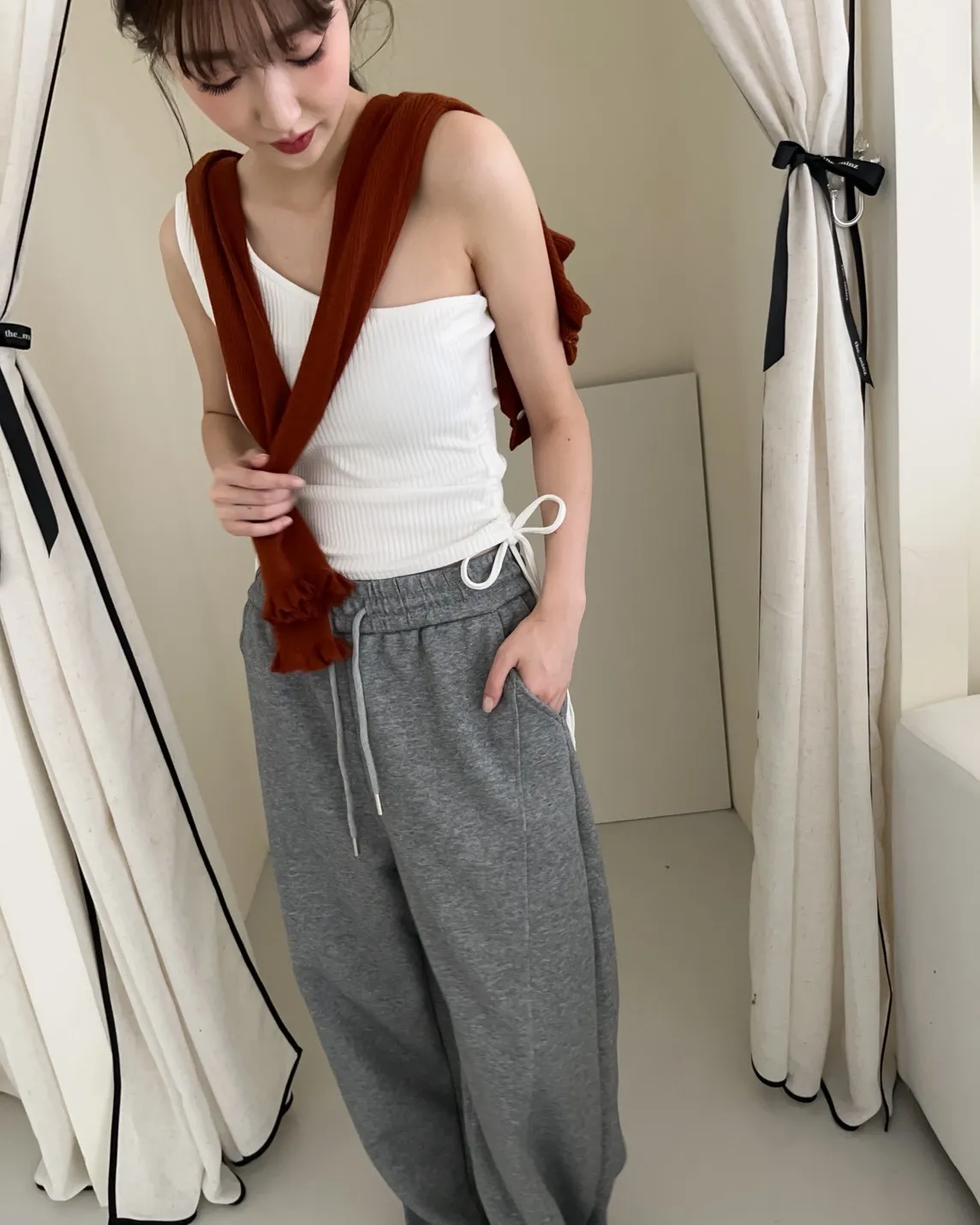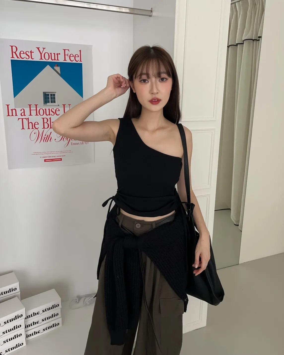 V0001單肩厚坑條抽腰罩杯背心(白/灰/黑)