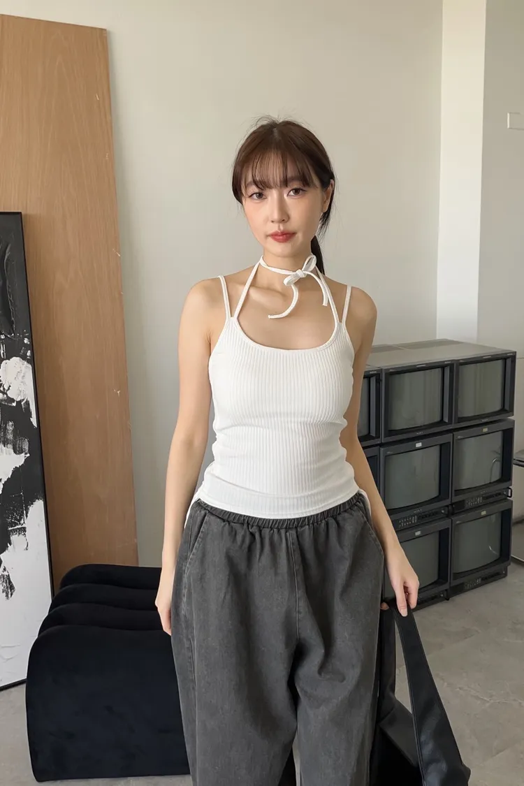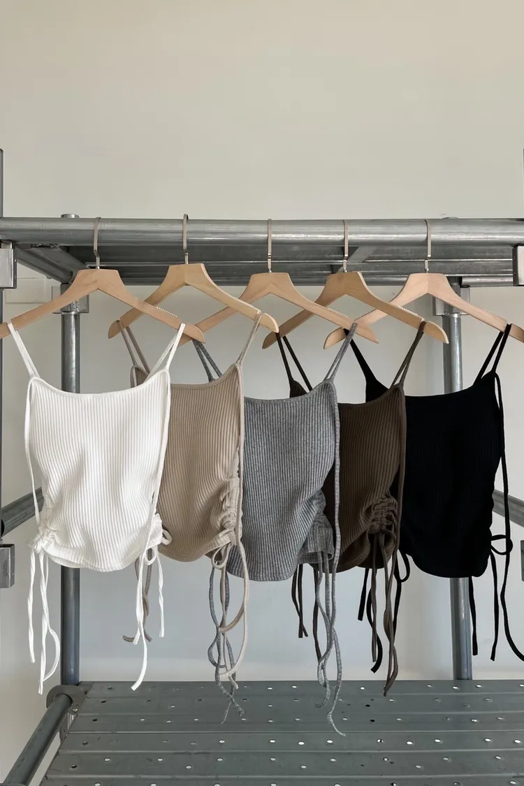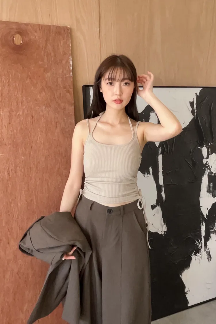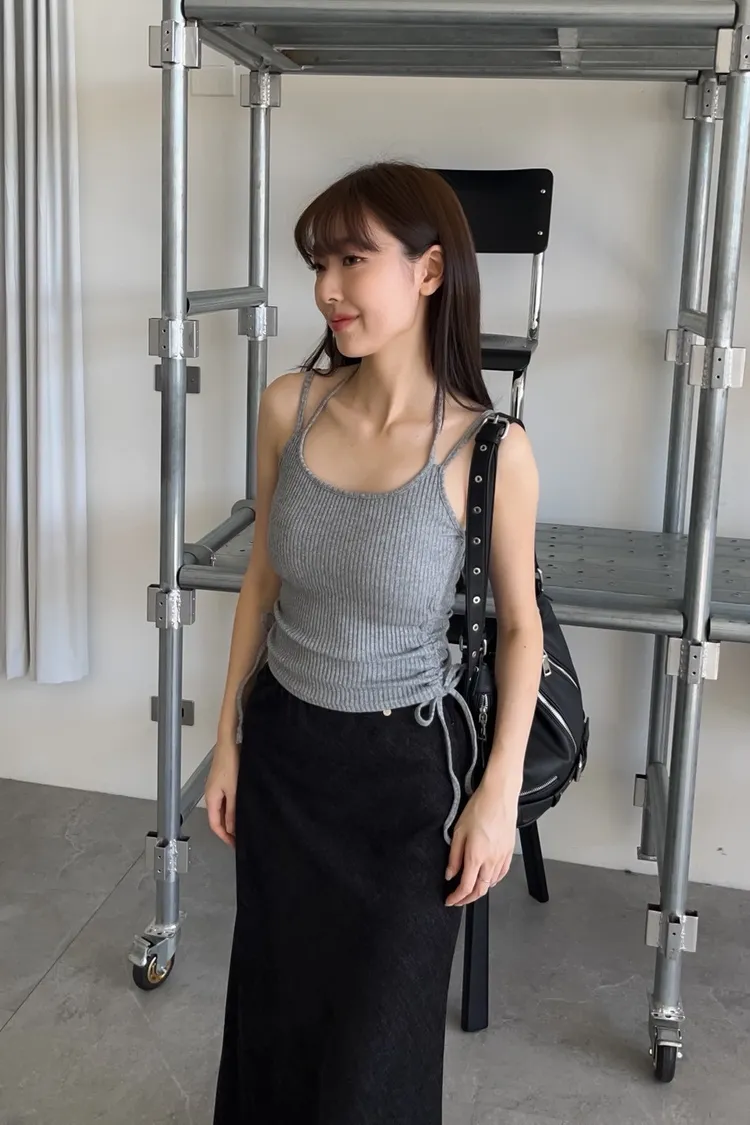 U0063好身材綁帶抽腰罩杯背心(白/杏/綠/灰/黑)