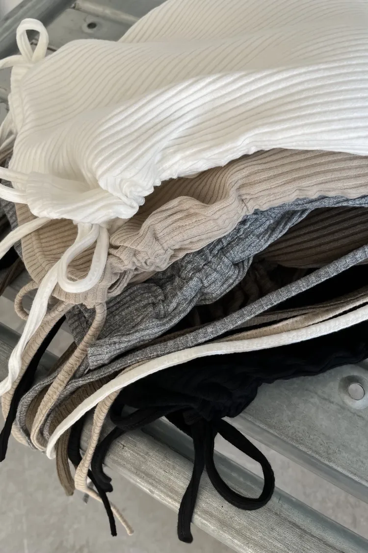 坑條造型 肩帶不可調(有彈性) 兩邊垂線裝飾 可當綁帶 兩側抽腰 固定式罩杯不可拆 半圈鬆緊