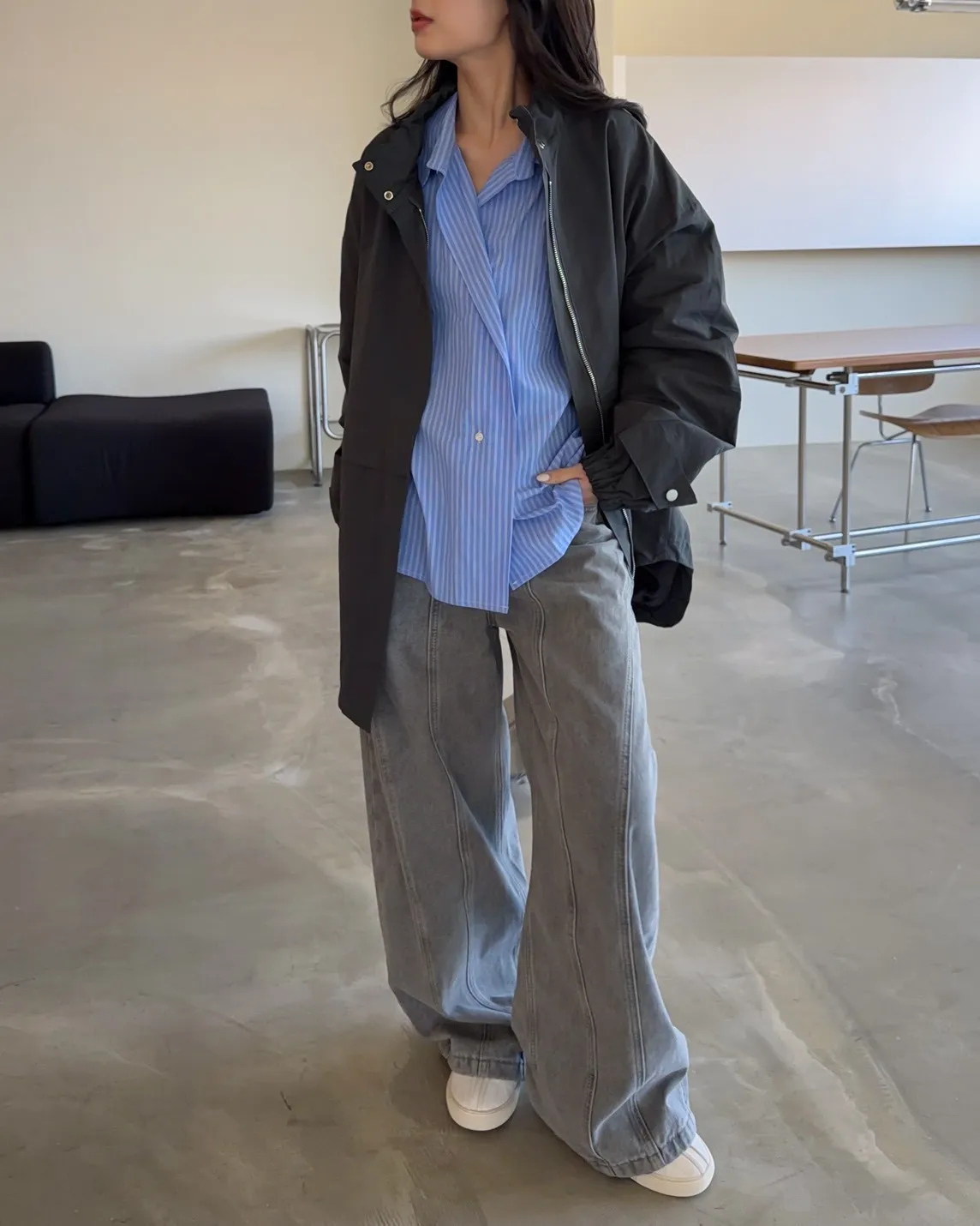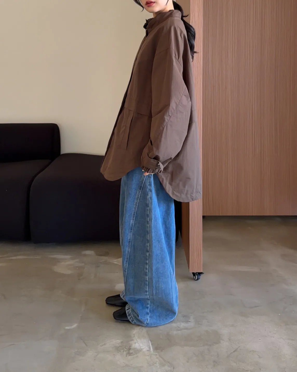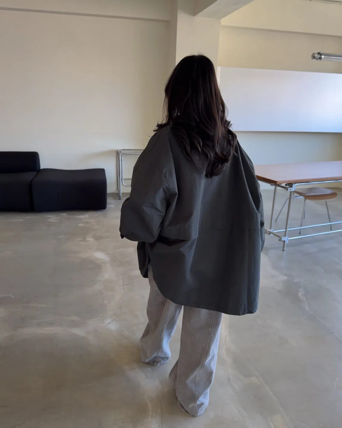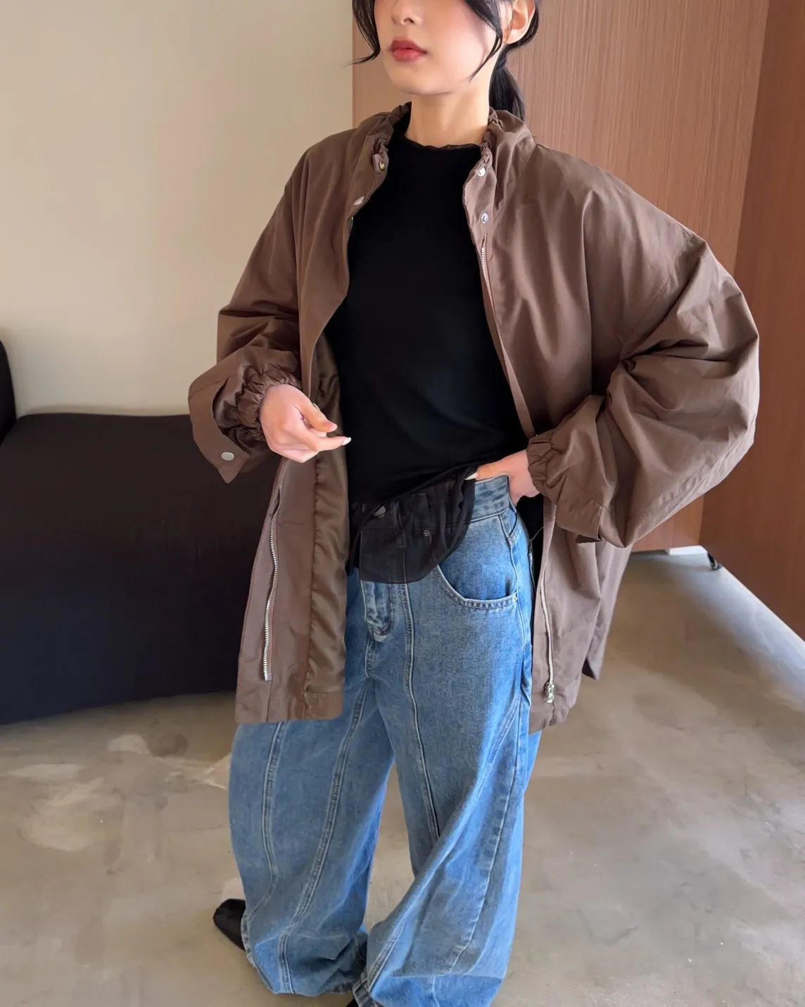A0037率性寬鬆立領防風外套(售完不補)(咖啡/灰綠/黑)