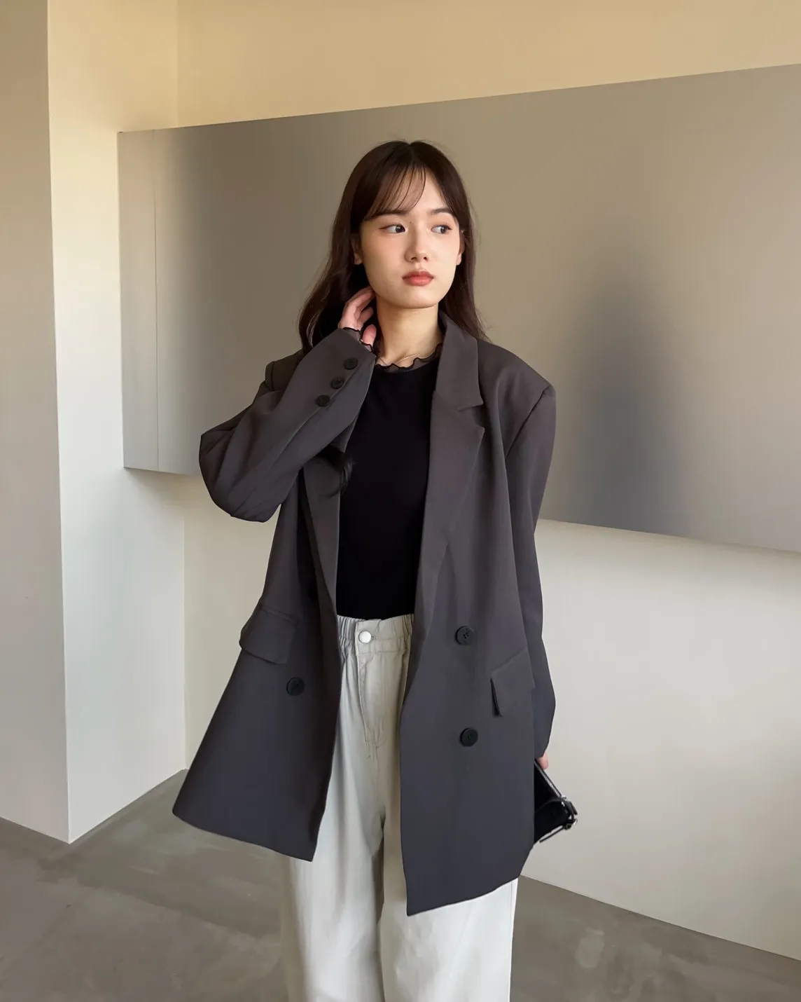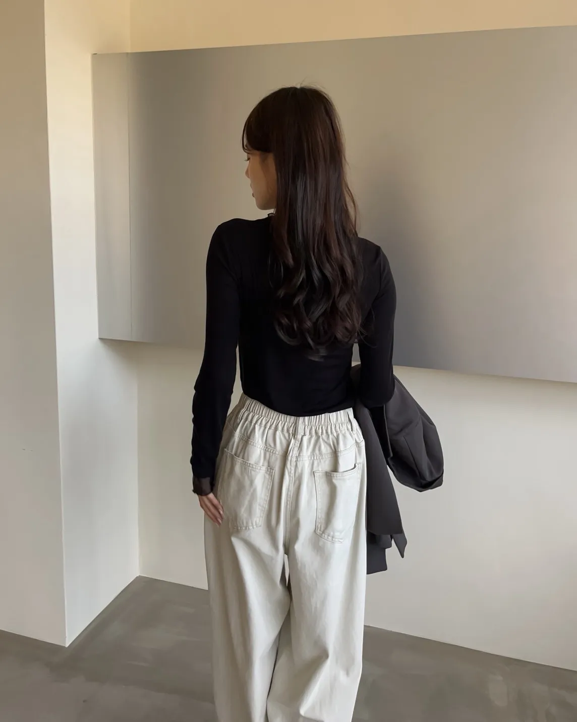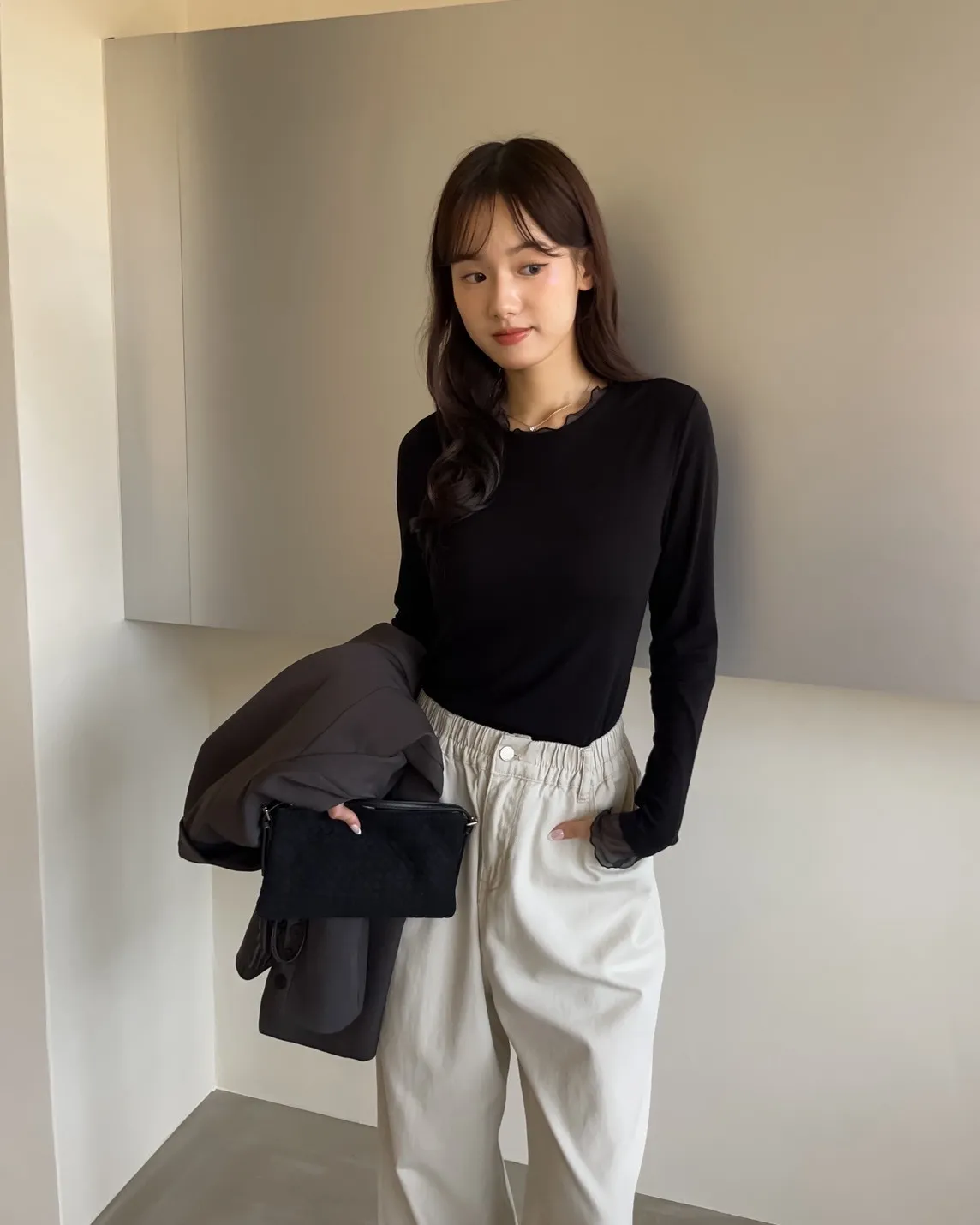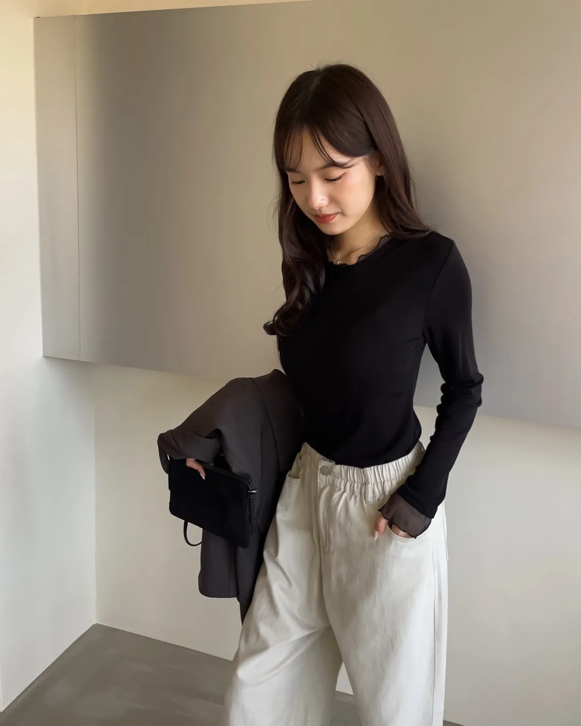V0071日系網紗滾邊素色棉質上衣(白/藍/灰/黑)
