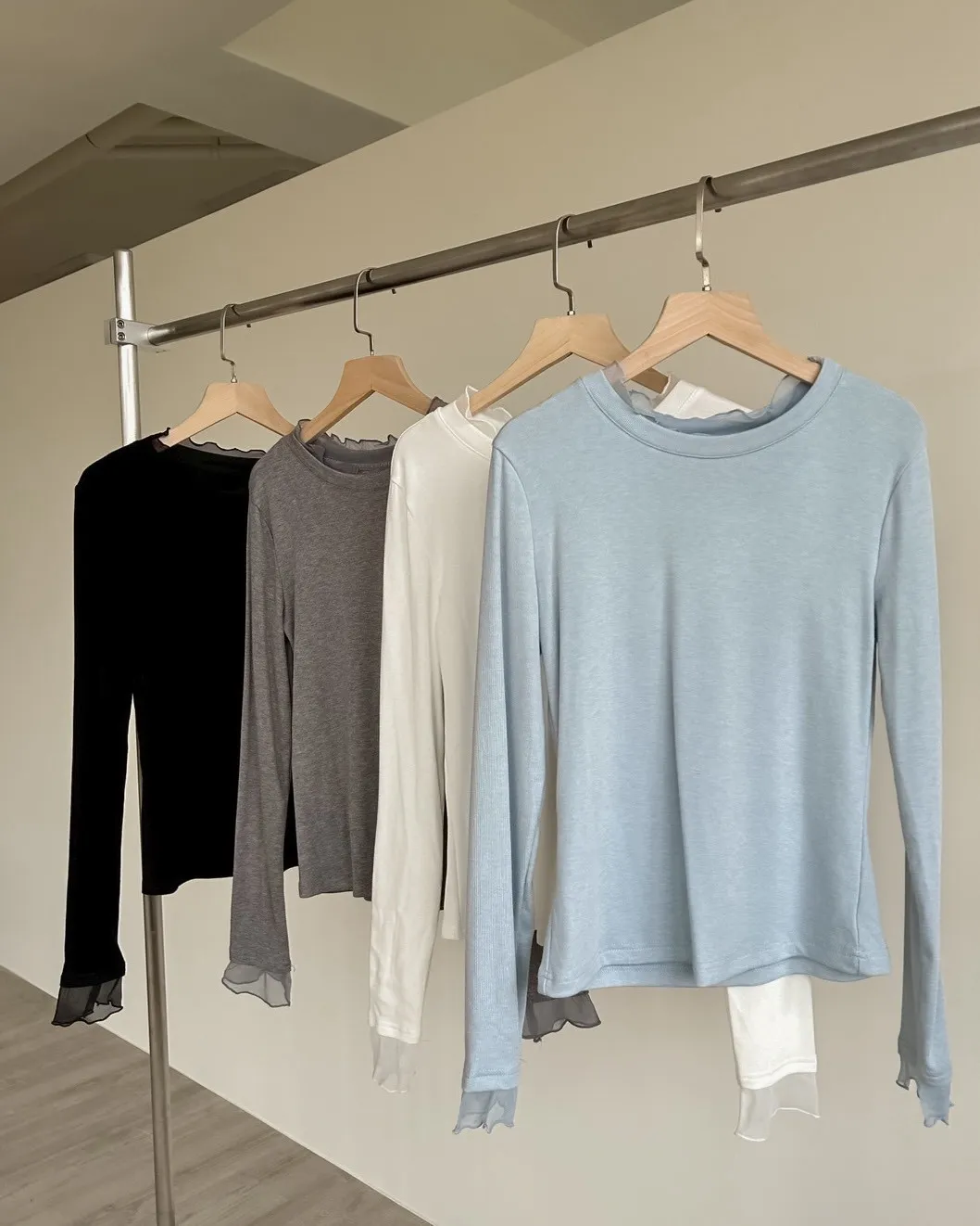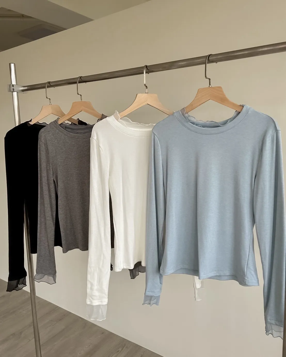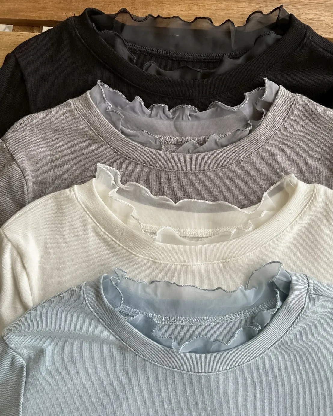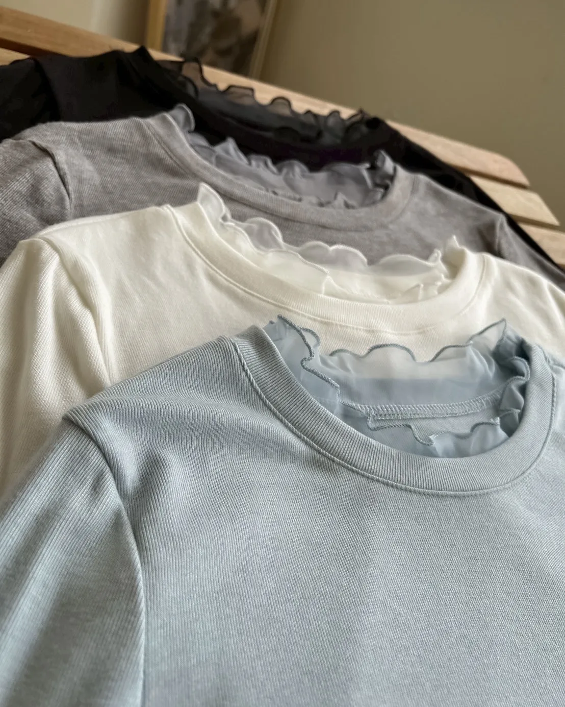 袖口/領口網紗滾邊(捲捲邊) 溫柔色系 軟棉料