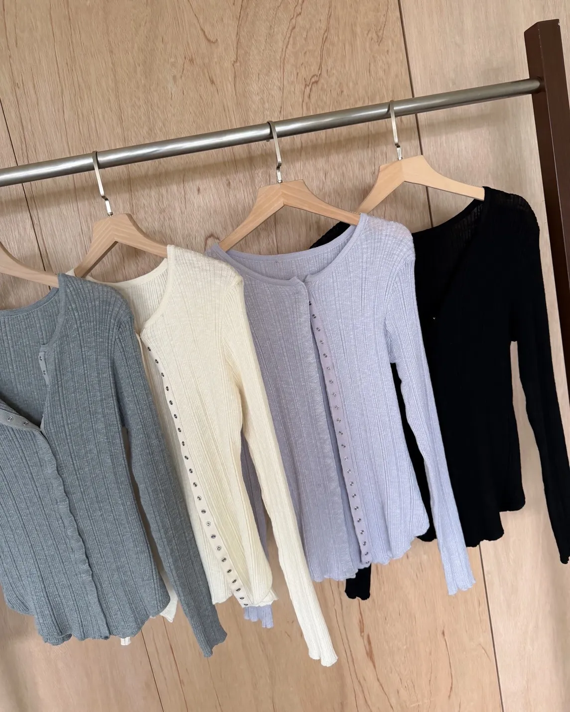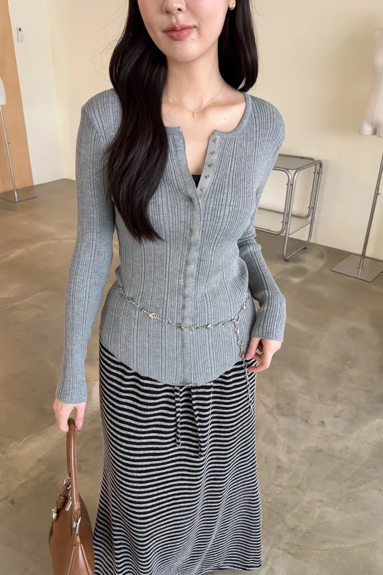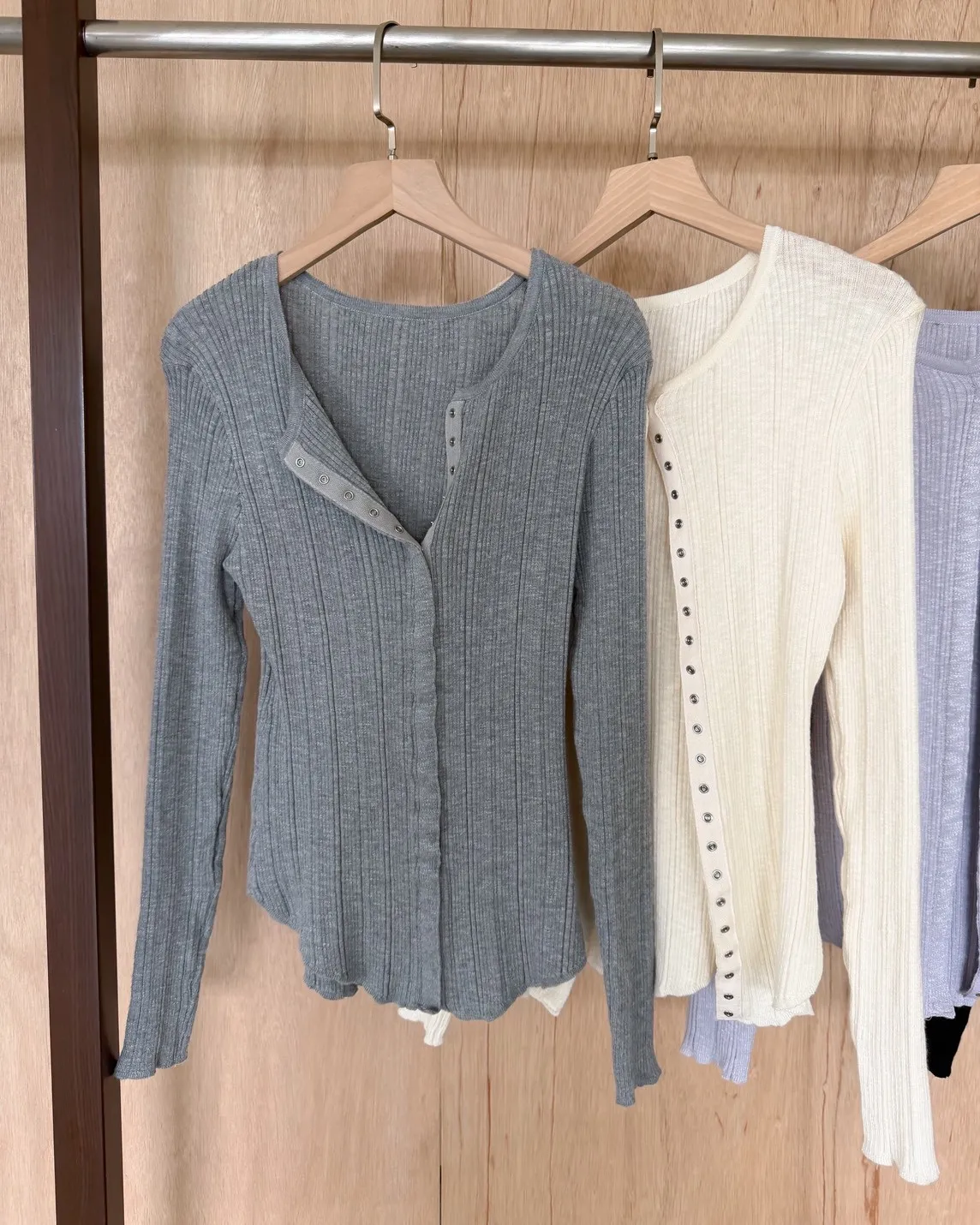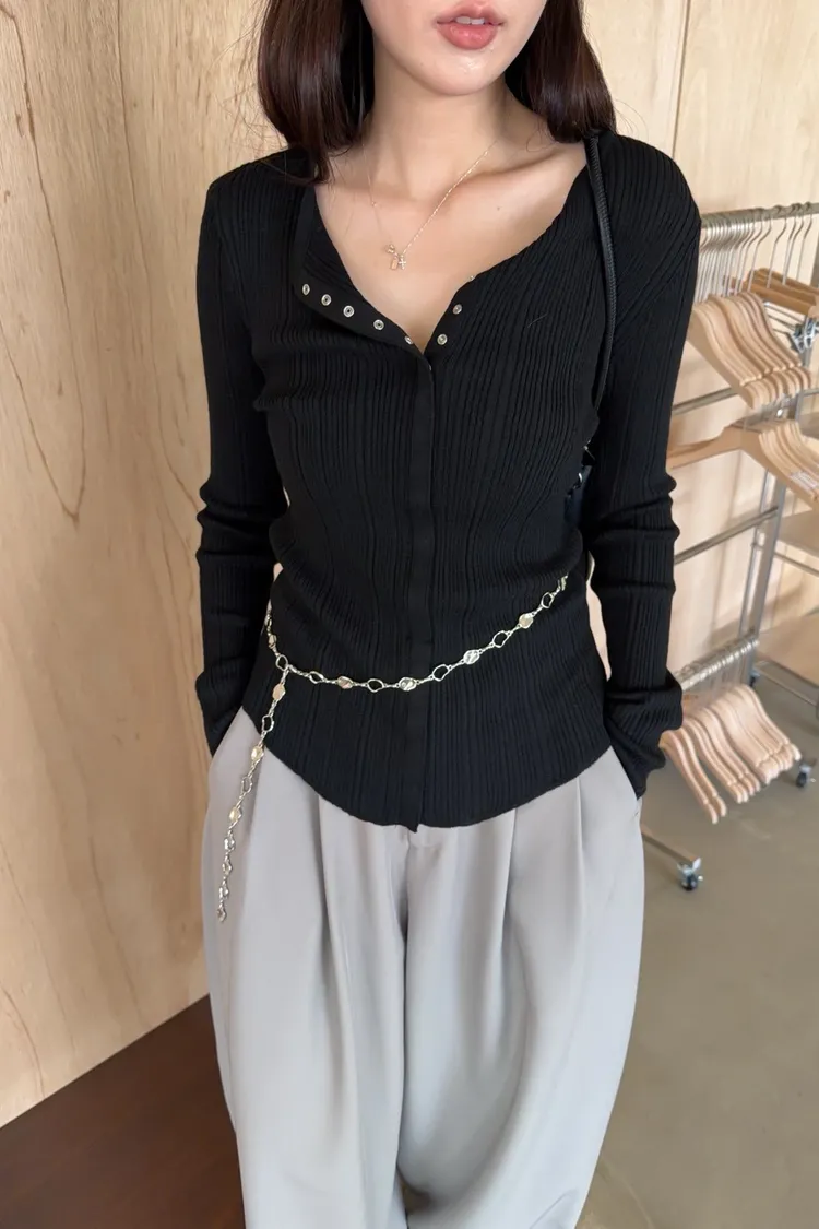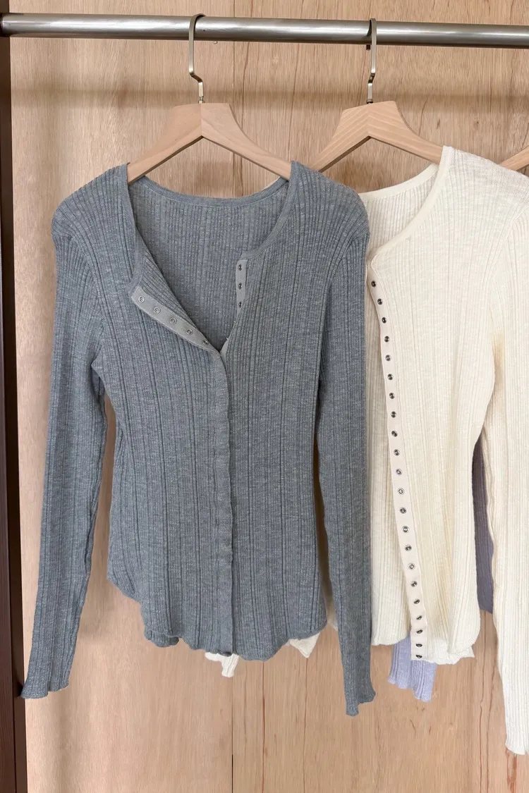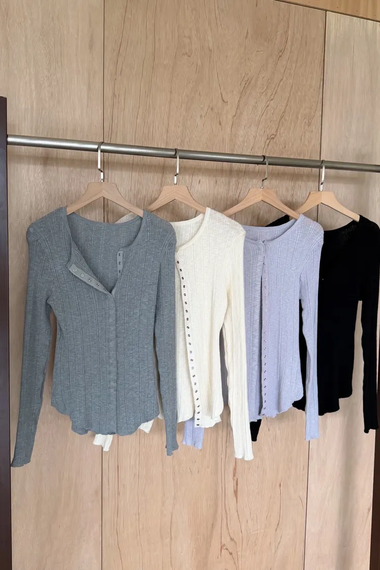 B0047修身隱藏壓扣針織衣(米/紫/灰/黑)