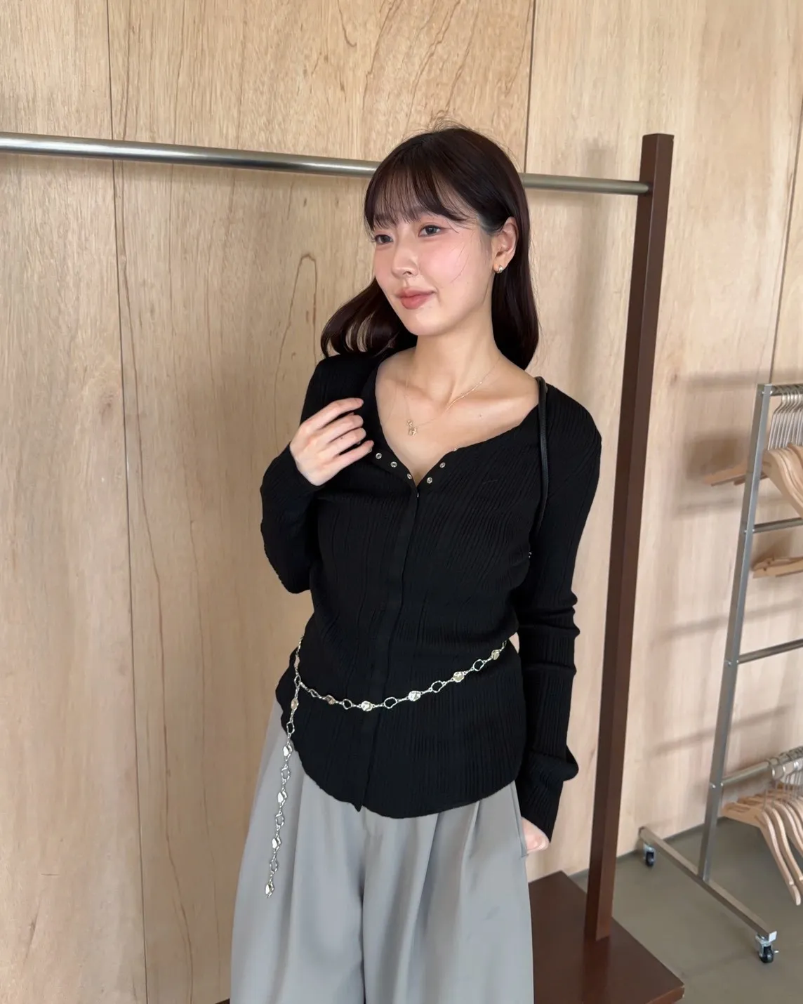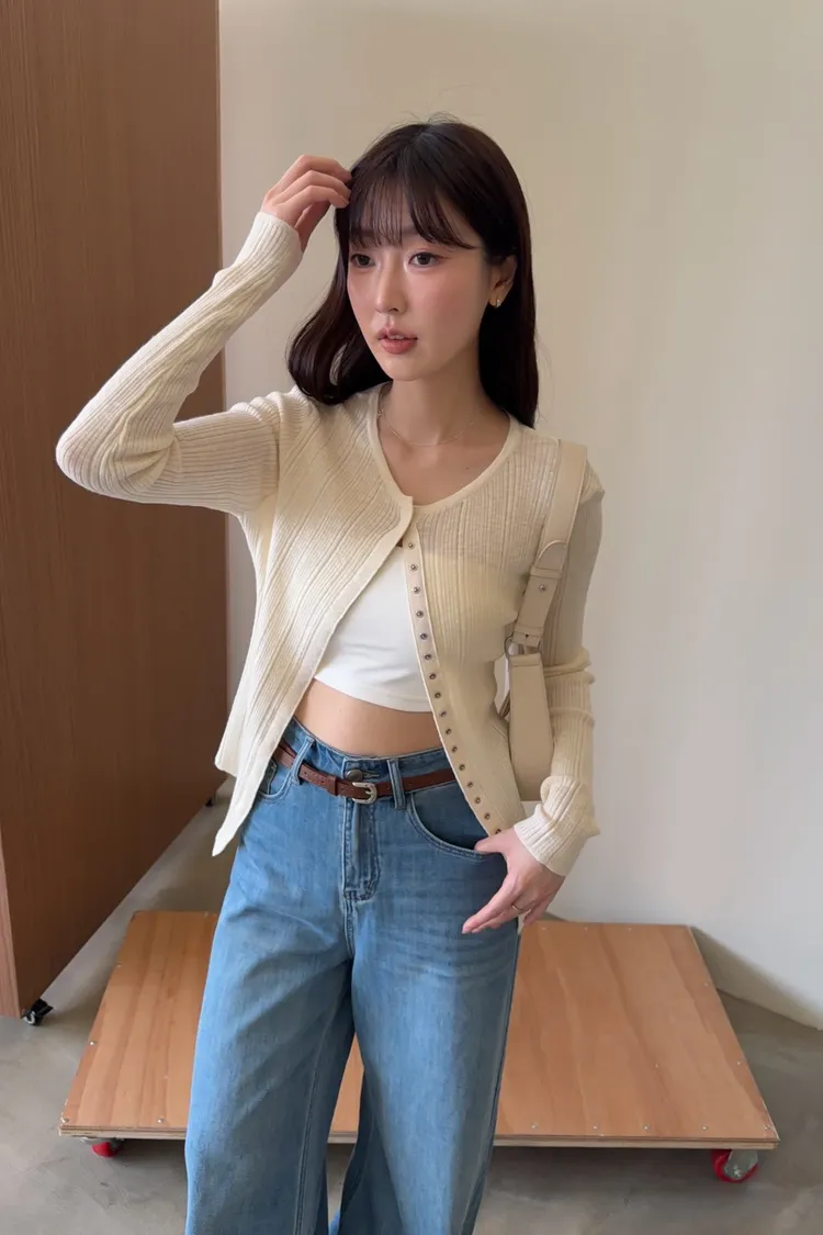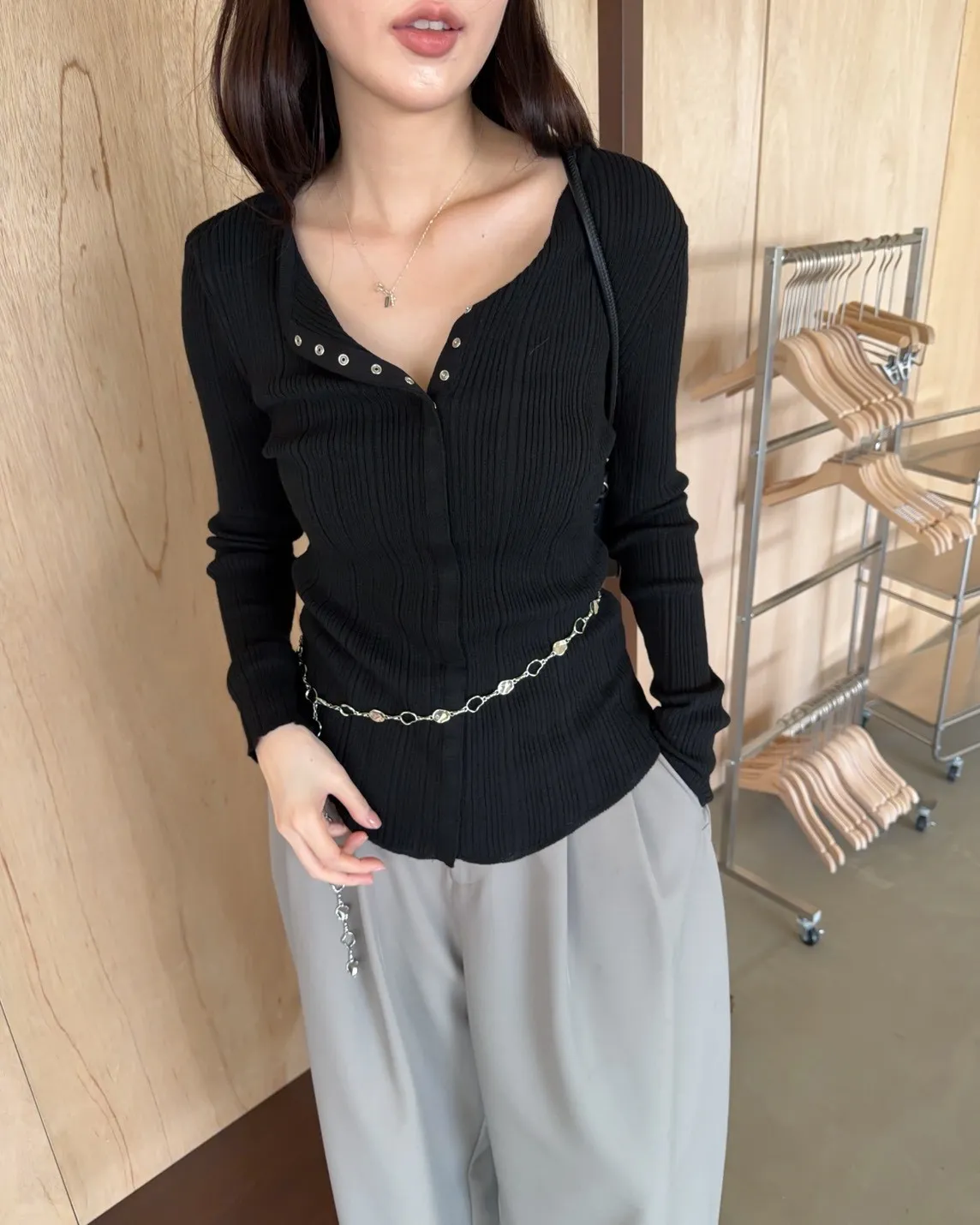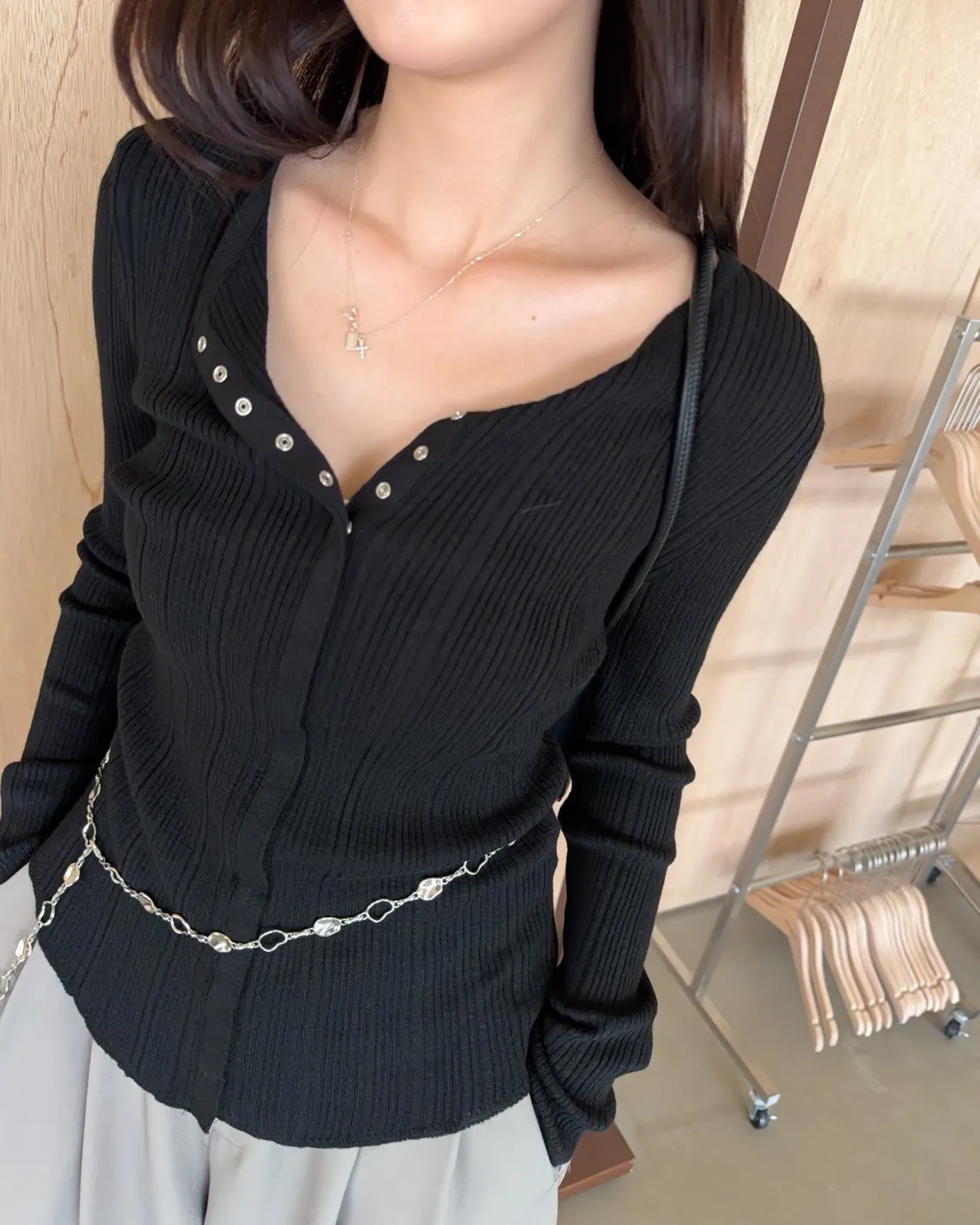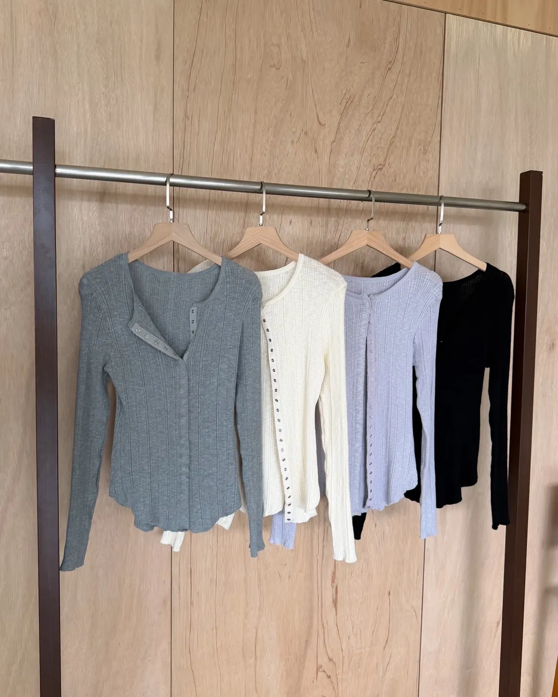 B0047修身隱藏壓扣針織衣(米/紫/灰/黑)