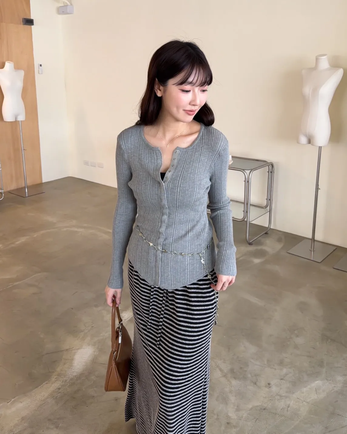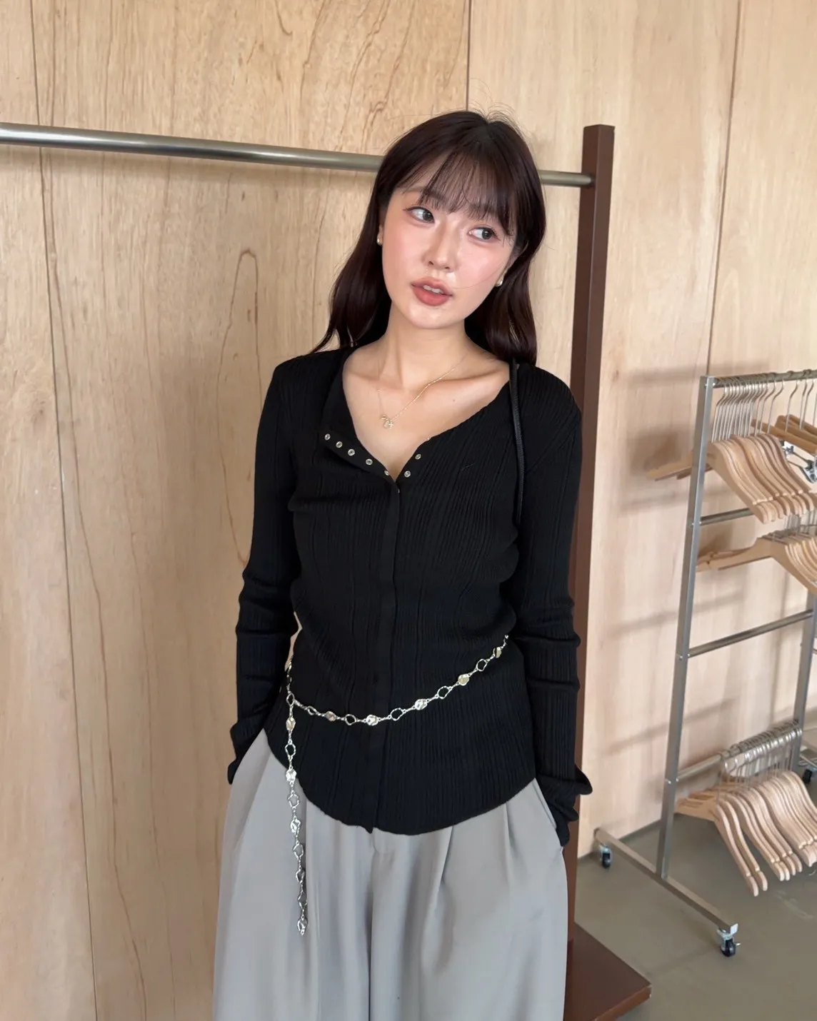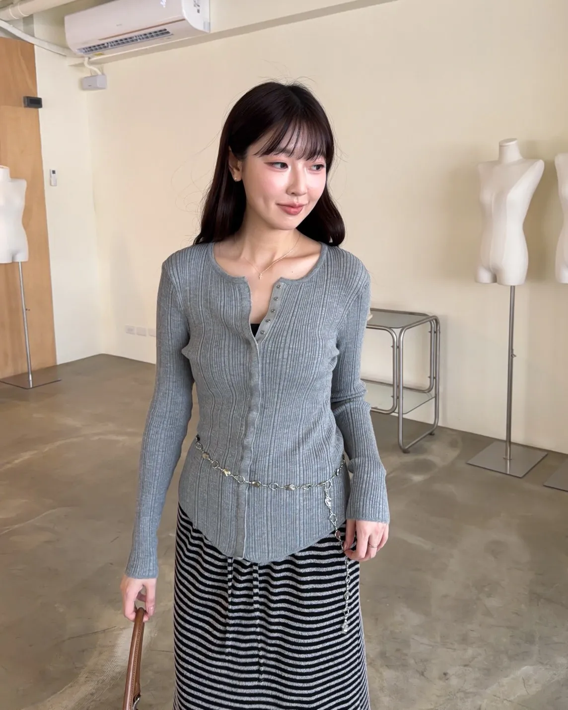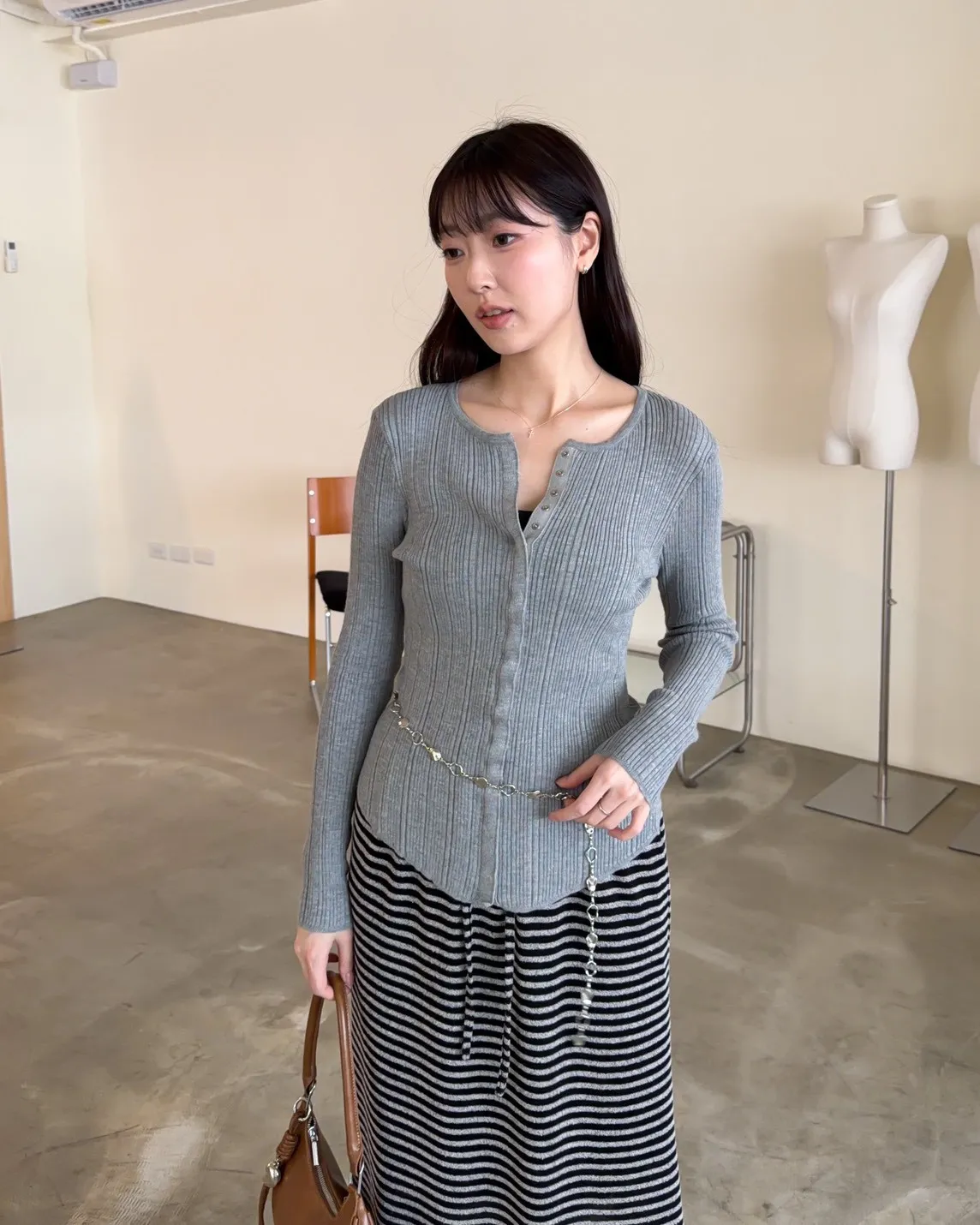 B0047修身隱藏壓扣針織衣(米/紫/灰/黑)