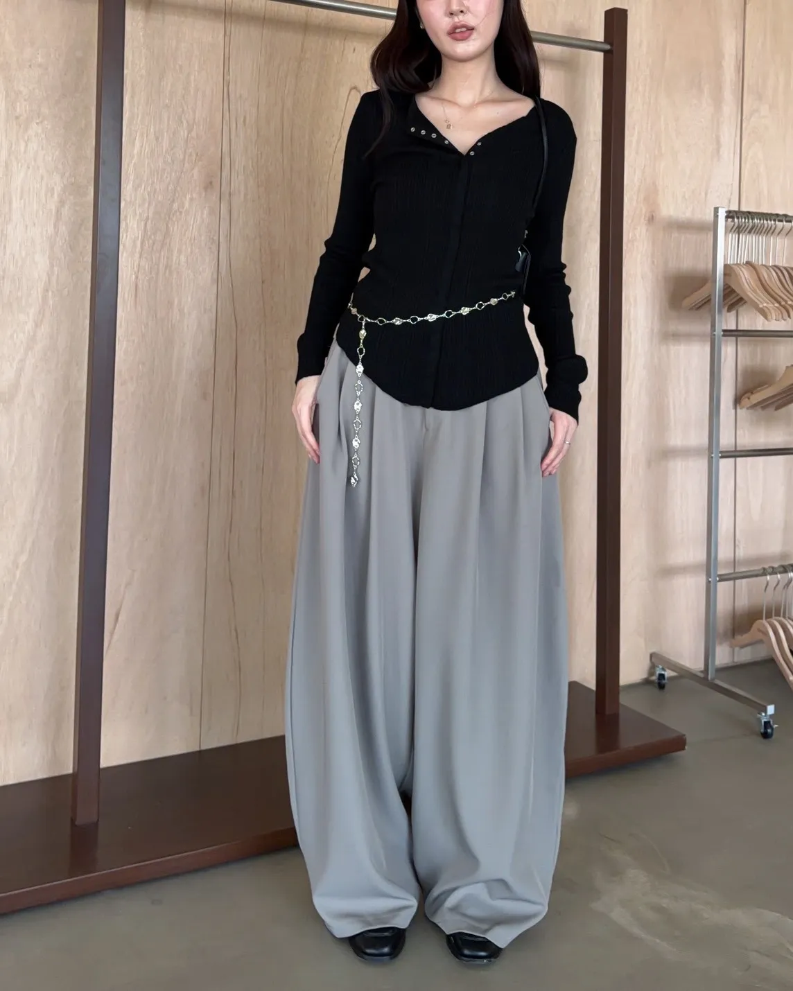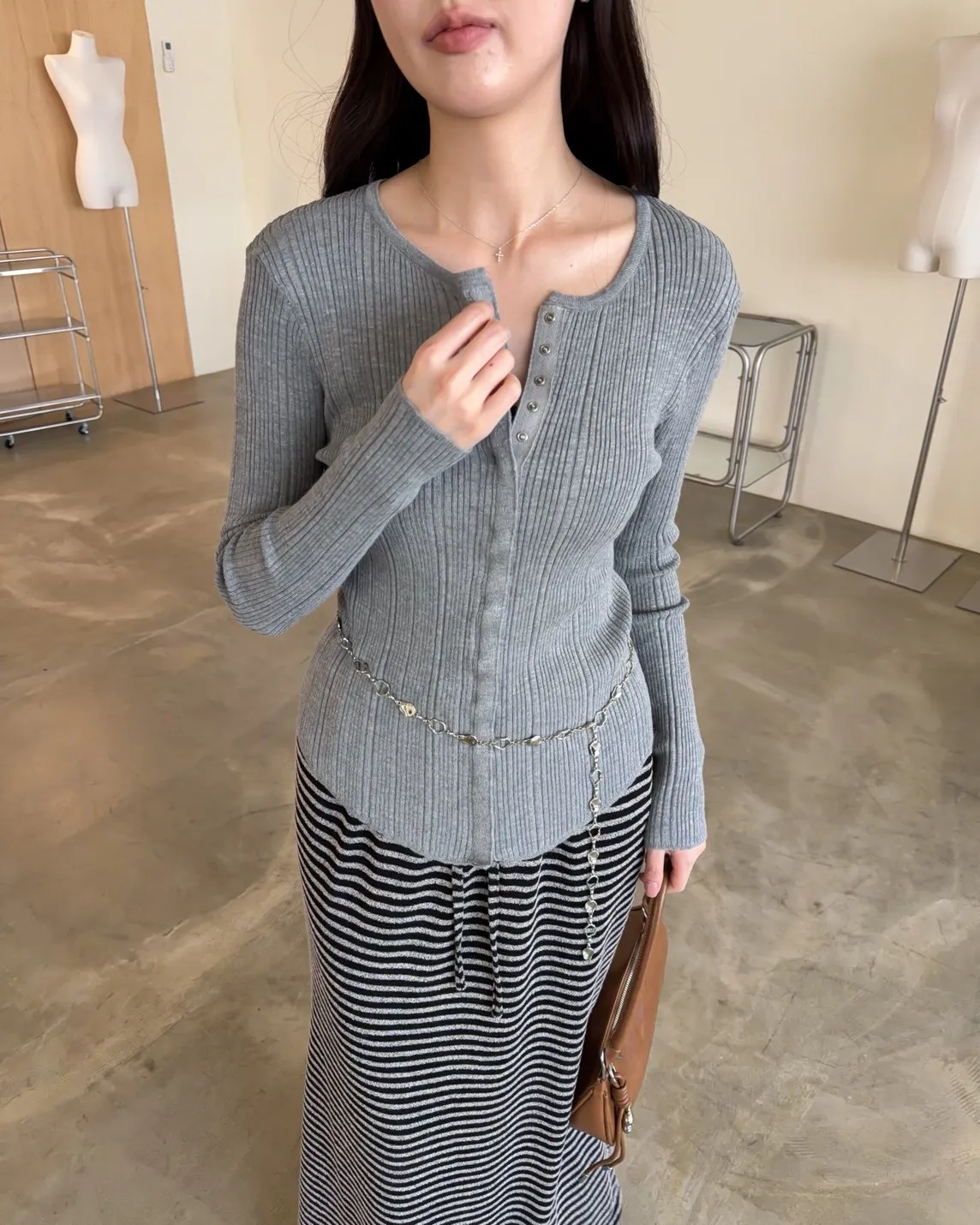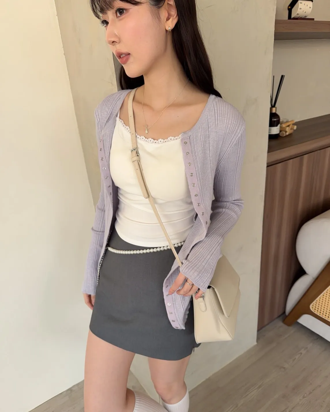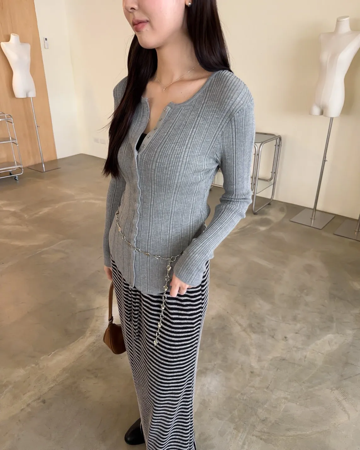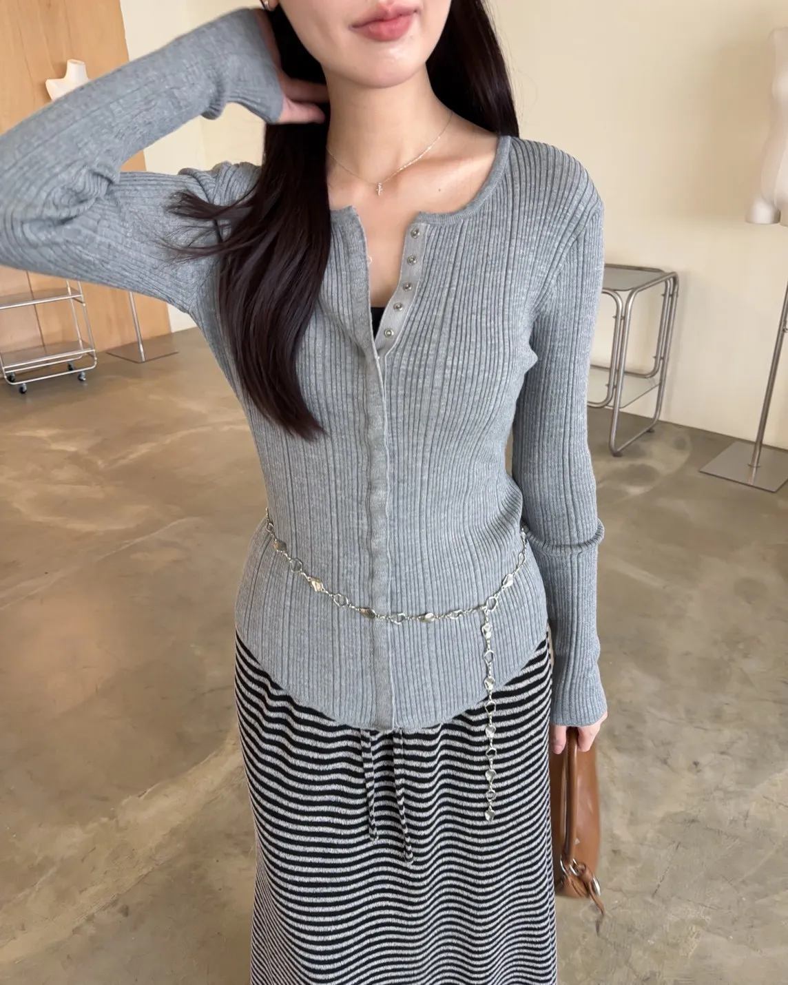 B0047修身隱藏壓扣針織衣(米/紫/灰/黑)