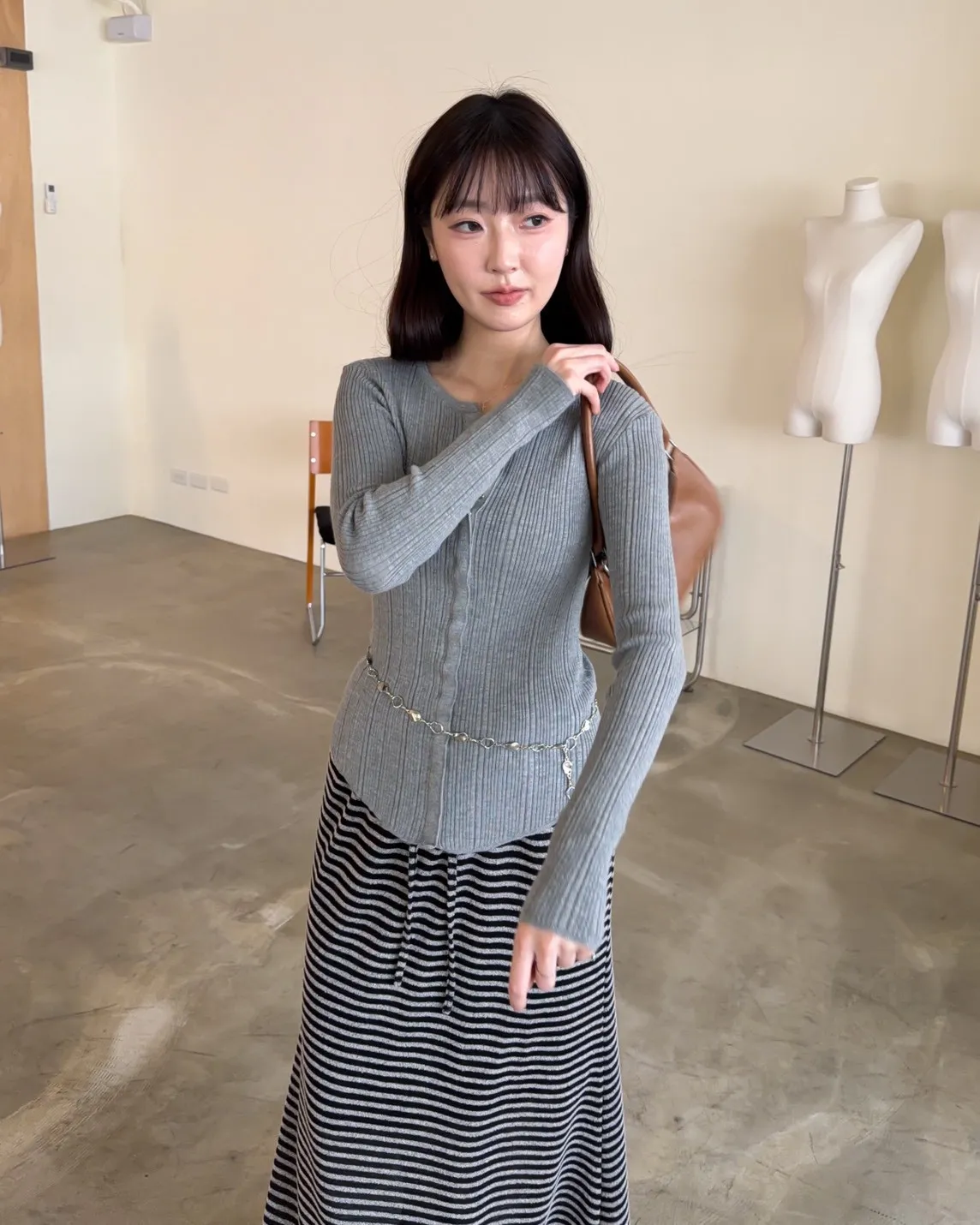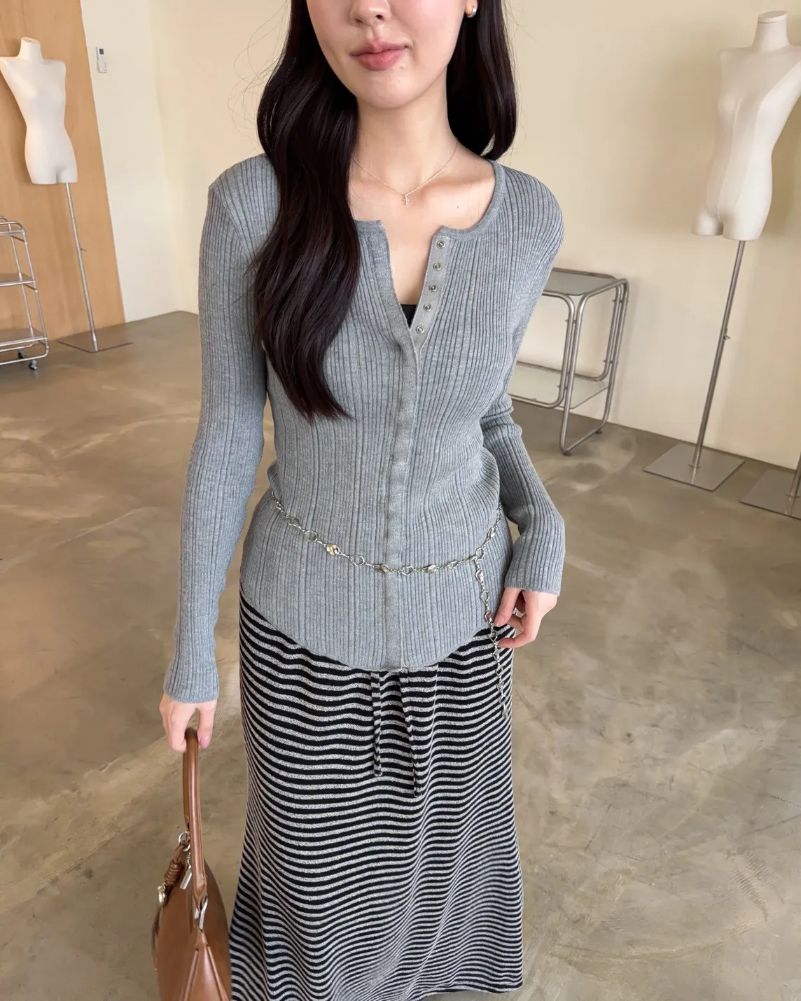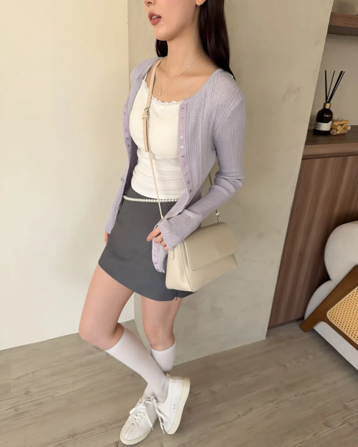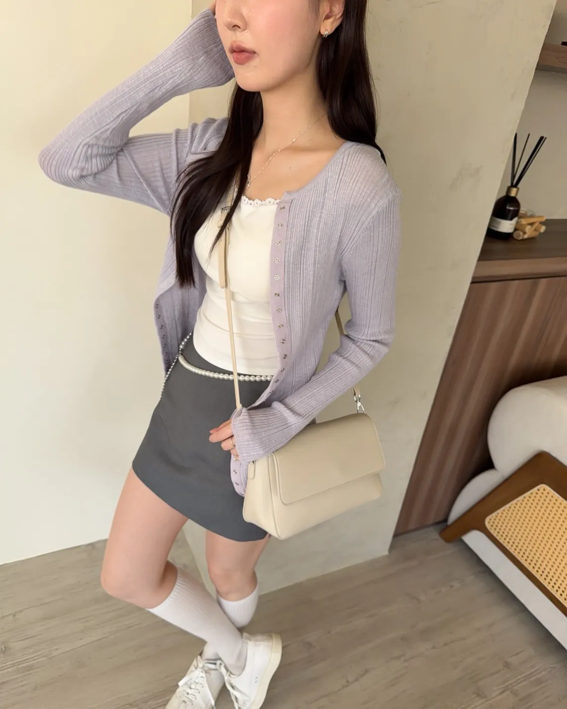 B0047修身隱藏壓扣針織衣(米/紫/灰/黑)