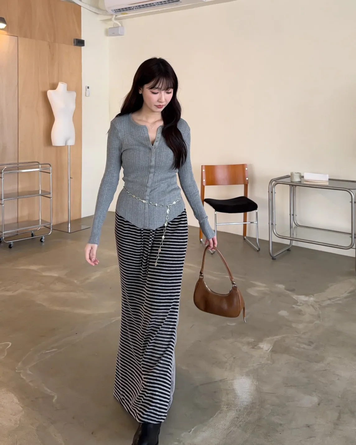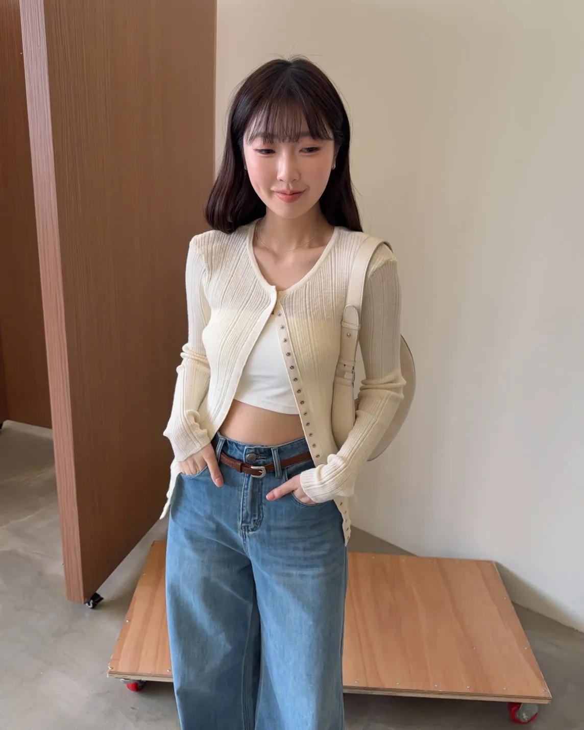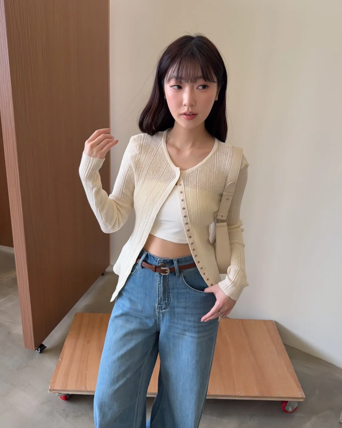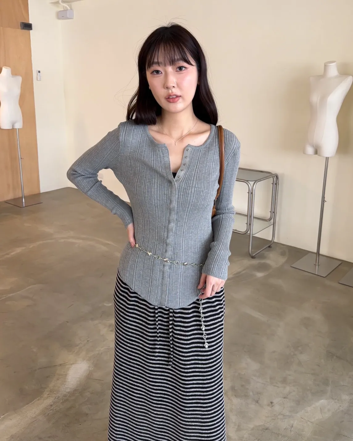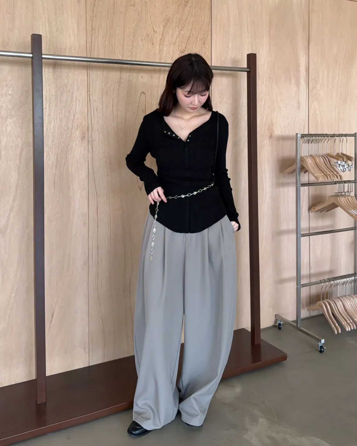 B0047修身隱藏壓扣針織衣(米/紫/灰/黑)