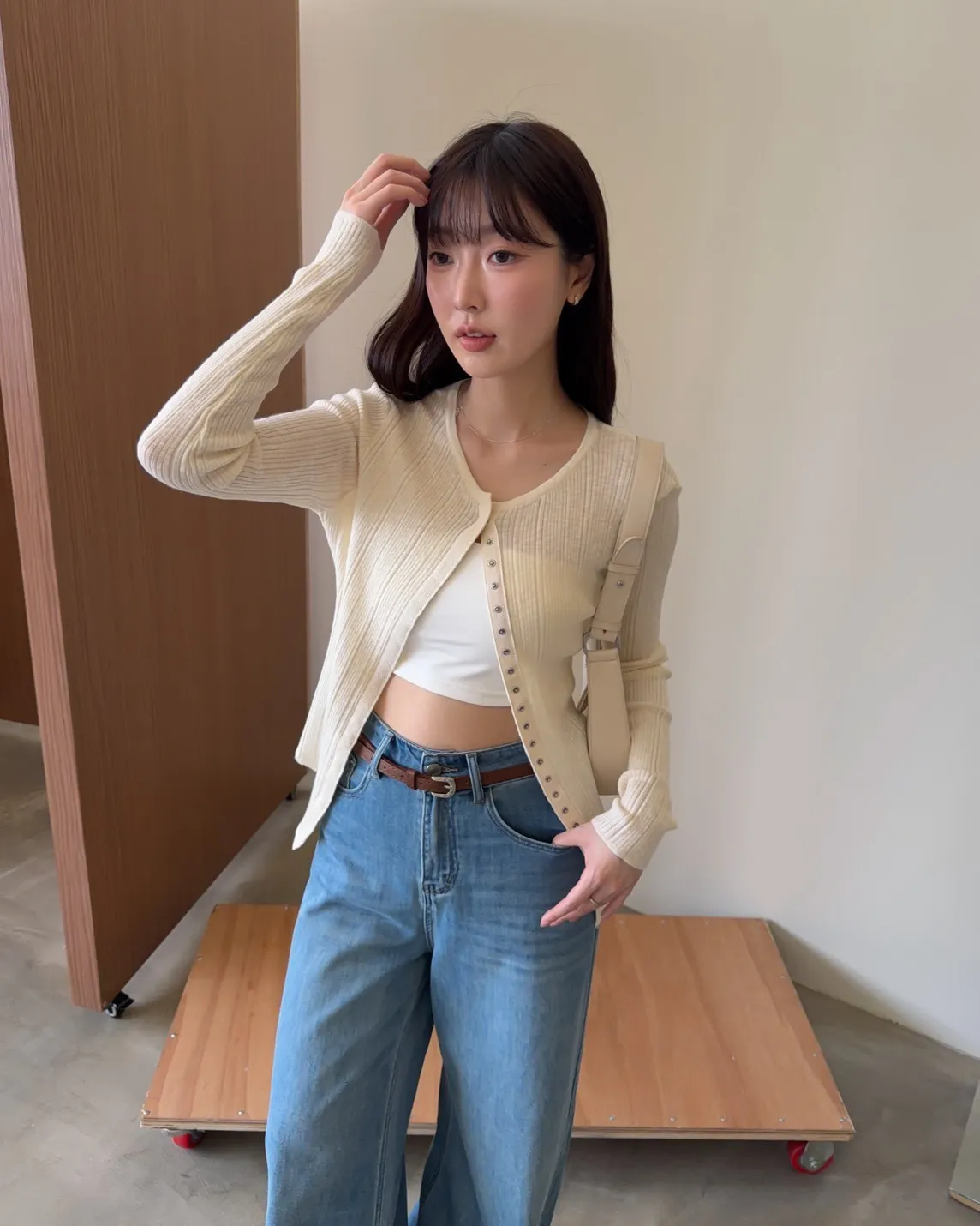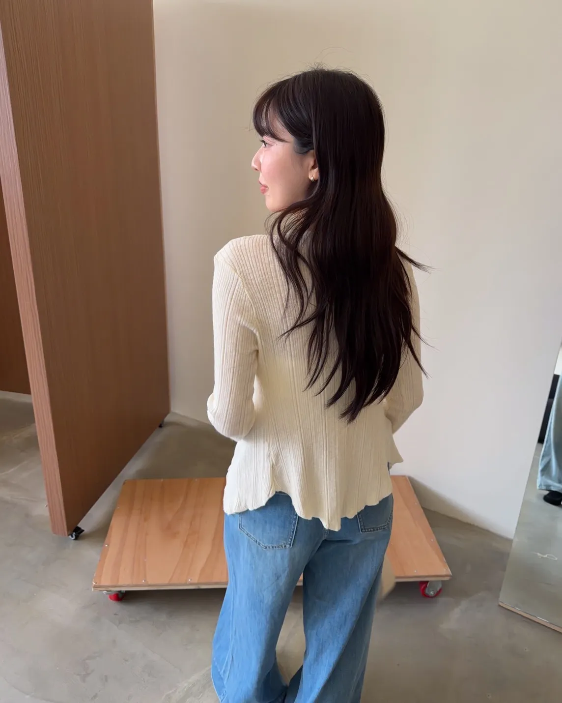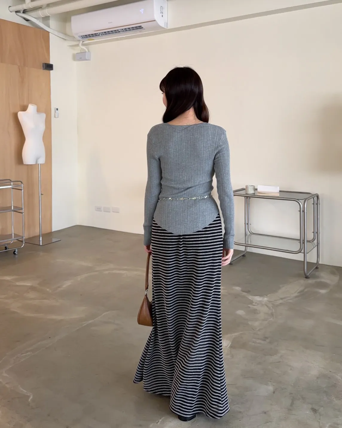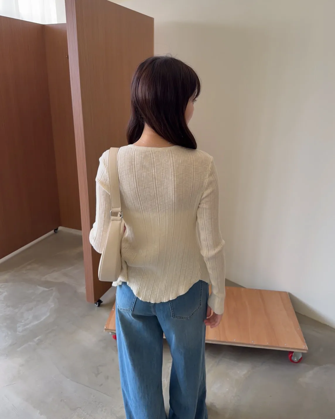 薄透針織 貼身版型 坑紋 隱藏式壓扣 下擺尖尖