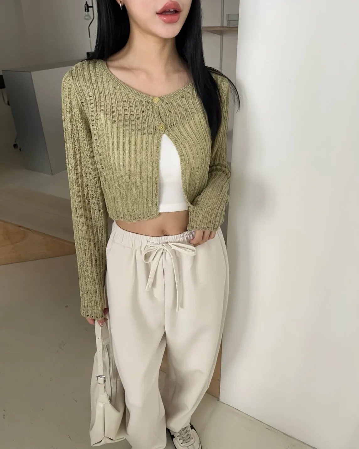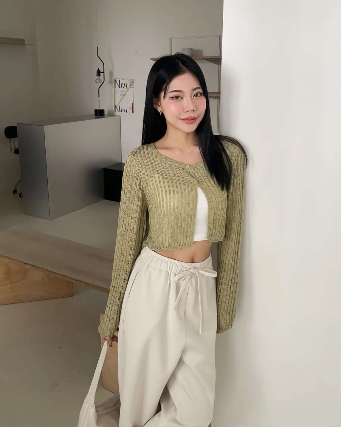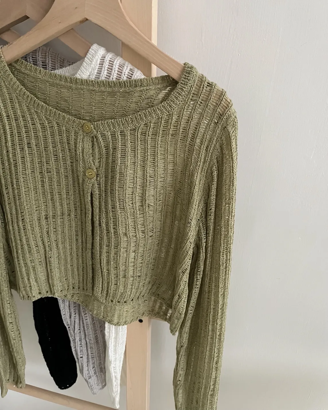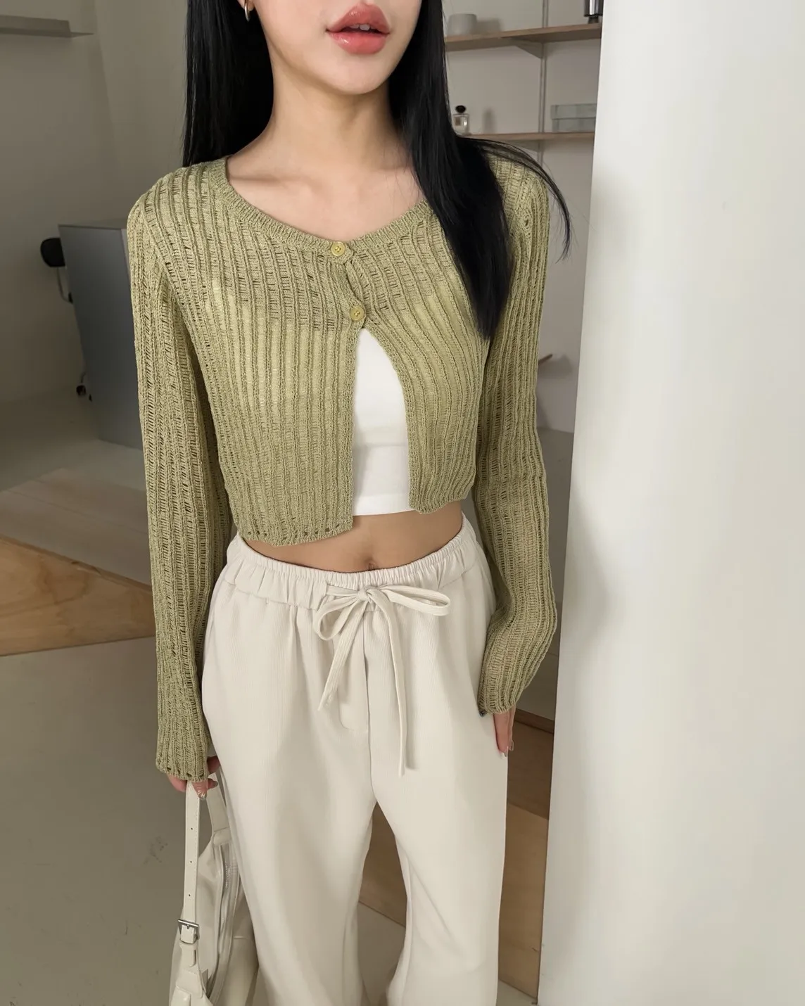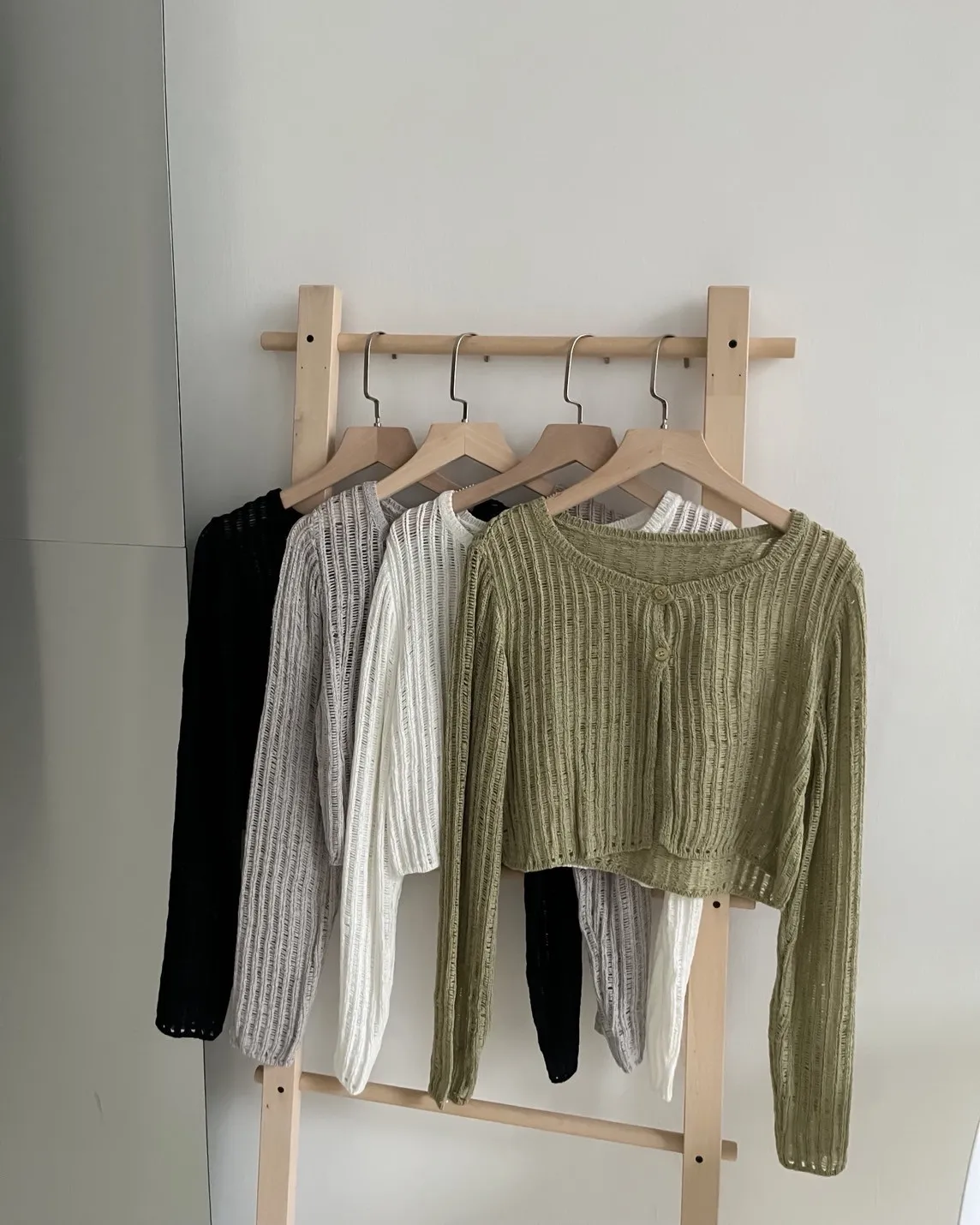 U0042圈圈針織兩扣短版罩衫(米白/綠/灰/黑)(售完不補)