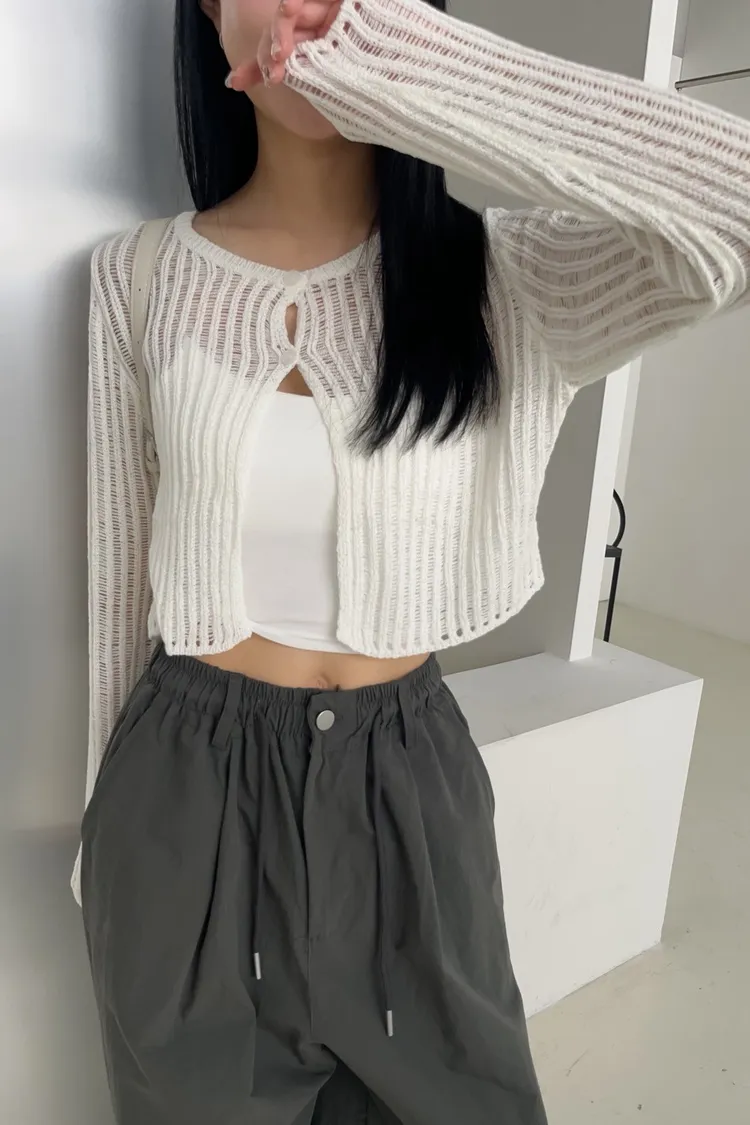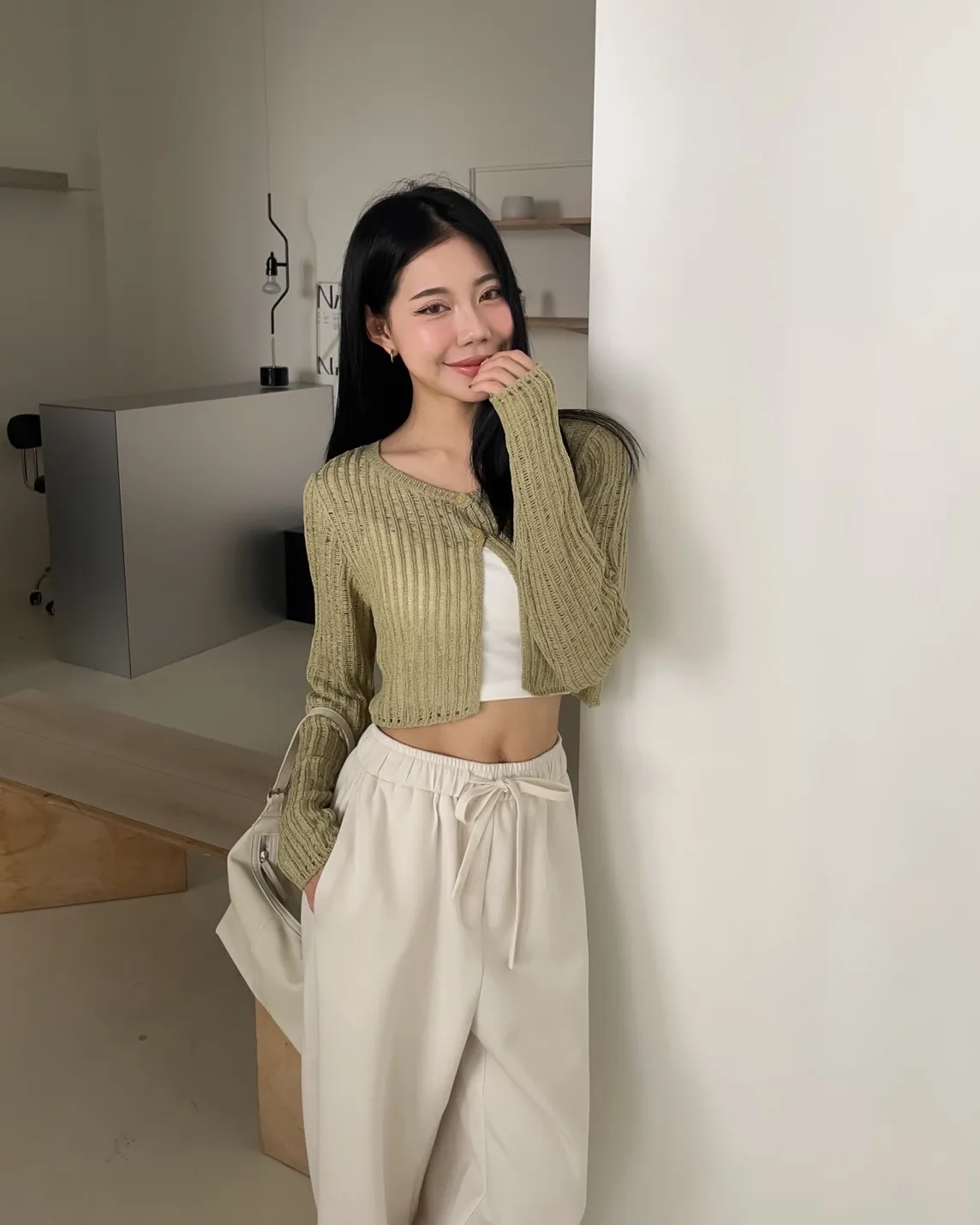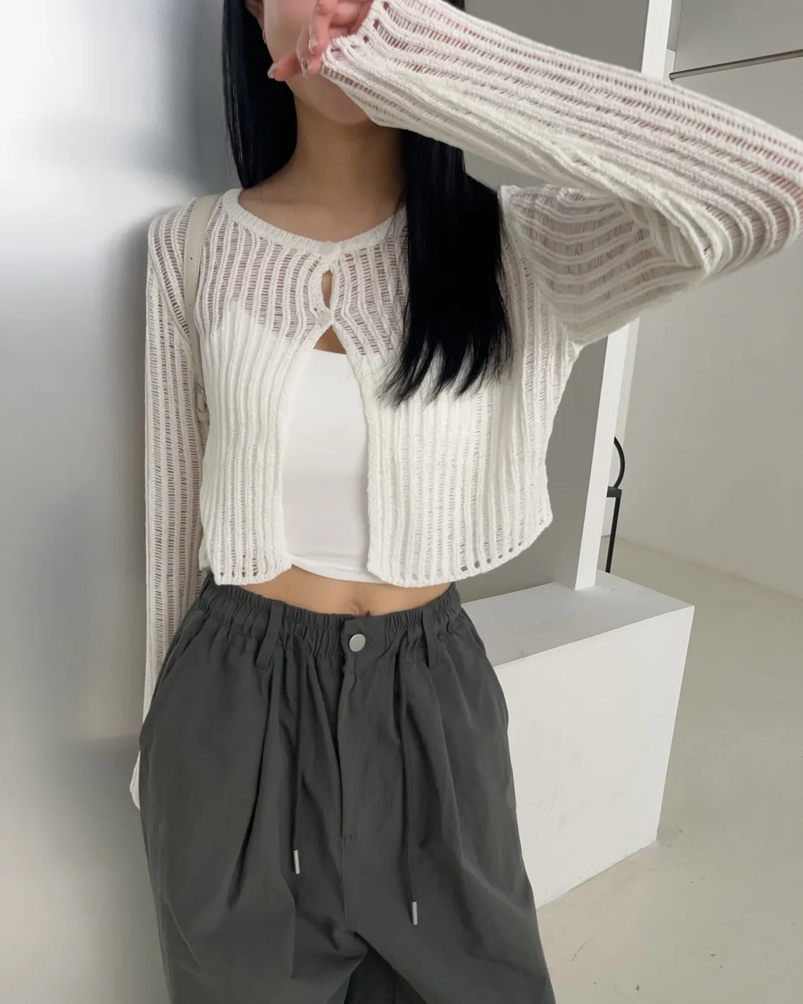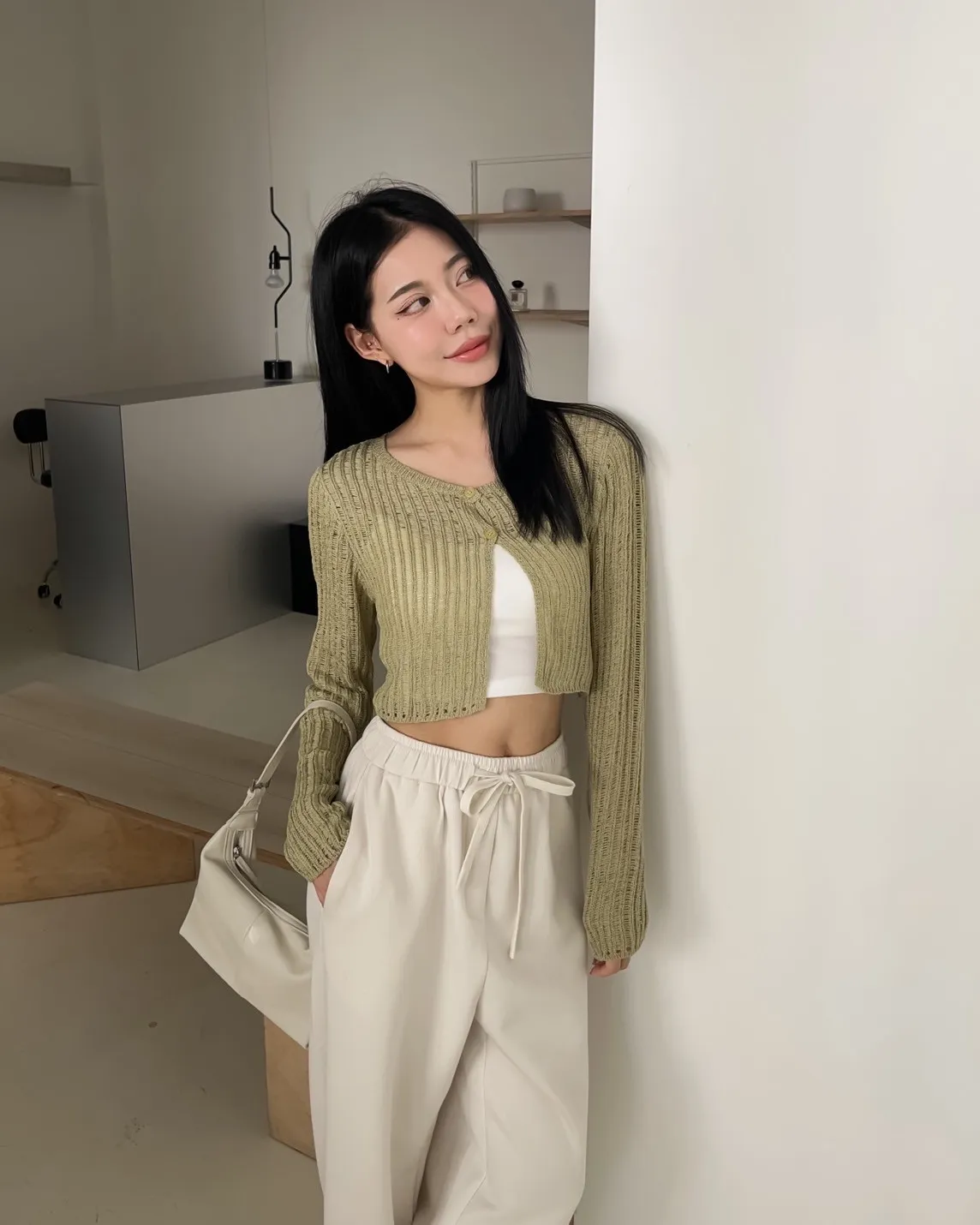 U0042圈圈針織兩扣短版罩衫(米白/綠/灰/黑)(售完不補)