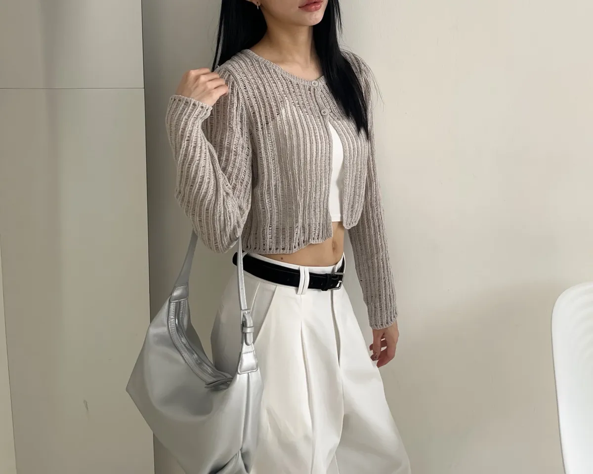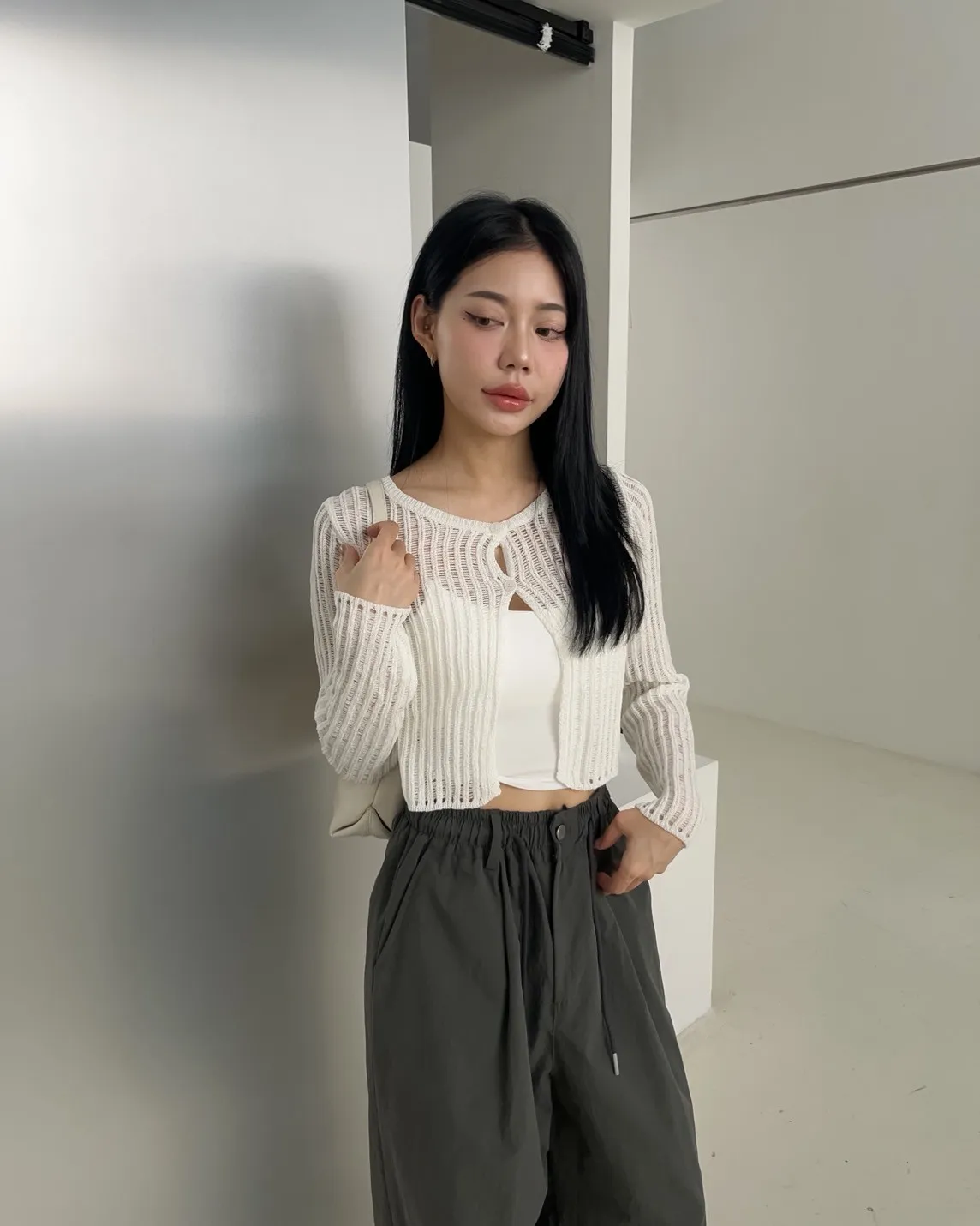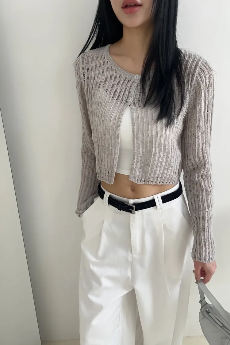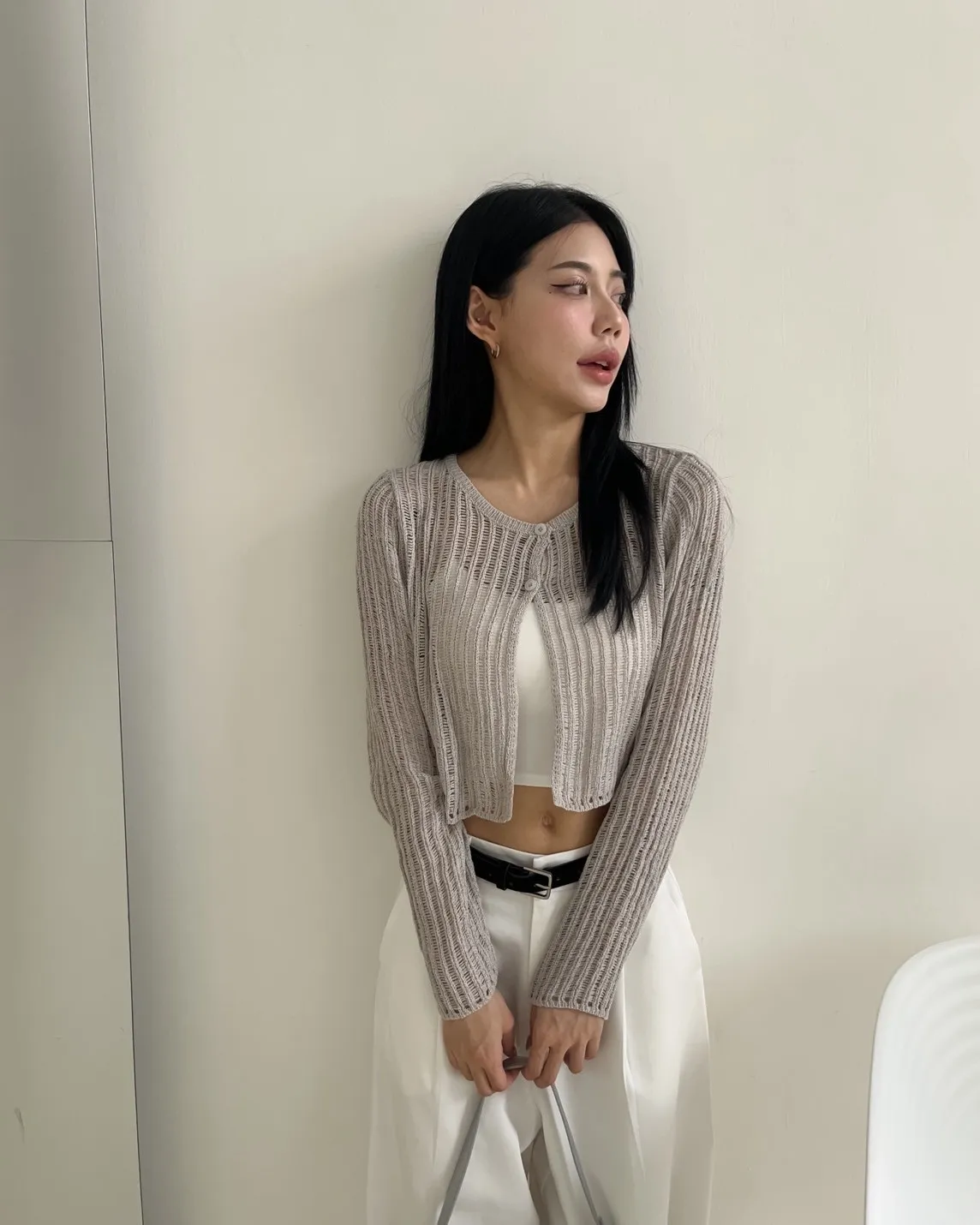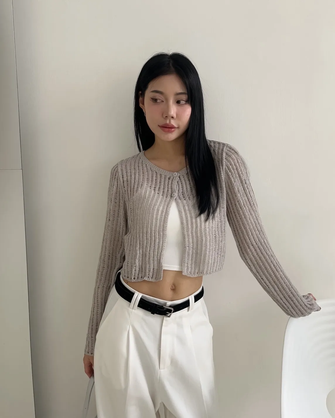 U0042圈圈針織兩扣短版罩衫(米白/綠/灰/黑)(售完不補)